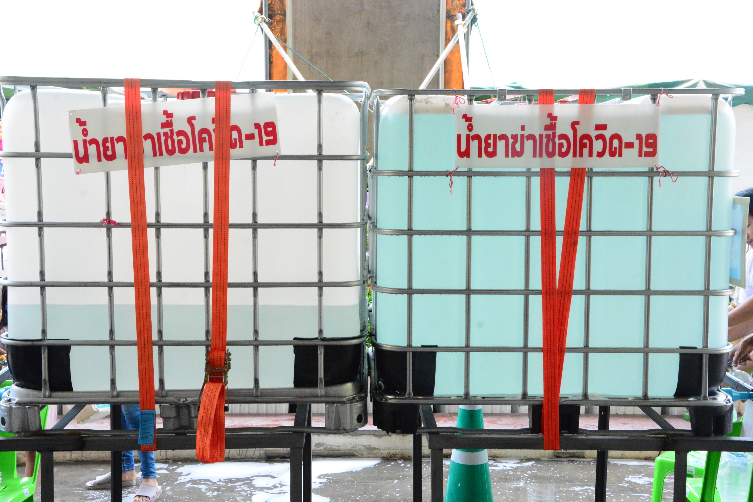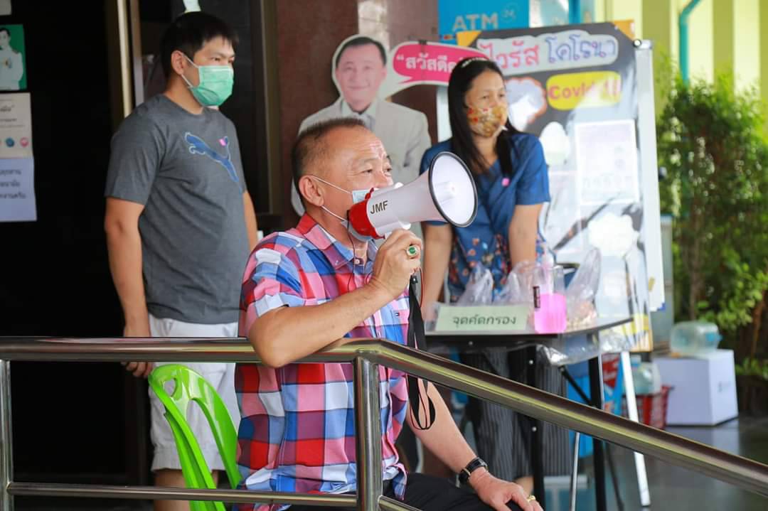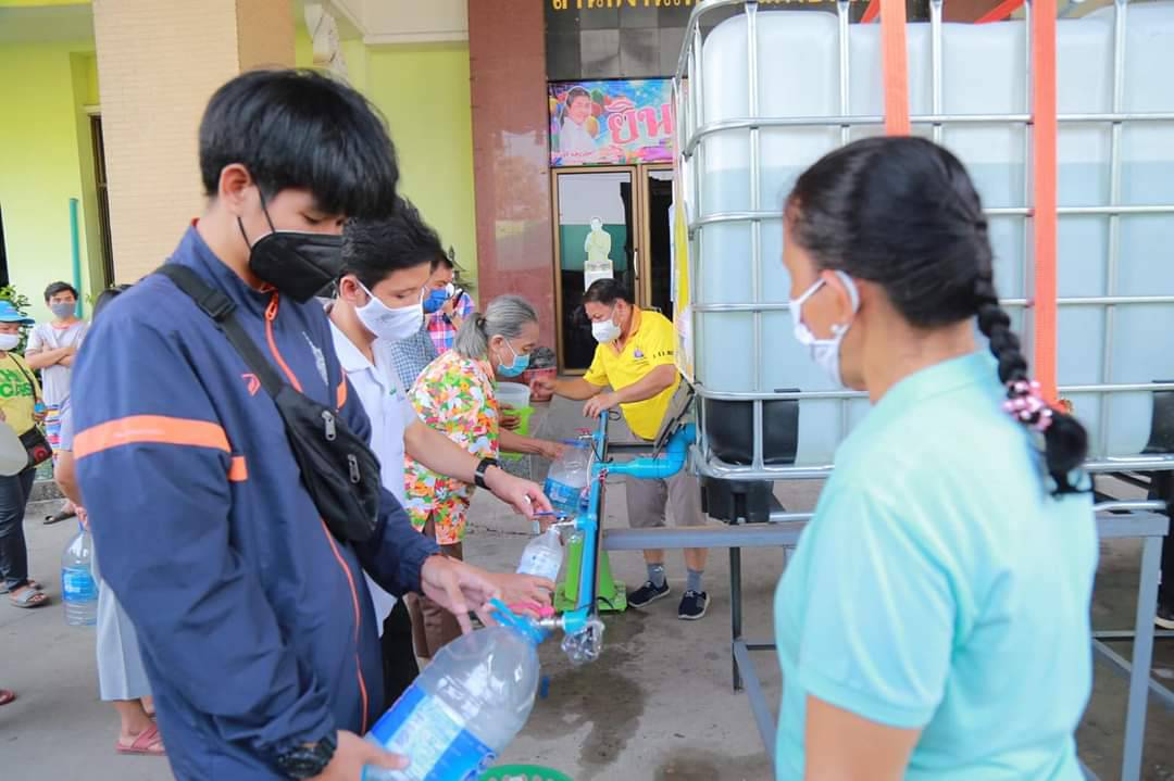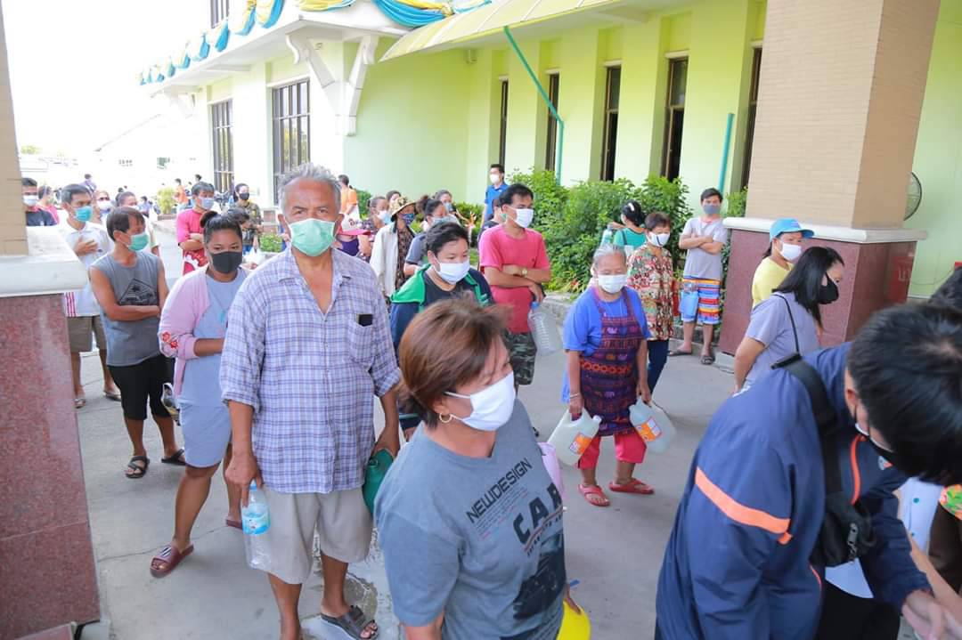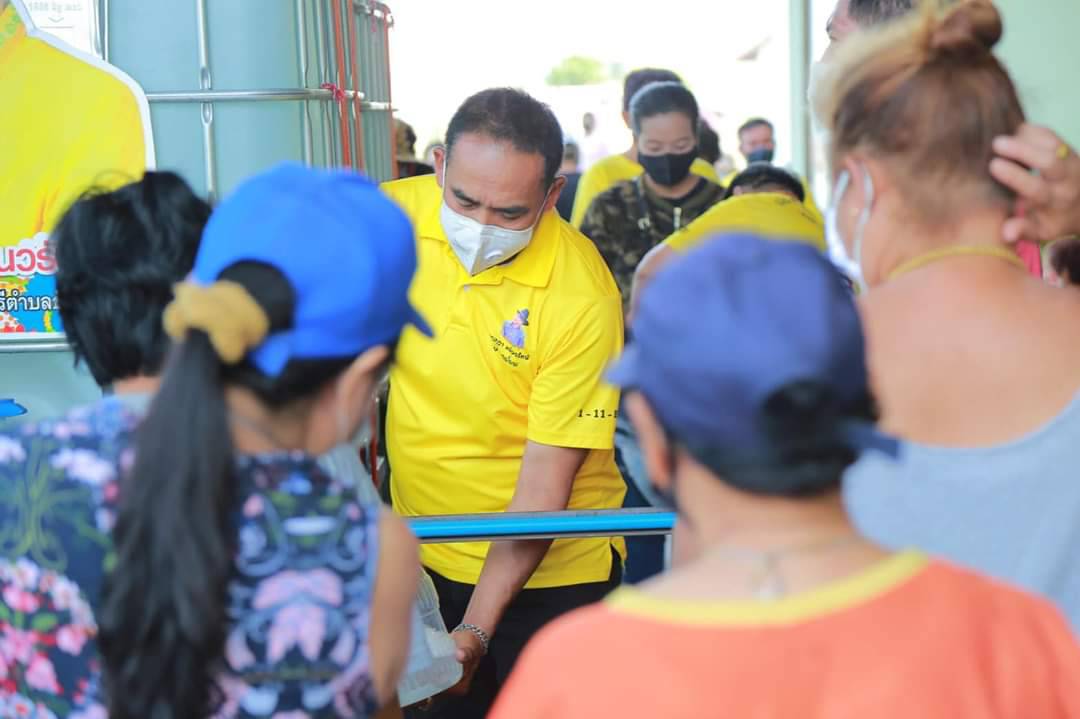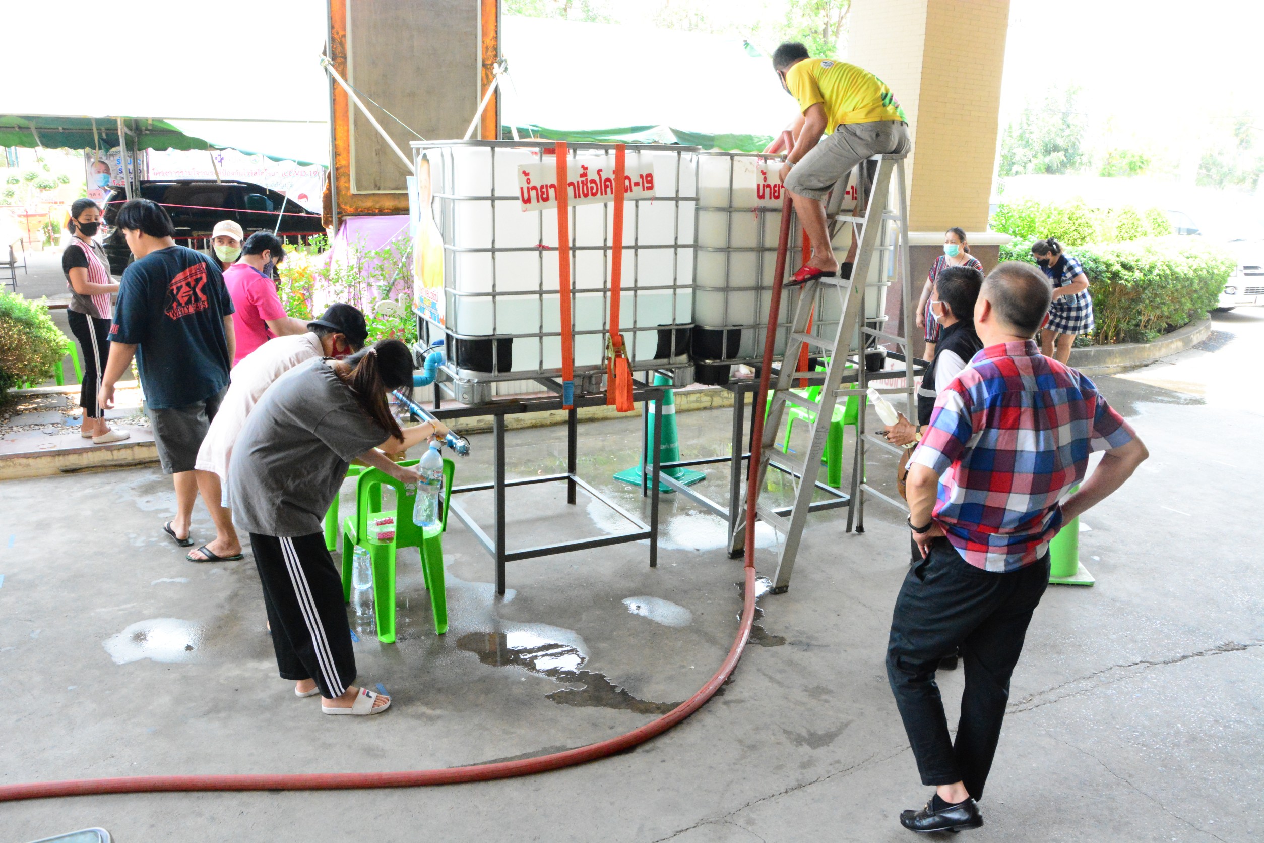 เทศบาลตำบลธัญบุรี ตั้งจุดบริการ แจกน้ำยาฆ่าเชื้อแบบผสมแล้วให้กับชาวบ้านในเขตพื้นที่เทศบาลตำบลธัญบุรี