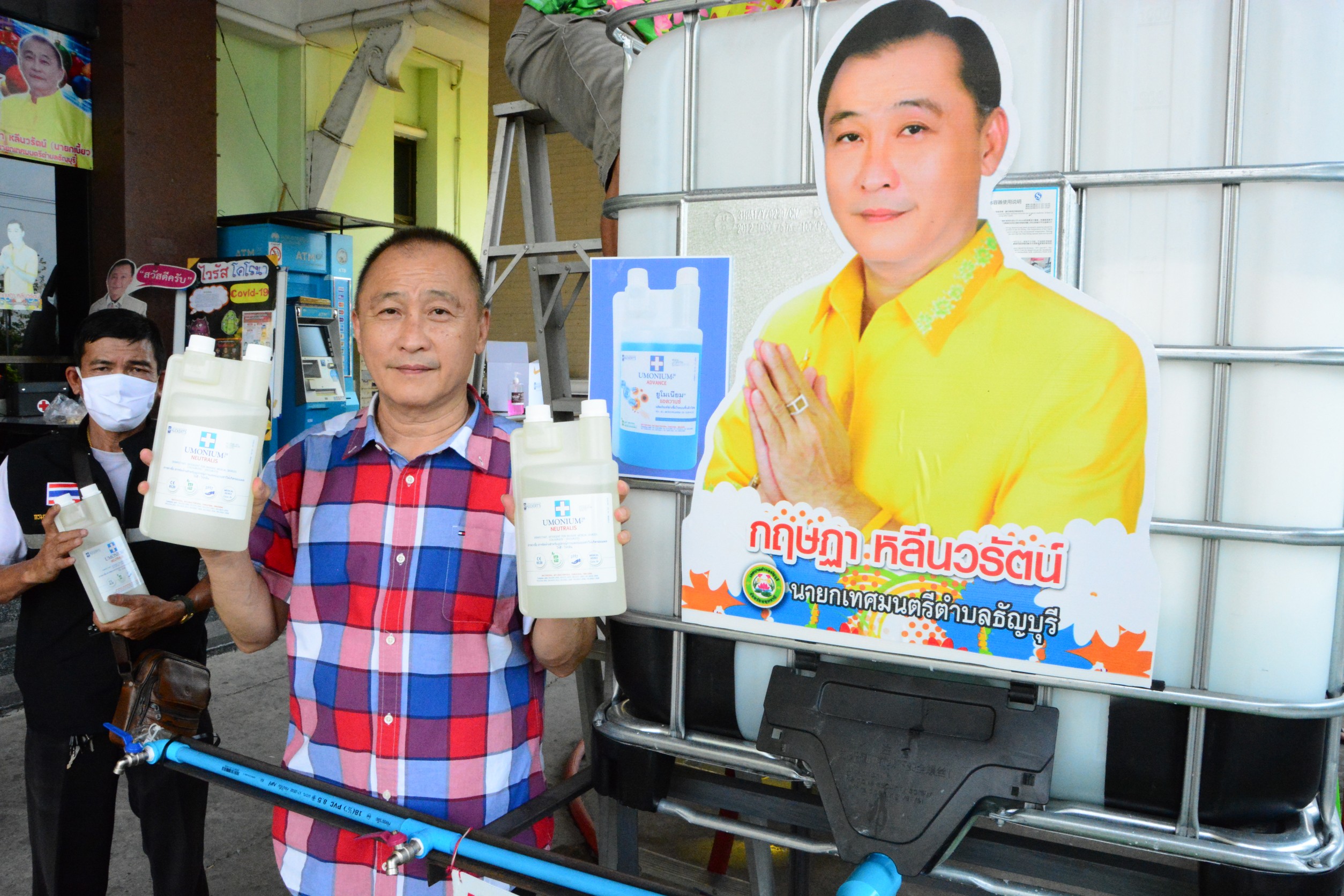ด้าน นายกฤษฎา หลีนวรัตน์ นายกเทศมนตรีตำบลธัญบุรี กล่าวว่า ปกติ ในช่วงวัน ศุกร์ เสาร์ อาทิตย์ และวันหยุดต่างๆ ทางเทศบาลตำบลธัญบุรี จะตั้งจุดบริการ แจกน้ำยาฆ่าเชื้อ ให้กับชาวบ้านโดย ชาวบ้านจะนำภาชนะ มากรอกน้ำยาไป เพื่อนำไปฉีดพ่น เช็ดถู ทำความสะอาดบ้าน ป้องกันไวรัสโควิด-19 นอกจากนี้ ในทุกๆ วันทางเทศบาลตำบลธัญบุรีจะจัดทีมงานของเทศบาลตำบลธัญบุรี ลงพื้นที่ชุมชน ฉีดพ่นเพื่อกำจัดไวรัสโควิด-19 พร้อมทั้งขอความร่วมมือประชาชนในพื้นที่ เว้นระยะห่างทางสังคม ไม่พาตัวเองไปอยู่ในจุดเสี่ยง ออกไปข้างนอกบ้านสวมหน้ากากอนามัย และ หมั่นล้างมือบ่อยๆ เพื่อป้องกันตัวเอง