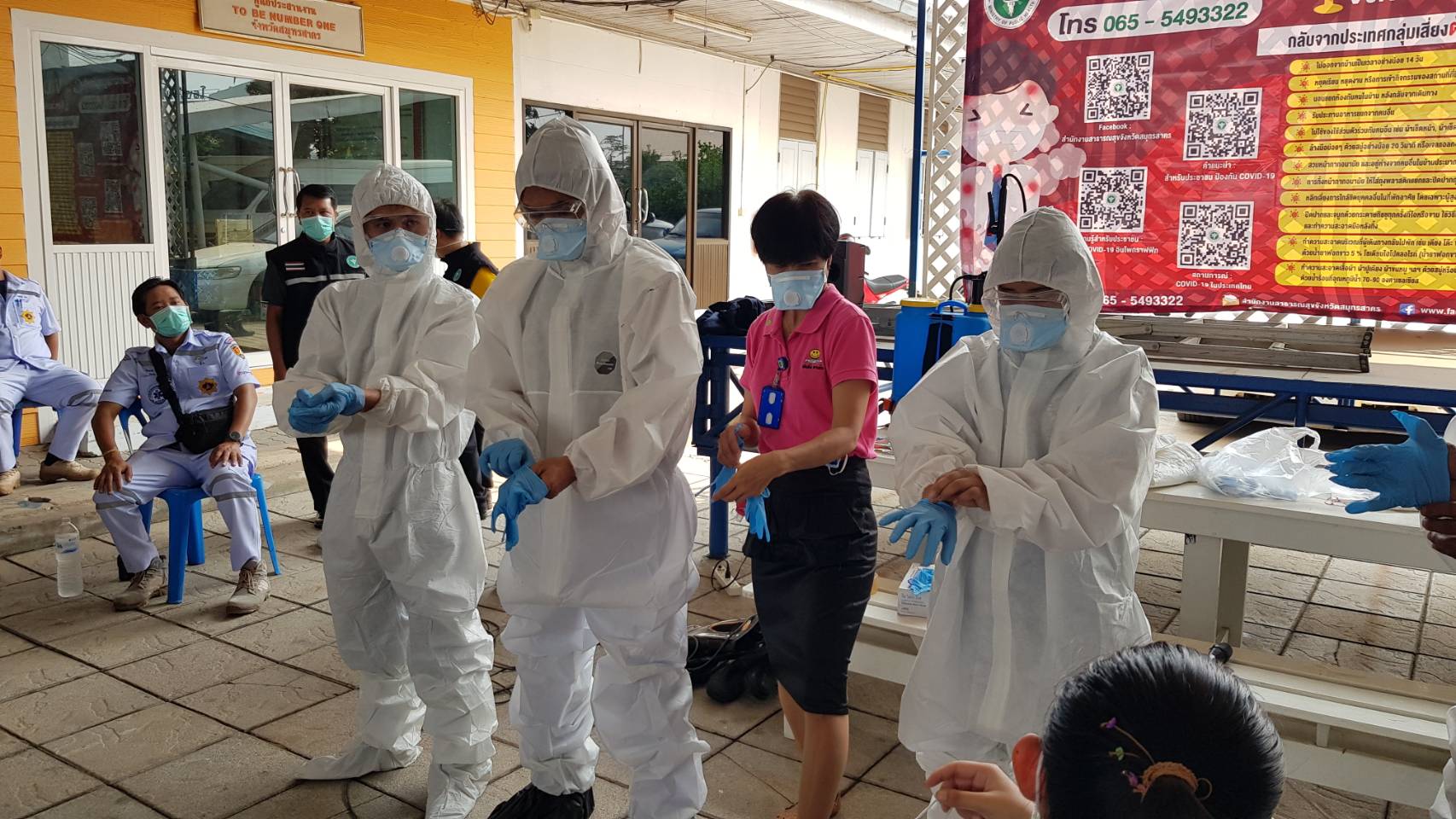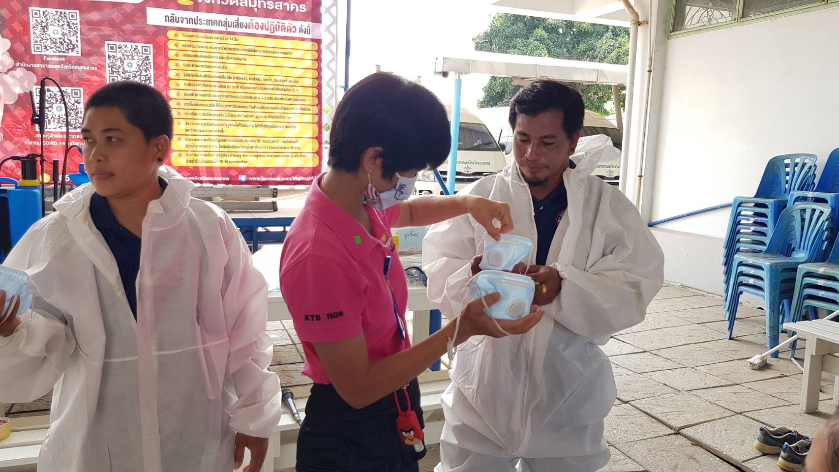 โดยมีนางสาวสายสุณี ปุจฉาการ พยาบาลวิชาชีพโรงพยาบาลกระทุ่มแบน พร้อมด้วยวิทยากรจากสำนักงานสาธารณสุขจังหวัดสมุทรสาคร มาเป็นผู้ให้ความรู้ ทั้งเรื่องของการสวมใส่และการถอด ชุด PPE , การสวมและการถอดแว่นตากันละอองจากสารคัดหลั่งแพร่เชื้อเข้าสู่ทางดวงตา,การสวมและการถอดหน้ากาก N95 อย่างถูกวิธี,การสวมและการถอดถุงมือ 2 ชั้น,การสวมและถอดถุงเท้า – รองเท้า และการสวมกับถอดผ้าพลาสติกกันเชื้อด้านนอกอีก 1 ชั้น เป็นต้น ซึ่งทุกขั้นตอนในการปฏิบัตินั้นจะต้องมีการล้างมือด้วยเจลแอลกอฮอล์เสมอ นอกจากนี้ทีมวิทยากรของสำนักงานสาธารณสุขจังหวัดสมุทรสาคร ยังได้สอนเรื่องของการผสมสารคอรีนและการใช้อุปกรณ์ถังฉีด เพื่อการฉีดพ่นฆ่าเชื้อโควิด-19 อย่างถูกต้องอีกด้วย