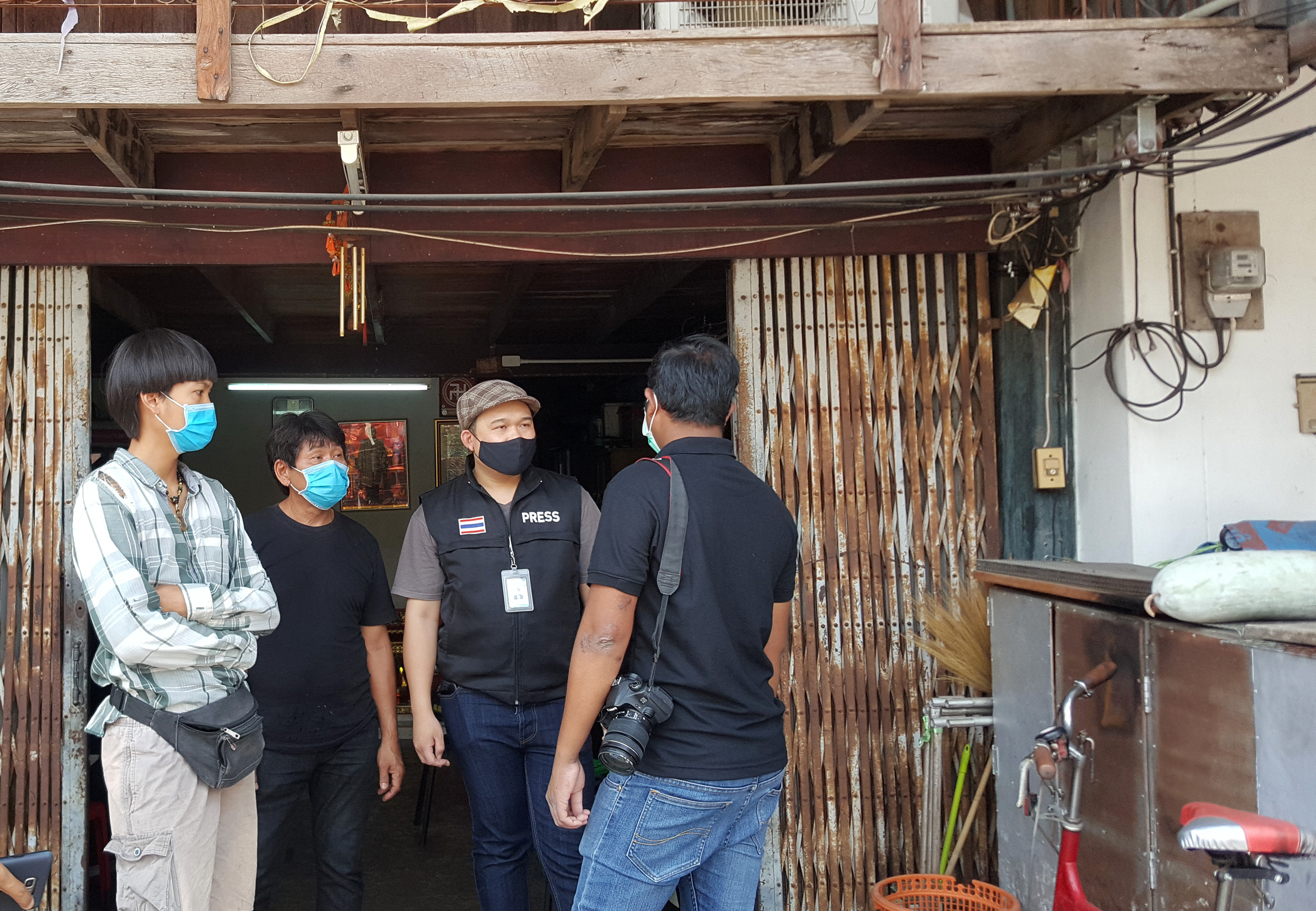 นายสุชาติ หุ่นประเสริฐ อายุ 58 ปีหรือโกเปี๊ยกข้าวมันไก่ ให้การว่าเมื่อกลางดึกคืนวันที่ 31 มีนาคม ช่วงเวลาประมาณตีหนึ่งกว่าขณะที่ตนและคนในบ้านซึ่งมีทั้งคนแก่และเด็กรวม 10 คนกำลังนอนหลับได้ยินเสียงคนตะโกนเรียกบอกไฟไหม้จึงรีบตื่นขึ้นมาดูก็พบมีวัยรุ่น 2 คนกำลังช่วยกับดับไฟอยู่หน้าบ้านตนจึงเข้าไปช่วยและสามารถดับไว้ได้ก่อนที่ไฟจะลุกลามเข้าไหม้ตัวบ้านซึ่งเป็นแบบห้องแถวไม้เก่าซึ่งมีเพื่อนบ้านอาศัยอยู่หลายสิบชีวิต ส่วนคนร้ายหลังจากที่ก่อเหตุได้หลบหนี ตนจึงไปตรวจสอบกล้องวงจรปิดของเพื่อนบ้านที่บันทึกภาพไว้ได้ พบว่าคนร้ายเป็นชายลักษณะคล้ายวัยรุ่น 2 คนขี่รถจักรยานยนต์ ไม่ทราบยี่ห้อและหมายเลขทะเบียนขับวนดูลาดเลาก่อน 1 รอบจากนั้นคนร้ายที่ลงมือก่อเหตุนุ่งกางเกงขาสามส่วนสีดำสวมเสื้อยืดสีดำแขนสั้นเดินถือขวดน้ำมันเข้ามาที่หน้าบ้านก่อนจุดไฟแล้วโยนขวดเพลิงเข้าใส่หน้าบ้านของตนแล้วระเบิดจนเกิดไฟลุกไหม้ขึ้น