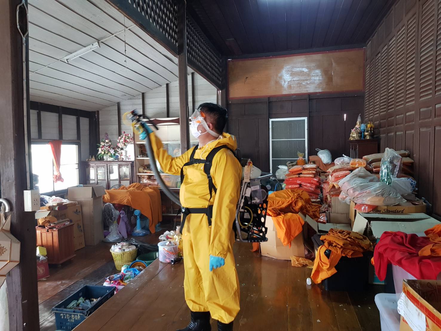 ฉีดพ่นน้ำยาฆ่าเชื้อ ในการฉีดพ่นน้ำยาฆ่าเชื้อโรคระบาดตติดเชิ้อไวรัสโคโรนา 2019( COVI