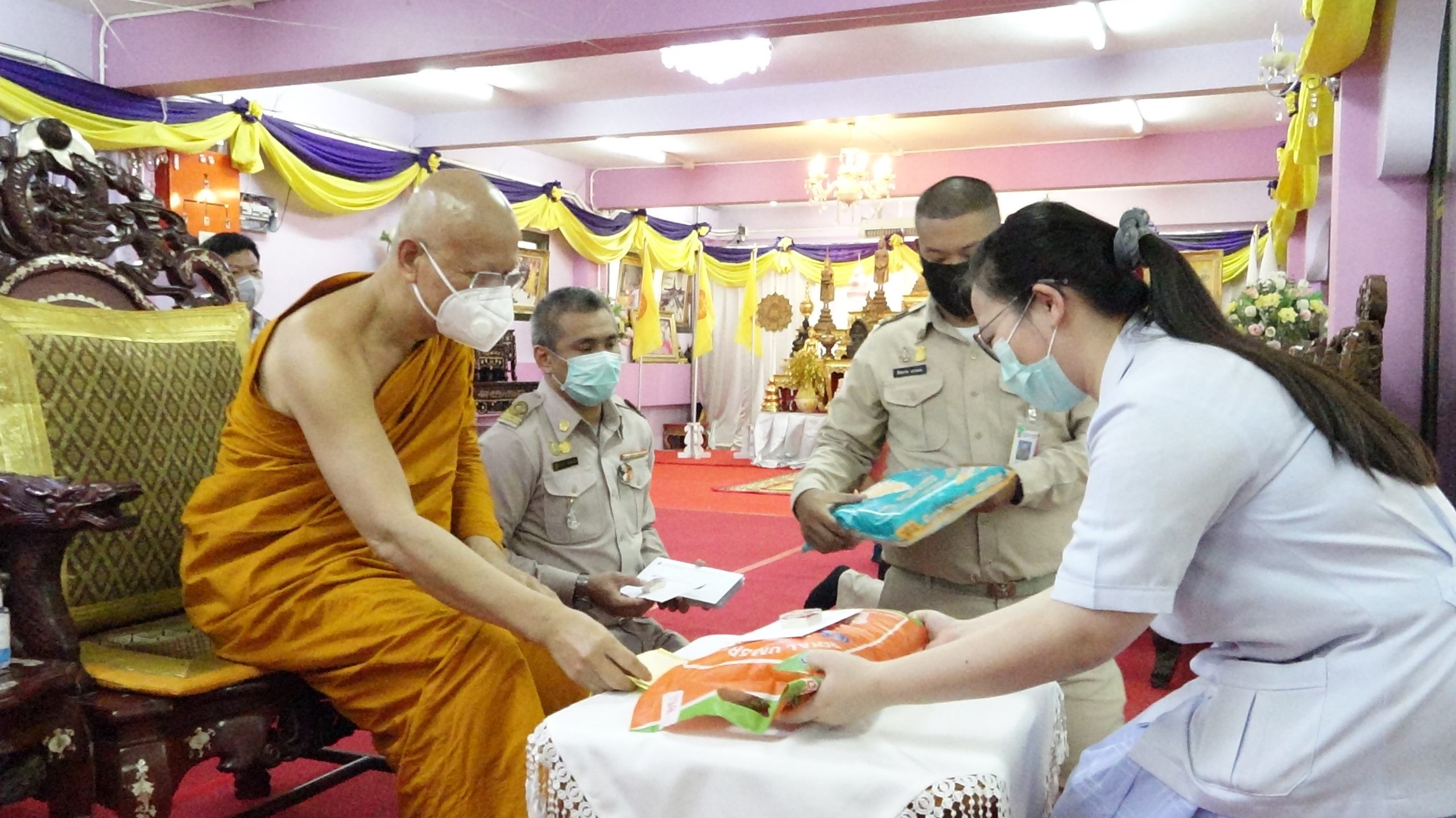 นครปฐม วัดสว่างอารมณ์มอบเงินและข้าวสารสร้างขวัญกำลังใจให้บุคลากรทางการแพทย์