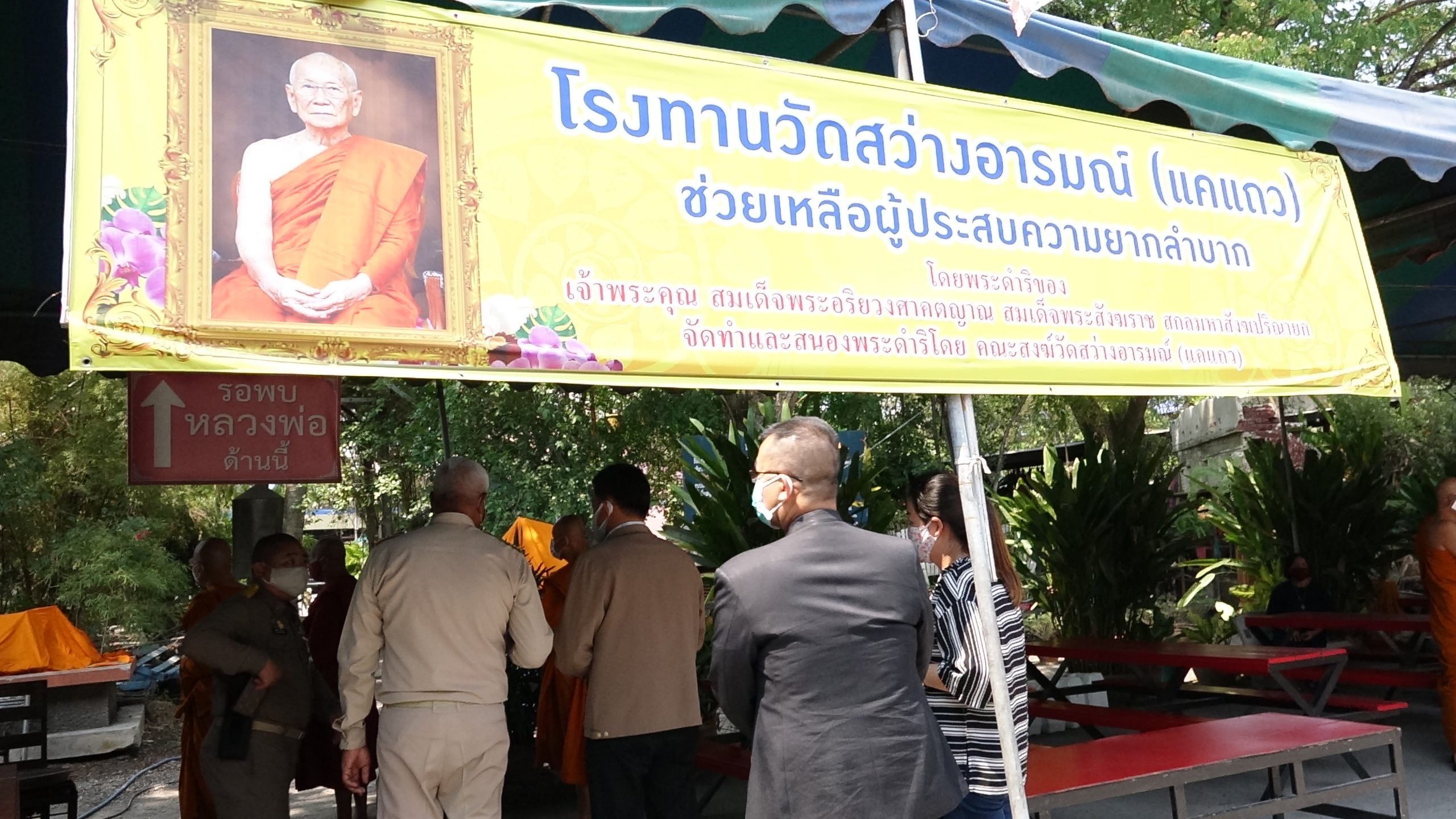 ทางด้านพระครูยติธรรมานุยุต (หลวงพ่อแป๊ะ) เจ้าอาวาสวัดสว่างอารมณ์ ได้กล่าวว่าวัดสว่างอารมณ์ได้จัดตั้งโรงทานตามพระบัญชาของสมเด็จพระสังราชทุกวันจนกล่าวสถานการณ์จะเบาบางลงตามกำลังที่ญาติโยมได้มาทำบุญไว้ ในวันนี้อาตมา จึงได้เล็งเห็นถึงความลำบากเหนื่อยล้าเสี่ยงภัยของบุคลากรทางการแพทย์จึงอยากจะสร้างขวัญกำลังใจ ให้กับบุคลากรทางการแพทย์ เป็นเพียงน้ำใจเล็กๆน้อยเท่าที่คณะสงฆ์จะทำได้ตามกำลังด้วยการมอบวัตถุมงคล เงินและข้าวสาร เพื่อความเป็นสิริมงคล ในการเดินทางมาตรวจเยี่ยมโรงทานวัดสว่างของ สมเด็จพระมหาวีรวงศ์ จึงได้นิมนต์เป็นองค์ประธานมอบในครั้งนี้ด้วย