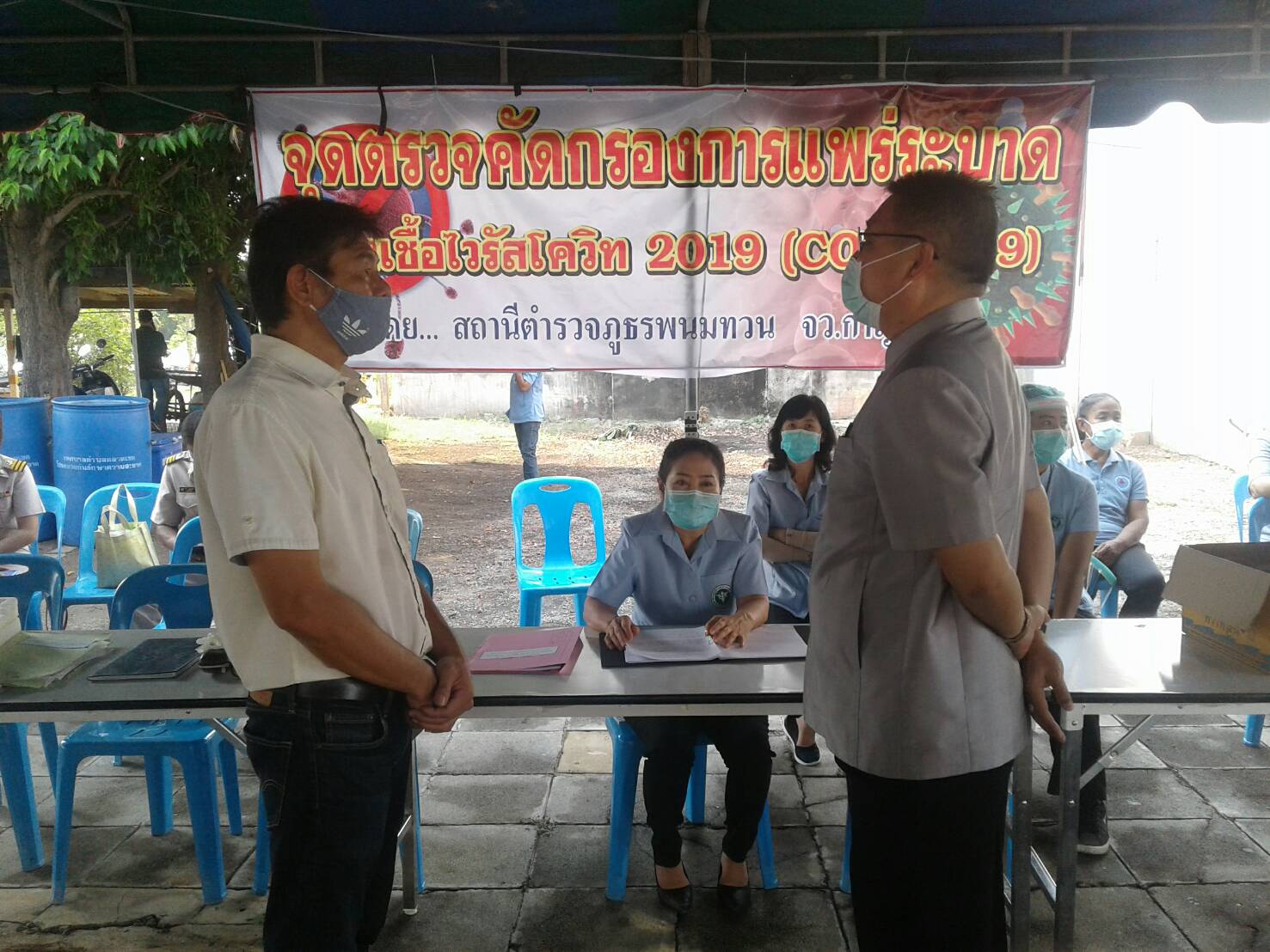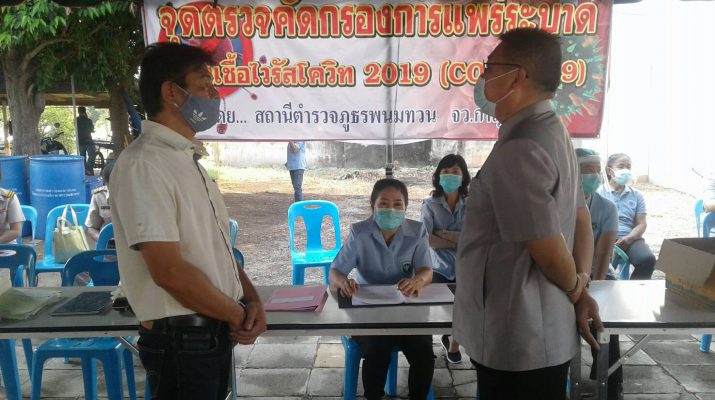 ที่บริเวณหน้าสถานีตำรวจชุมชนบ้านตลาดเขต อำเภอพนมทวน จังหวัดกาญจนบุรี ฝั่งขาเข้ากาญจนบุรี นายธนณัฏฐ์ ศรีสันต์ นายอำเภอพนมทวน เปิดจุดคัดกรองการแพร่ระบาดของเชื้อไวรัสโควิด-19 พร้อมด้วยพ.ต.อ.อำนาจ เอี่ยมใจดี ผู้กำกับการสถานีตำรวจภูธรพนมทวนจังหวัดกาญจนบุรี ผอ.พรปวีร์ อมรกาญจนพินิจ ผู้อำนวยการโรงพยาบาลส่งเสริมสุขภาพตำบลบ้านตลาดเขต เจ้าหน้าที่ตำรวจ ทหาร กองอาสารักษาดินแดน ร่วมจุดตรวจคัดกรองฯ สำหรับผู้ที่สัญจรบนเส้นทางทางหลวงหมายเลข 324 ฝั่งขาเข้าตัวเมืองกาญจนบุรีให้ความร่วมมือเป็นอย่างดี โดยมีการตรวจวัดไข้ ให้กับผู้ขับขี่และผู้โดยสารทุกคน เพื่อเป็นการคัดกรอง และป้องกันการแพร่ระบาดของเชื้อไวรัสโควิด-19 นายธนณัฏฐ์ ศรีสันต์ นายอำเภอพนมทวน กล่าวว่า ตามที่นายกรัฐมนตรีได้มีประกาศสถานการณ์ฉุกเฉินในเขตท้องที่ทั่วราชอาณาจักรโดยมีผลบังคับใช้ในวันที่ 26 มีนาคม 2563 ประกอบกับได้มีข้อกำหนดออกตามความในมาตรา 9 แห่งพระราชกำหนดการบริหารราชการในสถานการณ์ฉุกเฉินพ.ศ 2548 ฉบับที่ 1 ข้อ 10 มาตรการดูแลความสงบเรียบร้อยโดยให้มีการตั้งด่านตรวจ จุดสกัด ดูแลการเดินทางข้ามพื้นที่จังหวัดเพื่อจัดระเบียบการเดินทางการจราจร การเฝ้าระวังและสังเกตอาการผู้เดินทางและพฤติกรรมที่เสี่ยงต่อการติดเชื้อโรคนั้น