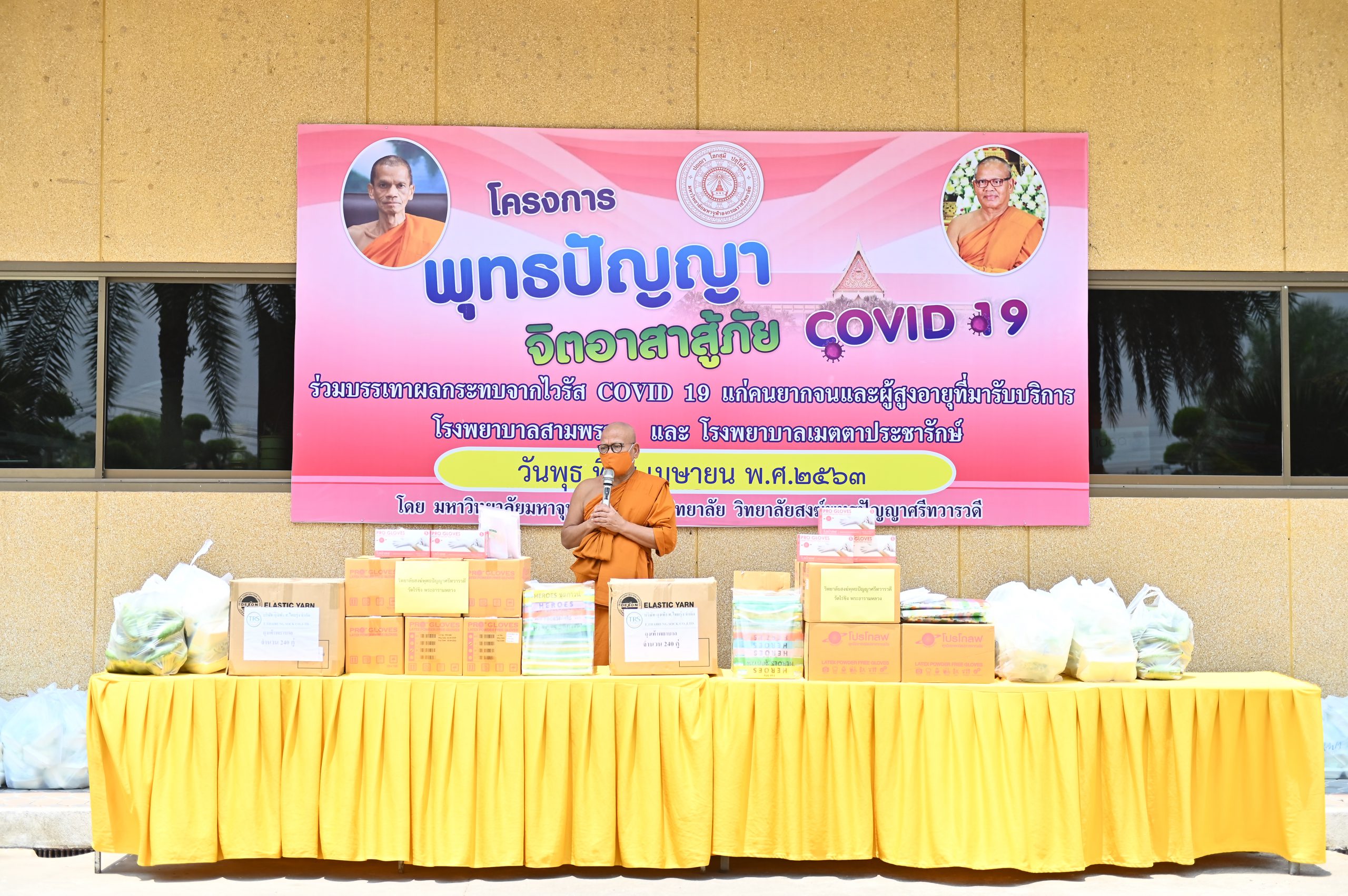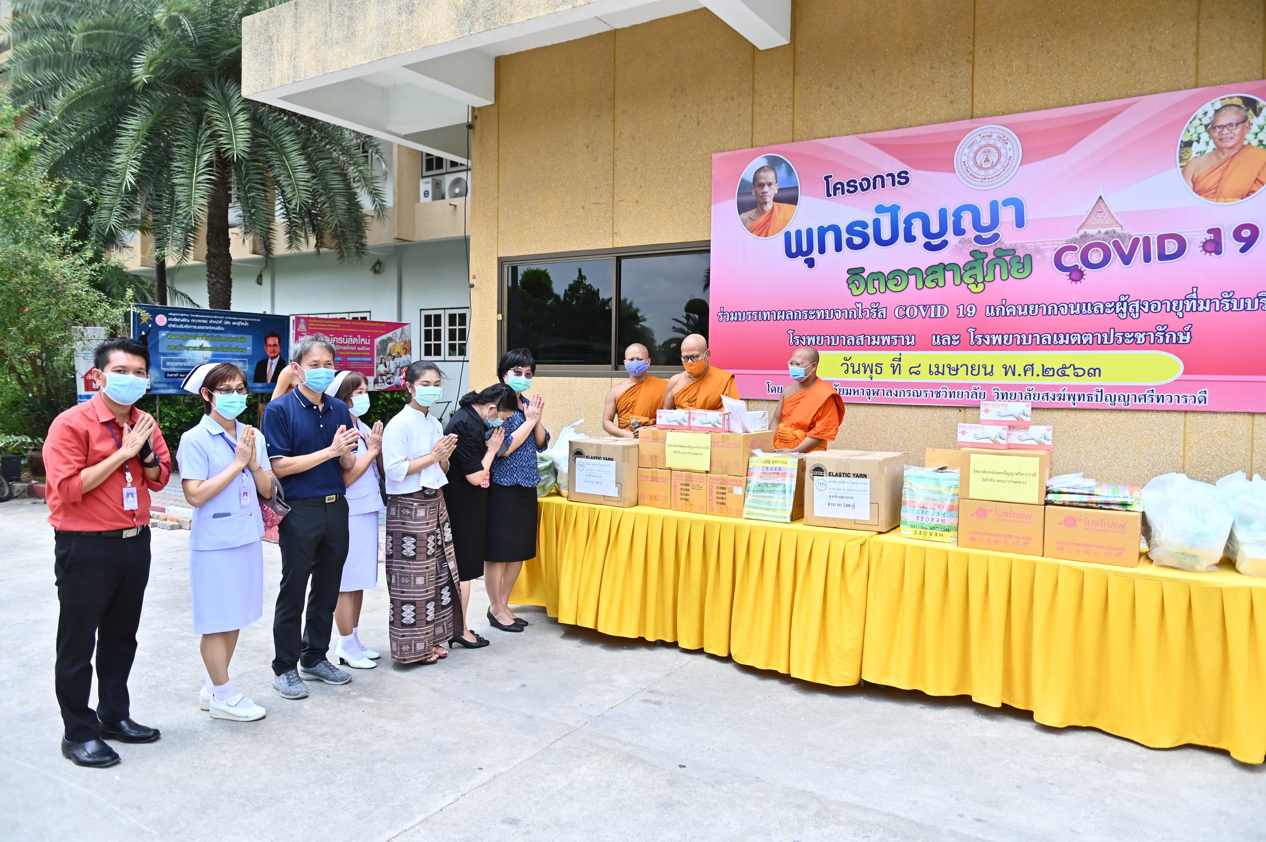 วิทยาลัยสงฆ์พุทธปัญญาศรีทวารวดีจัดโครงการพุทธปัญญาจิตอาสาสู้ภัยโควิด-19มอบสิ่งของให้โรงพยาบาล2แห่ง
