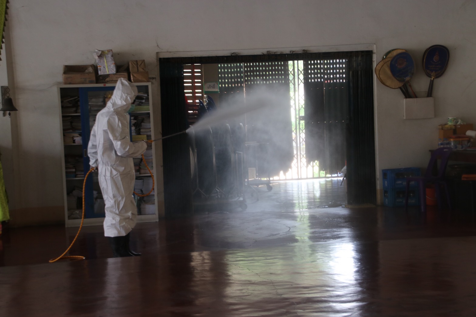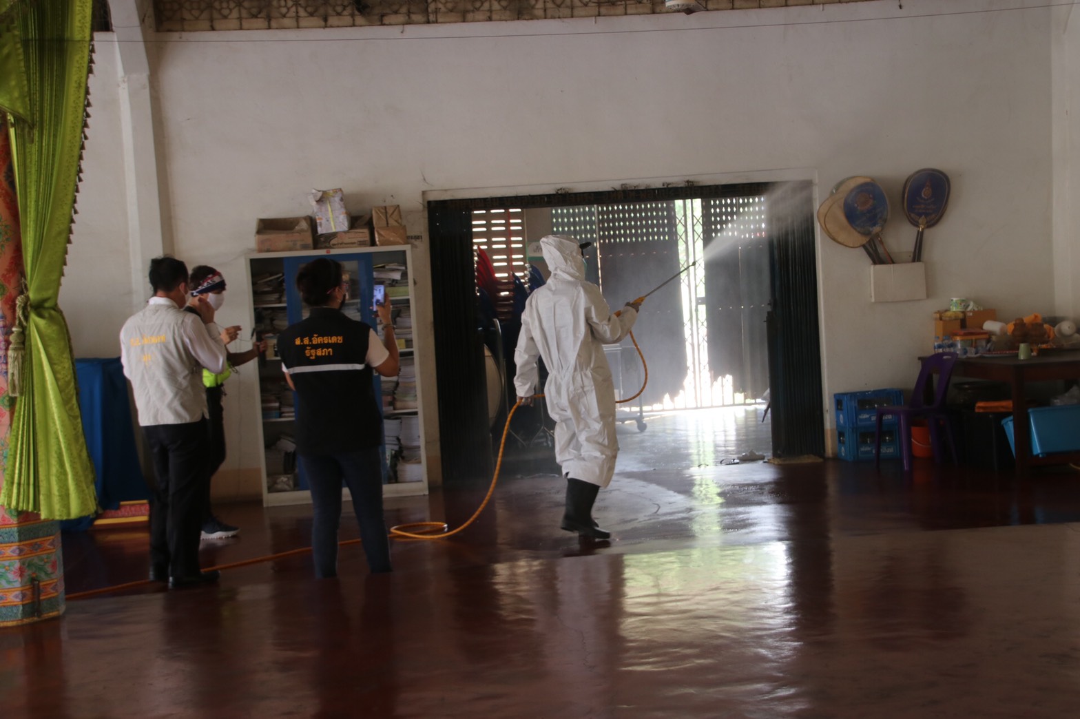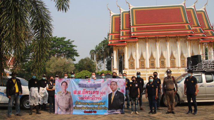 ผู้แทนราษฎรจับมือกลุ่มราชสีห์ตำบลท่าผา อ. บ้านโป่ง จ. ราชบุรี พ่นยากำจัดเชื้อไวรัส COVID-19 เพื่อระงับการแพร่พันธุ์