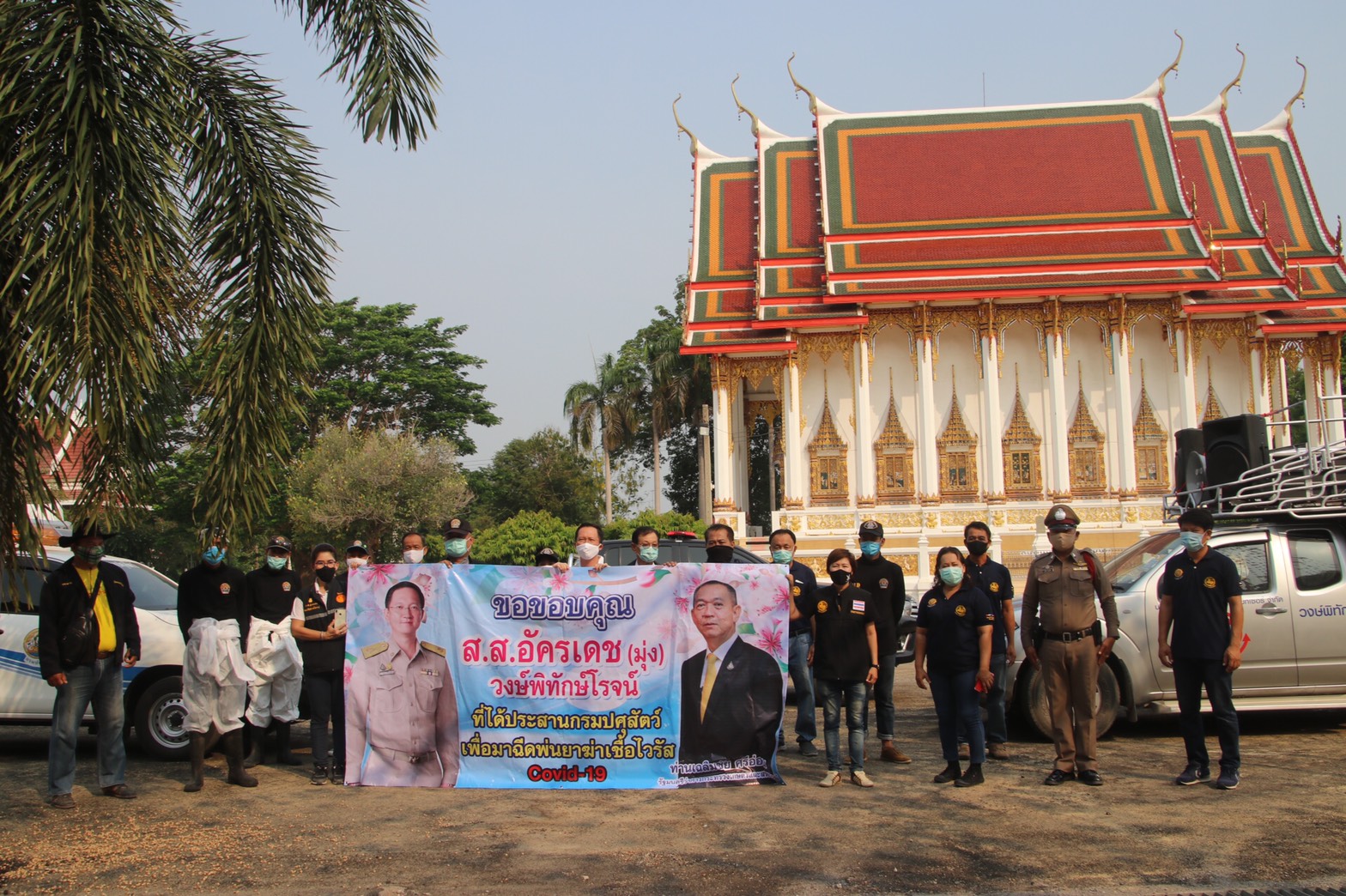 นายอัครเดช วงษ์พิทักษ์โรจน์ ส.ส. จังหวัดเขต 4 อำเภอบ้านโป่งเลขานุการและโฆษกคณะกรรมาธิการ (กมธ ) การพาณิชย์ และทรัพย์สินทางปัญญาสภาผู้แทนราษฎร และนายนิสันต์ ง่วนสำอางค์ (ฉุย ) กำนันตำบลท่าผา และกองสารวัตรและกักกันปศุสัตว์จังหวัดราชบุรี พร้อมด้วยนายอุเทน วราเอกศิริ ประธานชมรมผู้สูงอายุตำบลท่าผา ร.ต.ท. สุชาติ สุขแป้น หัวหน้าสายตรวจตำบลท่าผาแพทย์,สารวัตร ผู้ใหญ่,ผู้ช่วย อสม. ร่วมปฏิบัติการพ่นยาฆ่าเชื้อ ชะล้างสิ่งปนเปื้อน การแพร่ระบาดเชื้อไวรัส COVID-19 โดยการใช้น้ำยาที่มีประสิทธิภาพสูง ในการฆ่าเชื้อไวรัส ตามหน่วยงาน วัด โรงเรียนอาคารหน่วยงานราชการ สวนสาธารณะ ตลาดนัด เครื่องออกกำลังกาย บ้านเรือนประชาชน และสถานที่ ที่มีประชาชนเข้าออกใช้บริการโดยการปฏิบัติการดังกล่าว จะทำอย่างต่อเนื่องไปให้ครบทุกตำบลในพื้นที่อำเภอบ้านโป่ง
