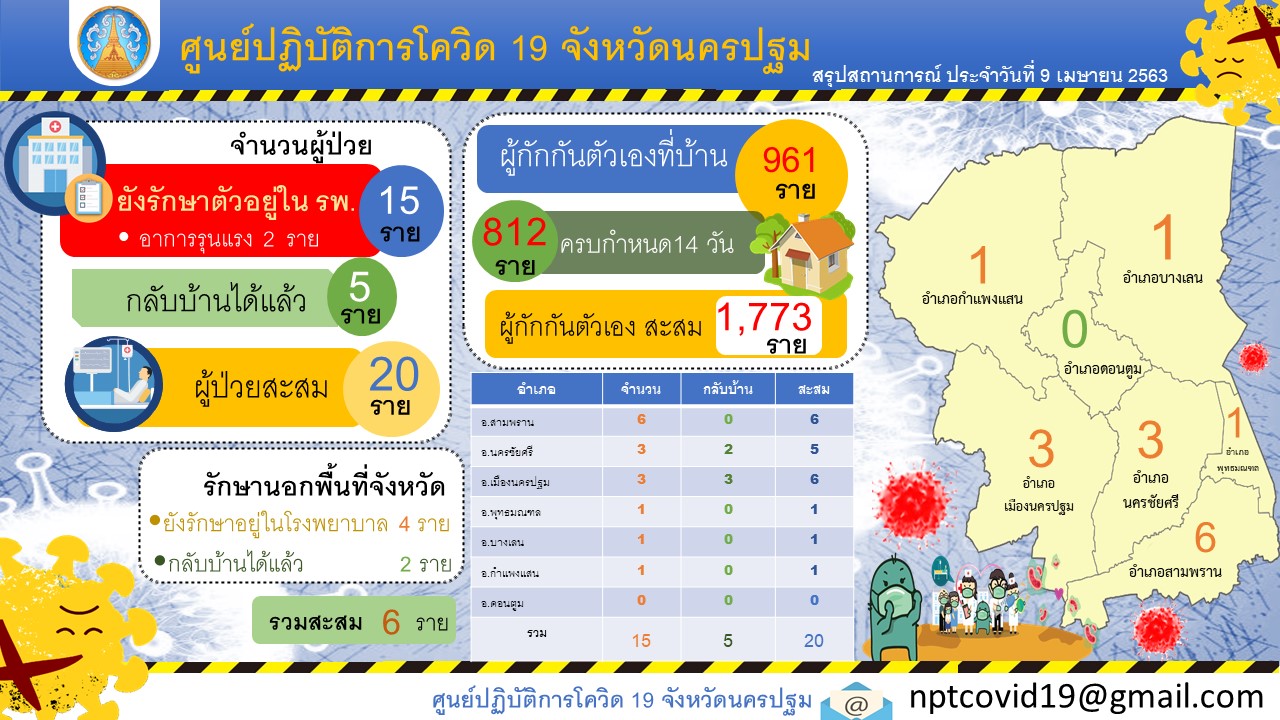 นครปฐม สถานการณ์ COVID-19 ประจำวันที่ 9 เมษายน 2563 ไม่พบผู้ป่วยรายใหม่