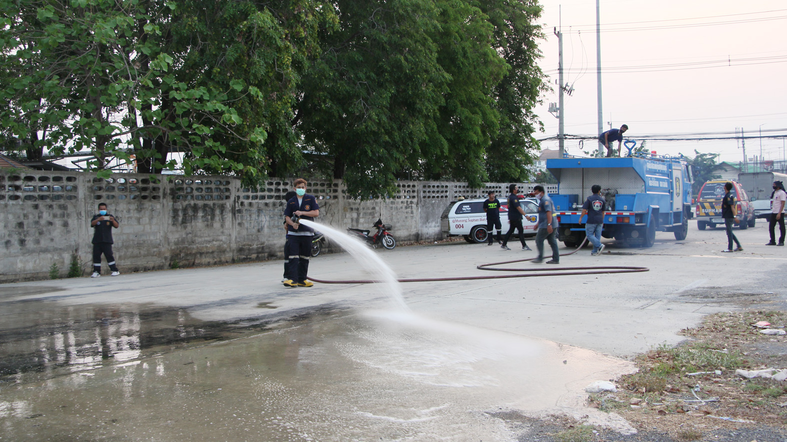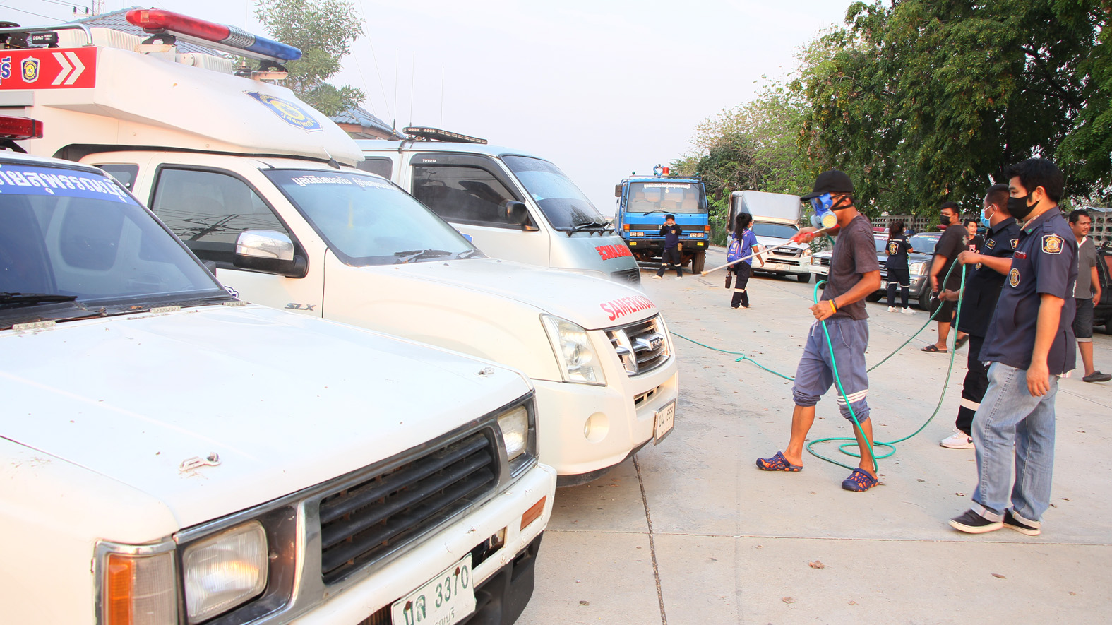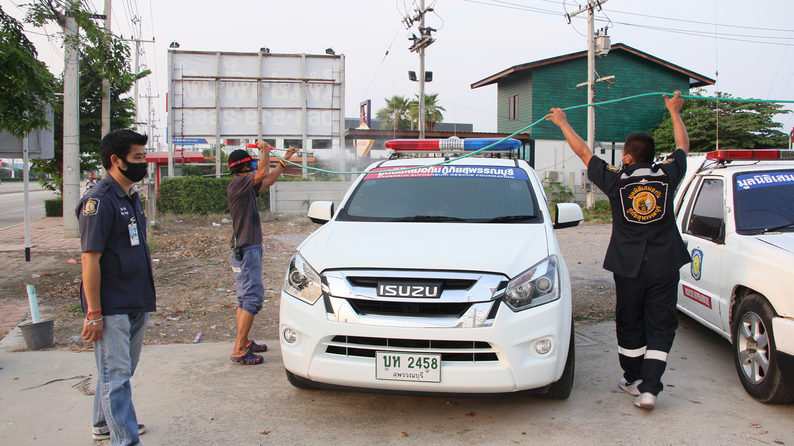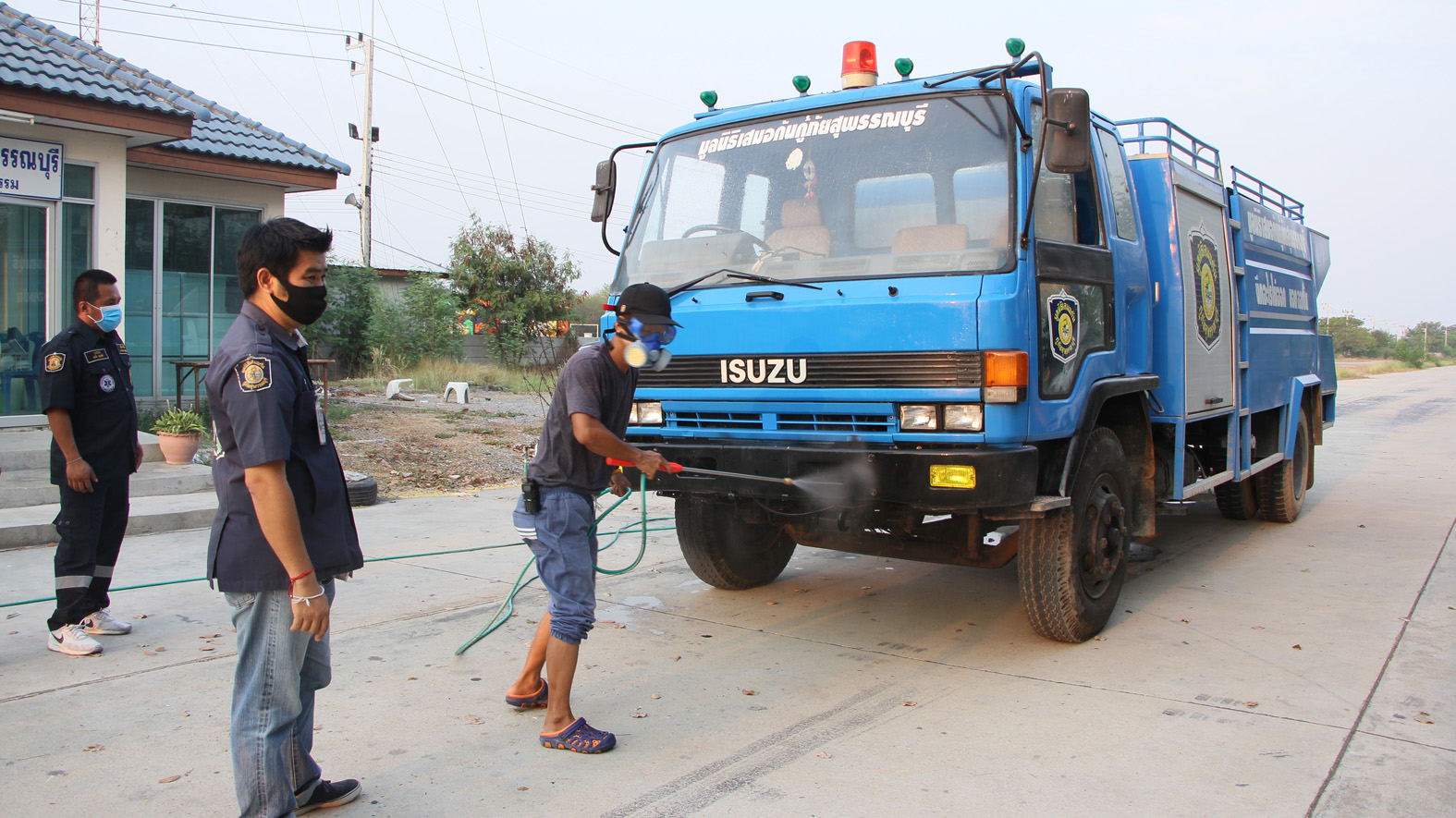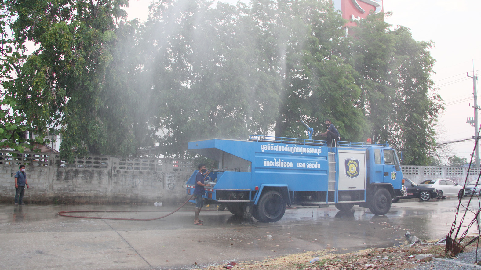 สุพรรณบุรี มูลนิธิเสมอกันกู้ภัยสุพรรณบุรีไม่ประมาทฉีดพ่นยาฆ่าเชื้อป้องกันไวรัสโควิด19