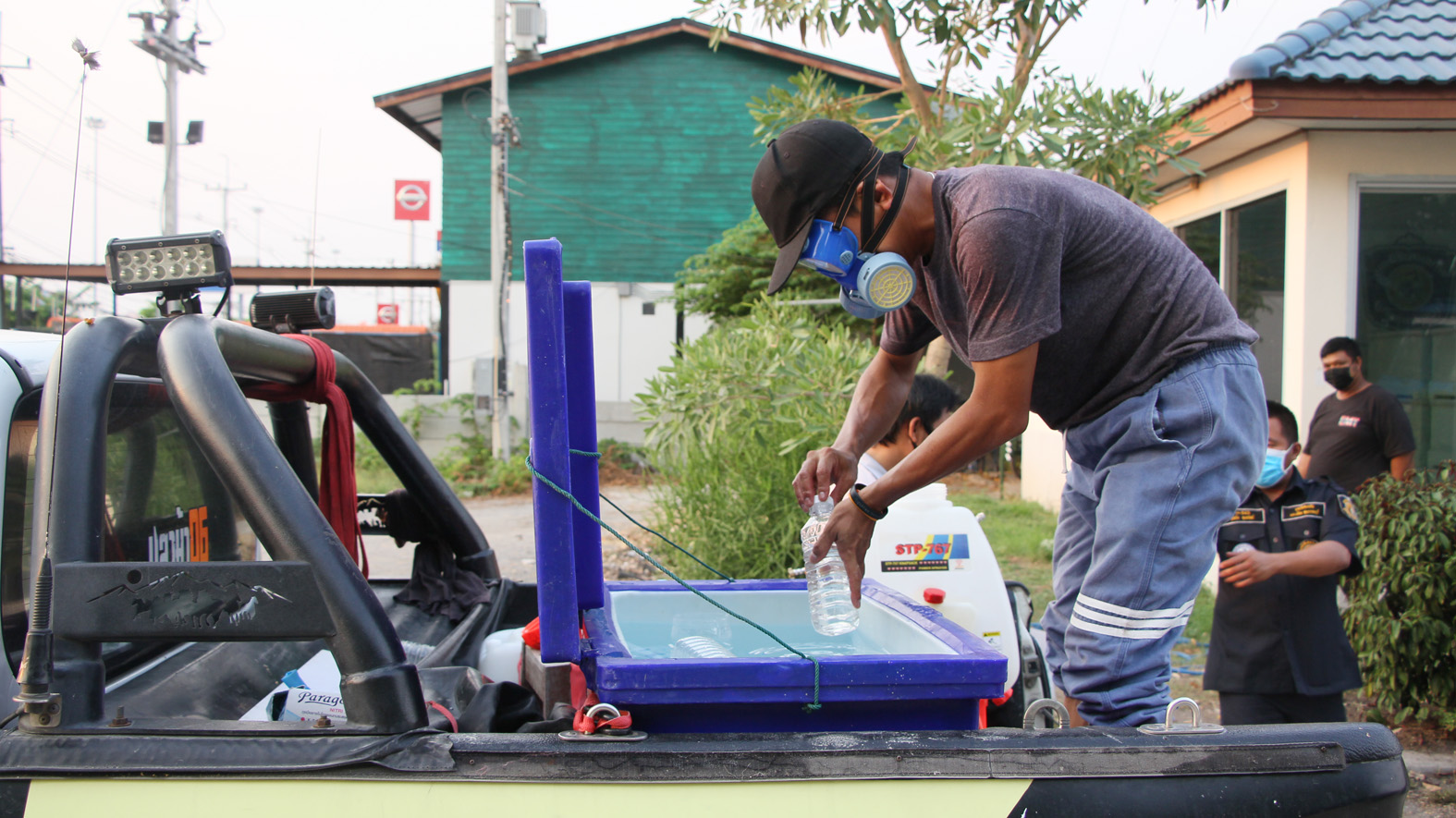 นายพุฒิพัฒน์ กุลทองสวโรจน์ อายุ 40 ปี อาสาสมัครกู้ภัยมูลนิธิเสมอกันกู้ภัยเขตบางปลาม้า กล่าว่าตนได้นำน้ำยาฆ่าเชื้อจำนวนหนึ่งมาฉีดพ่นฆ่าเชื้อให้ในพื้นที่สาธารณะและยังได้แจกจ่ายให้กับทีมงานกู้ชีพกู้ภัยทุกหน่วยงานในพื้นที่เขตสุพรรณบุรีโดยได้แจกจ่ายไปให้อำเภอละ 100 ลิตรโดยประมาณและอาสาสมัครมูลนิธิเสมอกันแต่ละอำเภอ เพื่อนำไปฉีดพ่นฆ่าเชื้อป้องกันการแพร่ระบาดของเชื้อไวรัสโควิด 19 อีกด้วย