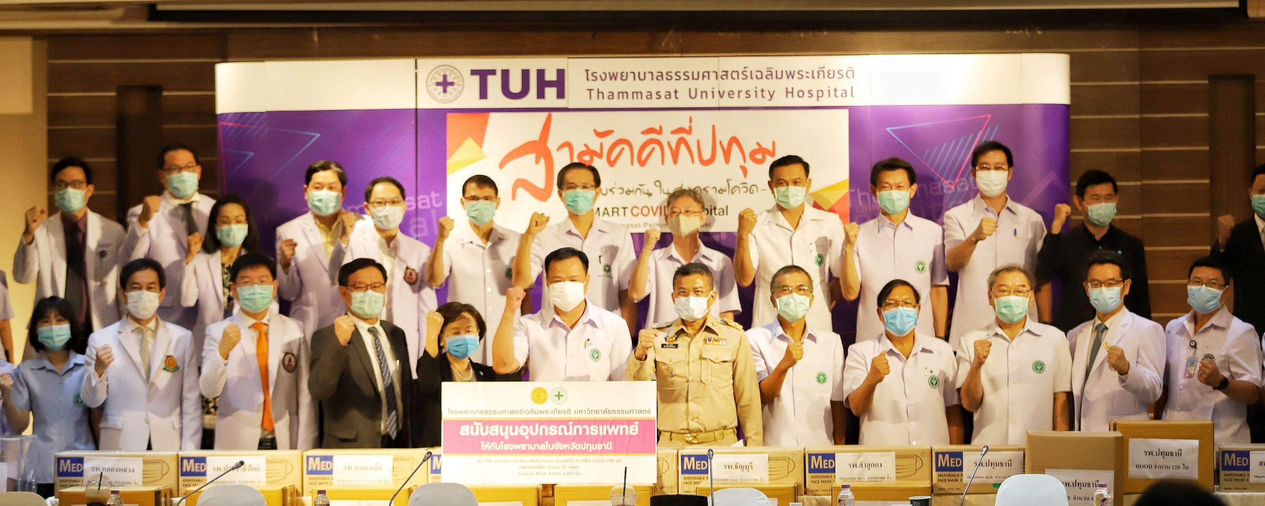 รพ.ธรรมศาสตร์ฯ ชวน ทุกโรงพยาบาลในจังหวัดปทุมธานีมารบกับโควิด- 19เรียกทุกโรงพยาบาลมาเอาเครื่องมือแพทย์ฯ ให้สู้ด้วยกันเหมือนเรียกมากอดกันและตบไหล่ว่า “กูไม่ทิ้งมึงนะปทุมฯเพื่อนรัก”