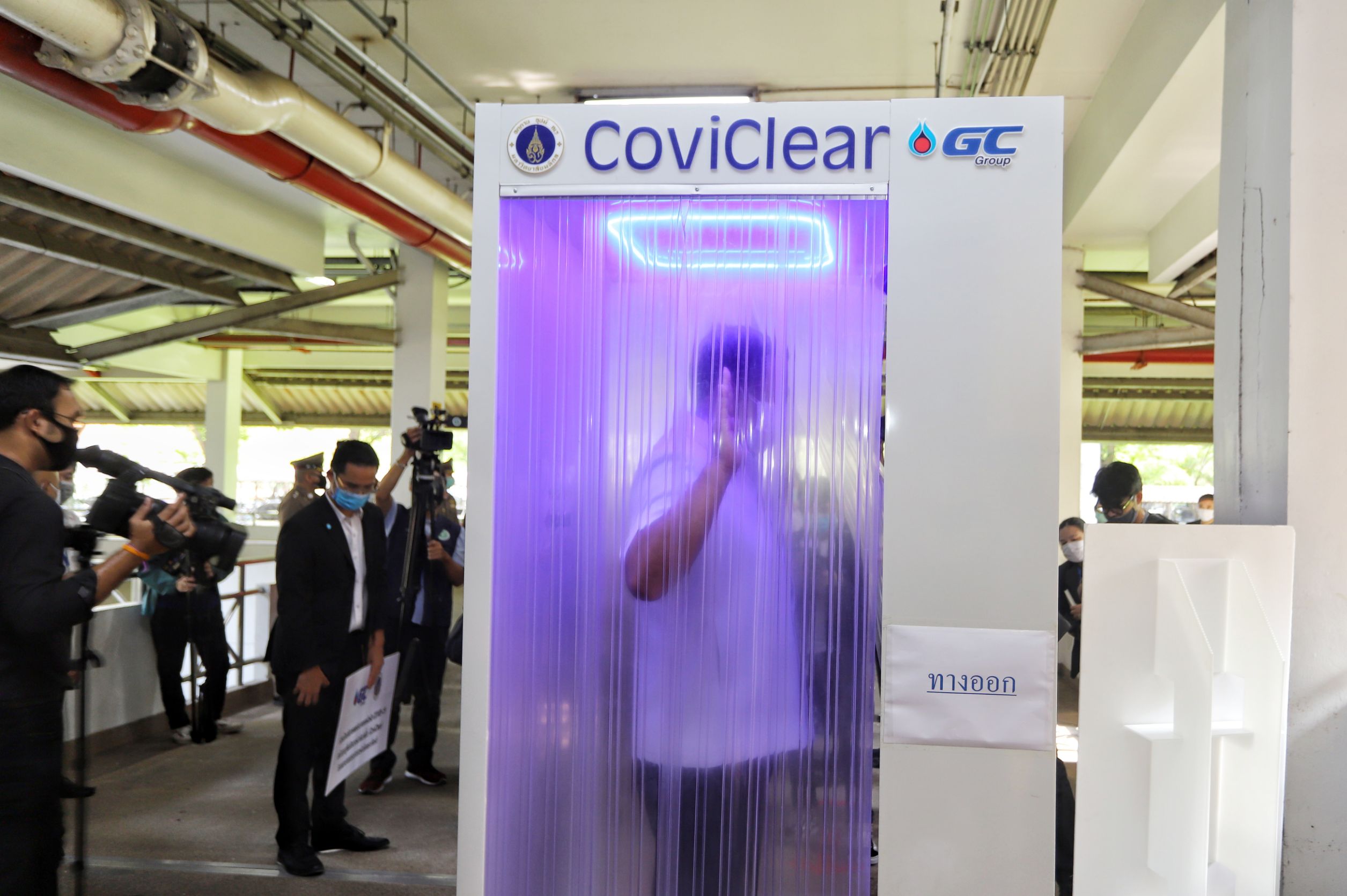 ก่อนเข้าร่วมประชุม นายอนุทิน ได้เข้าทดลองใช้ตู้ฆ่าเชื้อไวรัส ที่ทาง บริษัท พีทีที โกลบอล เคมิคอล จำกัด (มหาชน) หรือ GC ที่ร่วมกับมหาวิทยาลัยมหิดล ได้ร่วมกันทำขึ้น เพื่อเป็นนวัตกรรมที่ใช้ป้องกันการแพร่ระบาดของเชื้อไวรัส และเชื้อโรคชนิดต่างๆด้าน นายแพทย์พฤหัส ต่ออุดม ผู้อำนวยการโรงพยาบาลธรรมศาสตร์เฉลิมพระเกียรติ เปิดเผยโรงพยาบาลสามารถรองรับคนไข้ทั่วไป 750 เตียง ส่วนความพร้อมในการรักษาอาการโควิด-19 มีห้องความดัน 13 เตียง, หอผู้ป่วยโควิด-19 รวม 12 เตียง, ห้องผู้ป่วยแยกโรค 32 เตียง เตรียมเปิดห้องไอซียูอีก 40 เตียง กลางเดือนพฤษภาคมนี้ รวมทั้งได้เปิดโรงพยาบาลสนามรองรับผู้ป่วยอาการไม่รุนแรงมาพักฟื้นอีก 308 เตียง ด้านเวชภัณฑ์และอุปกรณ์ทางการแพทย์มีเพียงพอสำหรับตลอด 2 เดือน ขณะเดียวกันได้พัฒนาแอปพลิเคชันไว้สำหรับพูดคุยและติดตามผู้ป่วย บริการได้มีการจัดส่งยารักษาผู้ป่วยเรื้อรังถึงบ้าน และนำหุ่นยนต์ “ยุงทอง” ที่ไอแอพพ์ เทคโนโลยี บริจาค 1 ตัว เป็นการวิจัยร่วมสถาบันเทคโนโลยีนานาชาติสิรินธร มหาวิทยาลัยธรรมศาสตร์ กว่า 6 เดือน ใช้สำหรับวัดไข้ด้วยระบบอัตโนมัติและคำสั่งภาษาไทย ได้ต้องใช้รีโมทสั่งการ ซึ่งหุ่นยนตร์สามารถพูดโต้พูดคุยกับคนป่วยได้ เพื่อนำมาใช้ในโรงพยาบาลธรรมศาสตร์เฉลิมพระเกียรติ ในภาวะวิกฤตโควิด-19 โดยในอนาคตตั้งเป้าพัฒนาให้เชื่อมโยงกับเครื่องตรวจออกซิเจนที่ปลายนิ้วได้ รวมทั้งสามารถวัดความดัน เก็บข้อมูลคนไข้ ส่งให้หมอ โดยที่หมอไม่ต้องซักประวัติผู้ป่วย