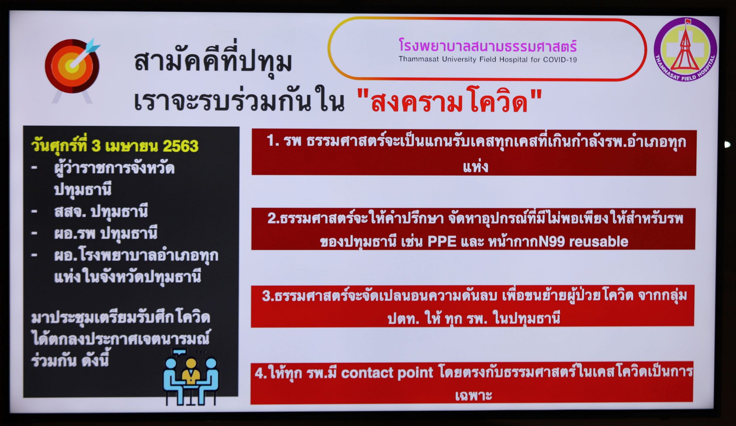 1.รพ.ธรรมศาสตร์ฯ และโรงพยาบาลสนามฯ ยินดีรับทุกเคสที่เกินกำลังของทุกอำเภอในปทุมธานี
