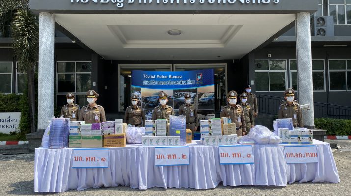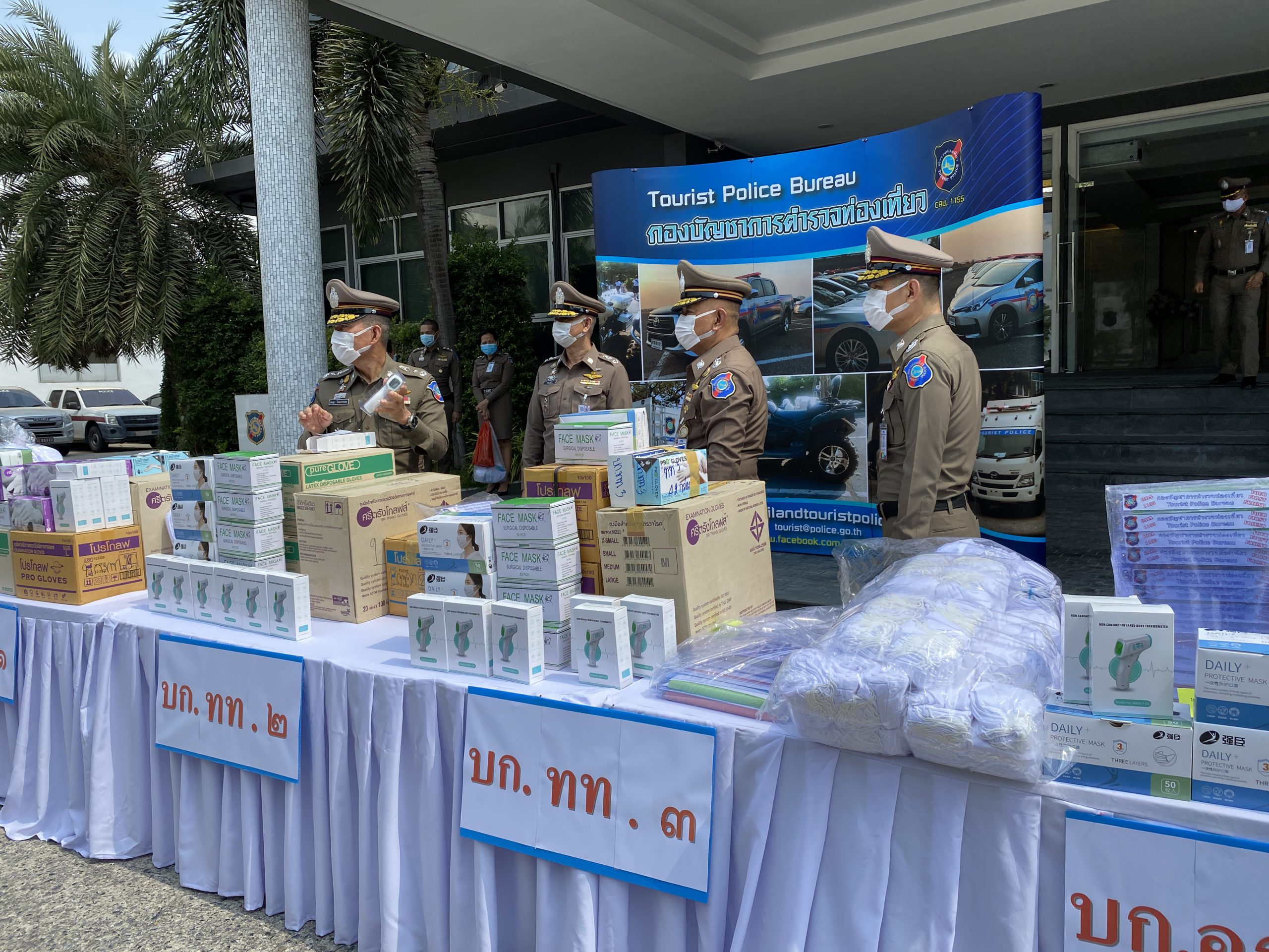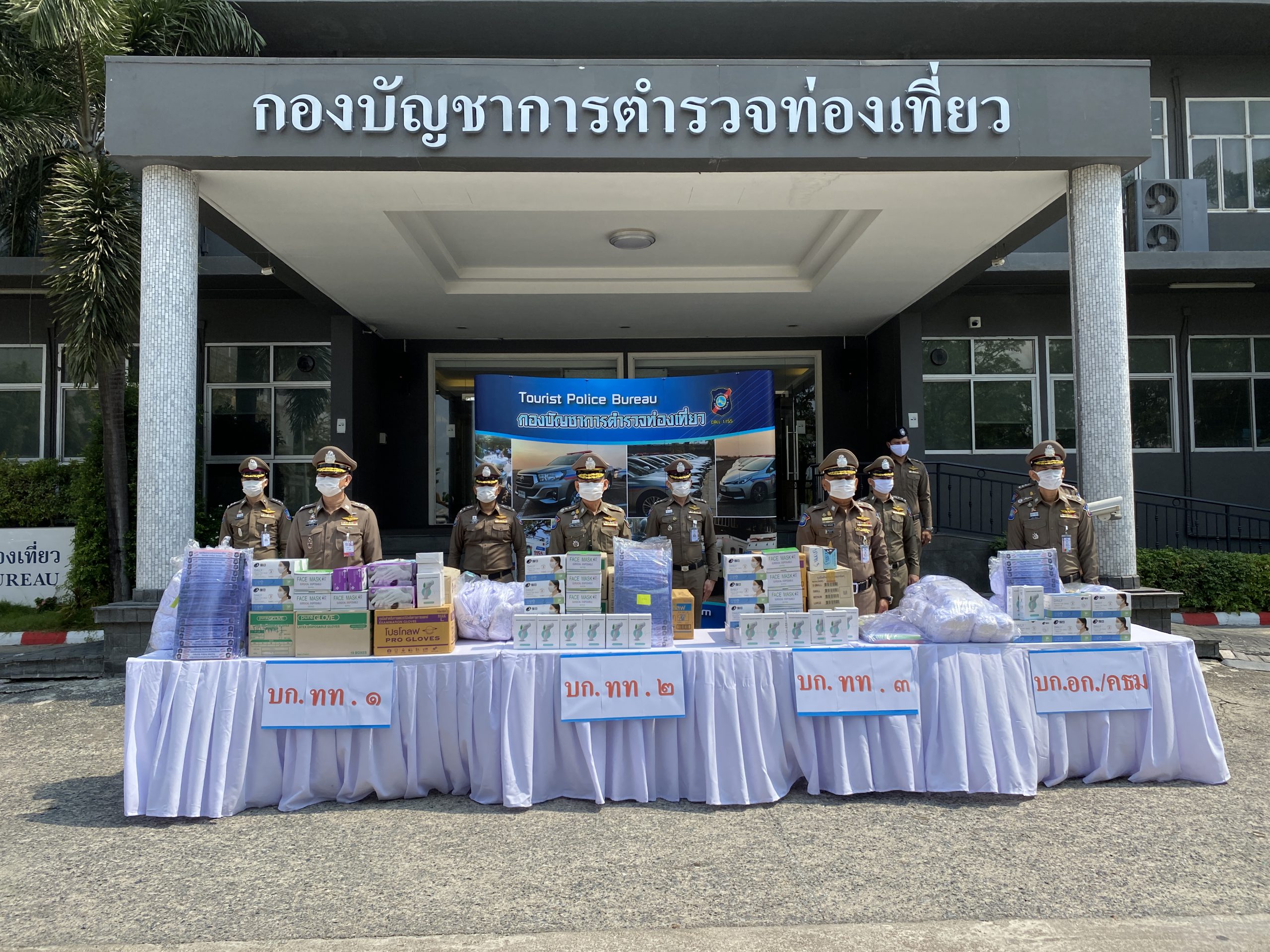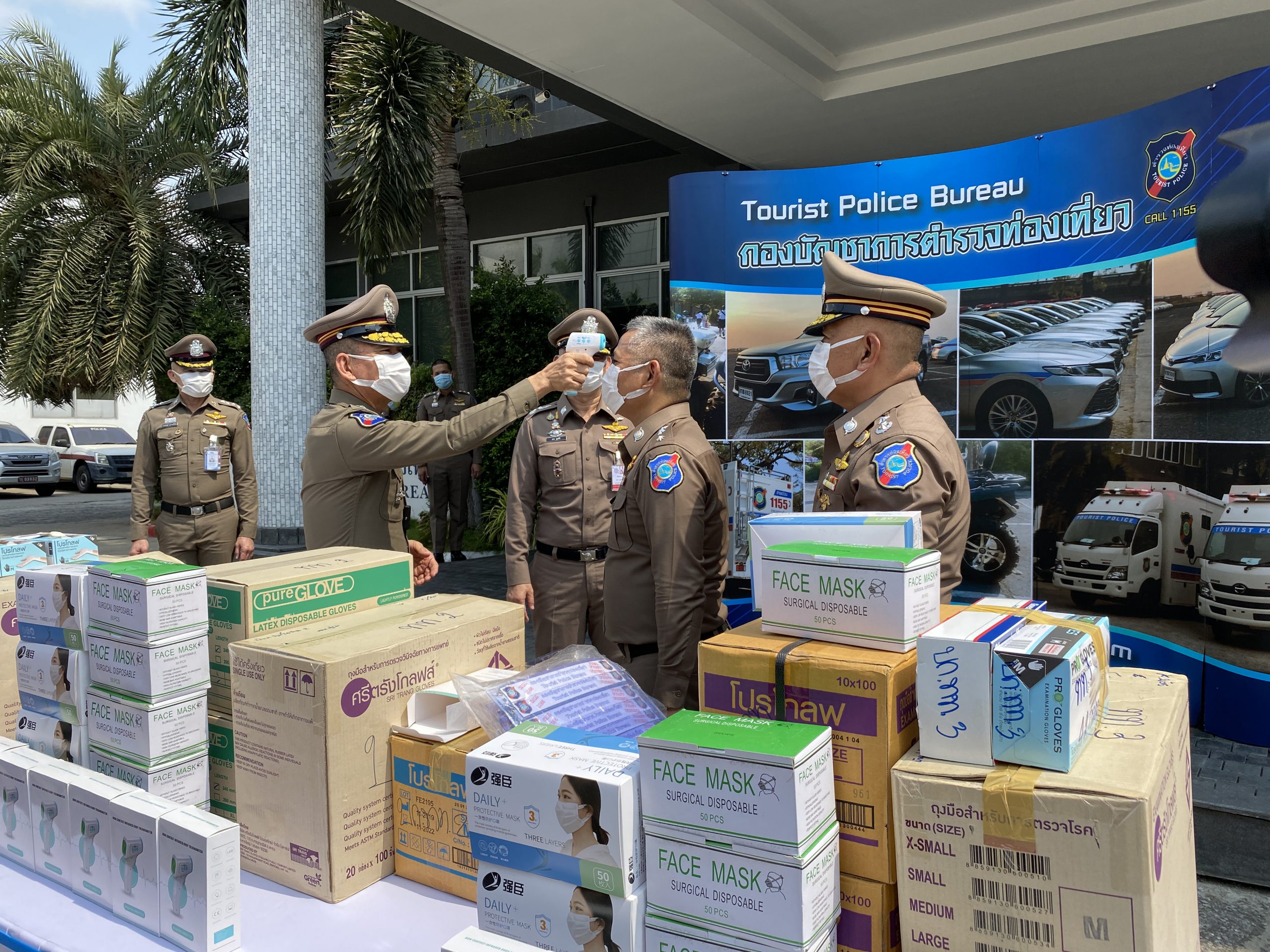 โดยมี พลตำรวจตรี มานัด ศรีวงษา ผู้บังคับการอำนวยการ กองบัญชาการตำรวจท่องเที่ยว และ ผู้บังคับการตำรวจท่องเที่ยว 1 – 3 พร้อมด้วยตัวแทนข้าราชการตำรวจในสังกัดเป็นผู้รับมอบอุปกรณ์ป้องกันโรคติดเชื้อไวรัสโคโรนา 2019 (COVID-19) จำนวน 5 รายการ คือ หน้ากากอนามัยแบบผ้า 5,000 ชิ้น หน้ากากอนามัยแบบทางการแพทย์ 2,000 ชิ้น หน้ากากแบบเฟรชชิล 140 ชิ้น ถุงมือยางทางการแพทย์ 230 กล่อง ๆ ละ 50 คู่ รวม 11,500 คู่ เครื่องวัดอุณหภูมิแบบมือถือ (เทอร์โมมิเตอร์) 20 เครื่อง เพื่อใช้งานในการปฏิบัติหน้าที่ เพื่อให้มีความปลอดภัยของผู้ใต้บังคับบัญชา ณ บริเวณหน้ากองบัญชาการตำรวจท่องเที่ยว