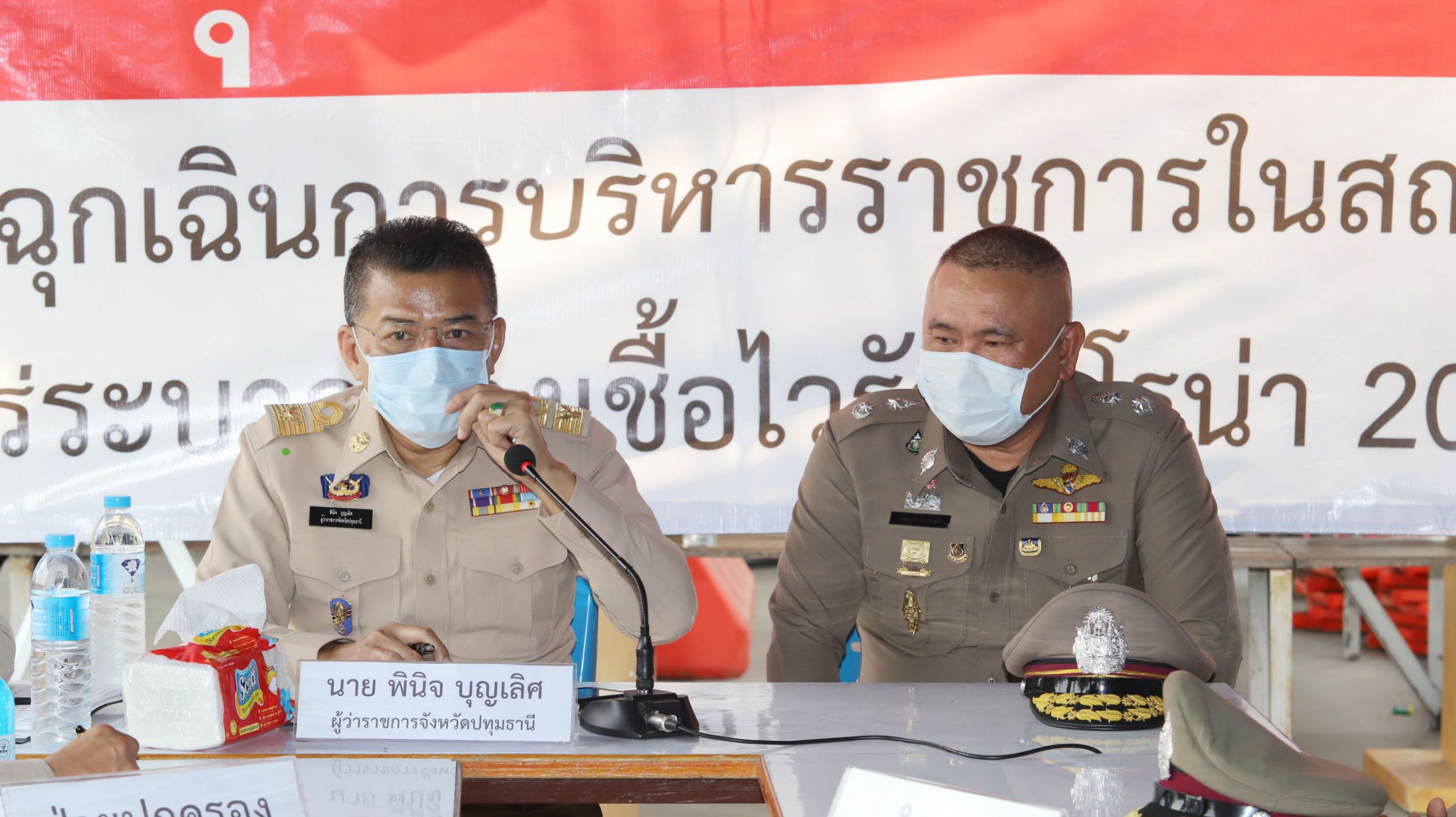 ผู้ว่าปทุมฯตรวจเยี่ยมจุดสกัดพร้อมร่วมประชุมหารือแนวทางการปฎิบัติ เพื่อป้องกันการแพร่ระบาดของไวรัสโควิด-19