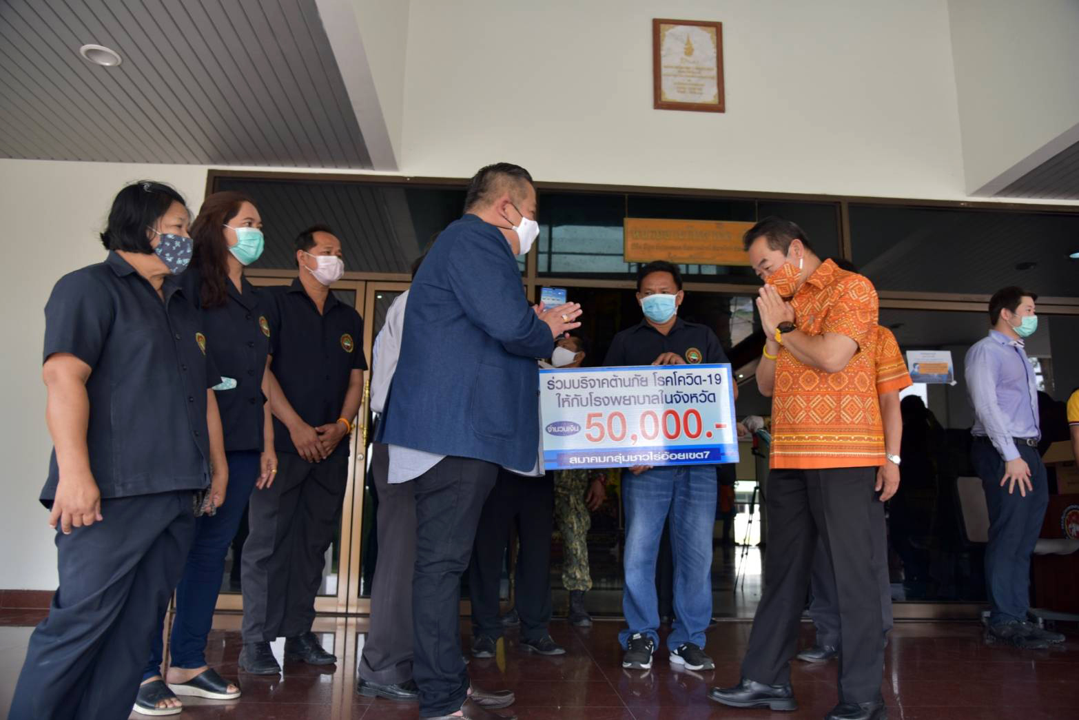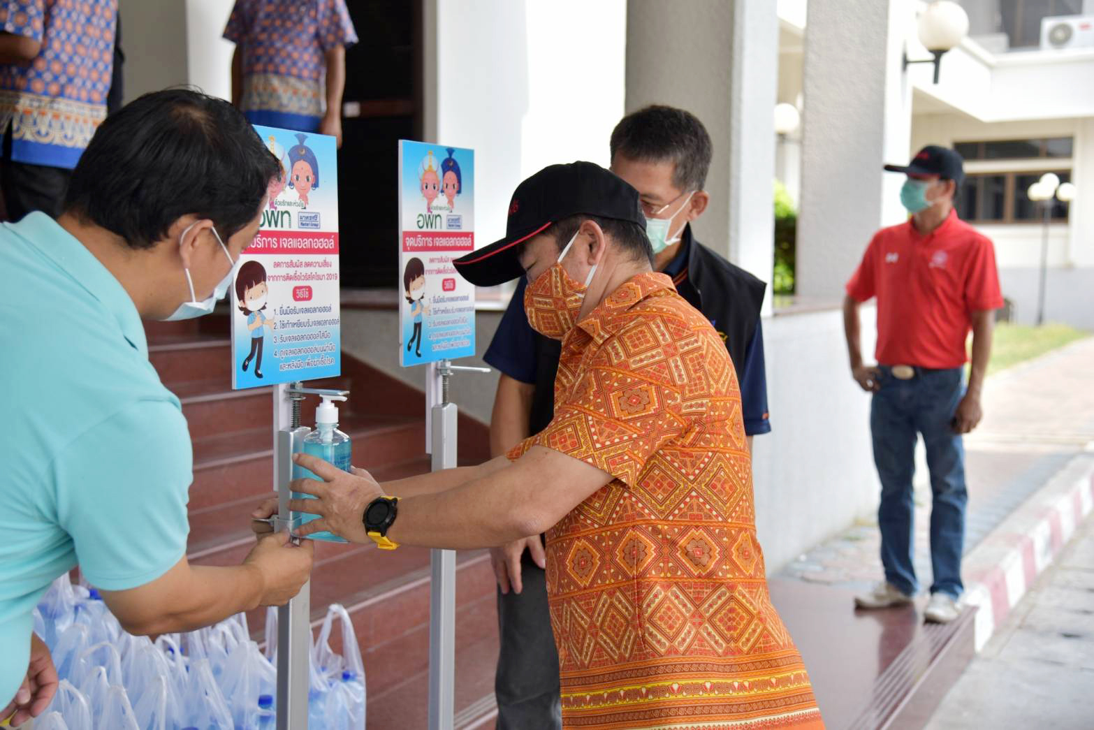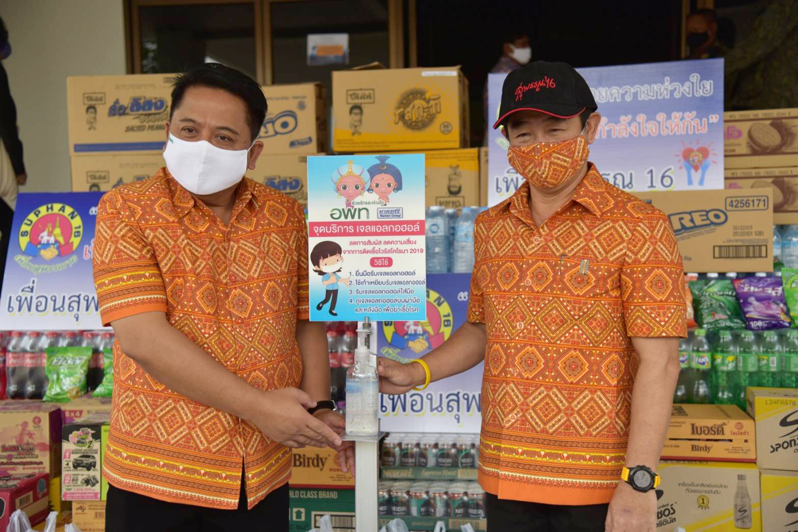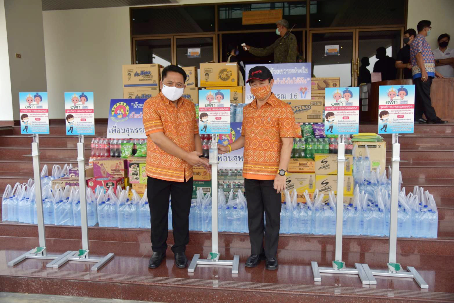 สุพรรณบุรี ผู้ว่าสุพรรณรับมอบเครื่องตรวจอุณหภูมิเจลล้างมือป้องกันโควิต 19