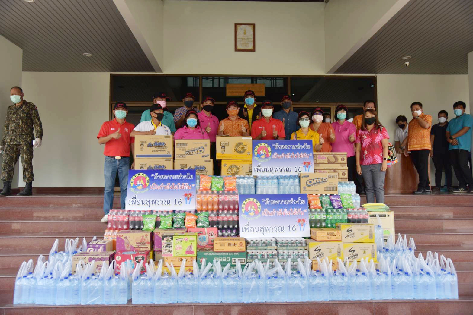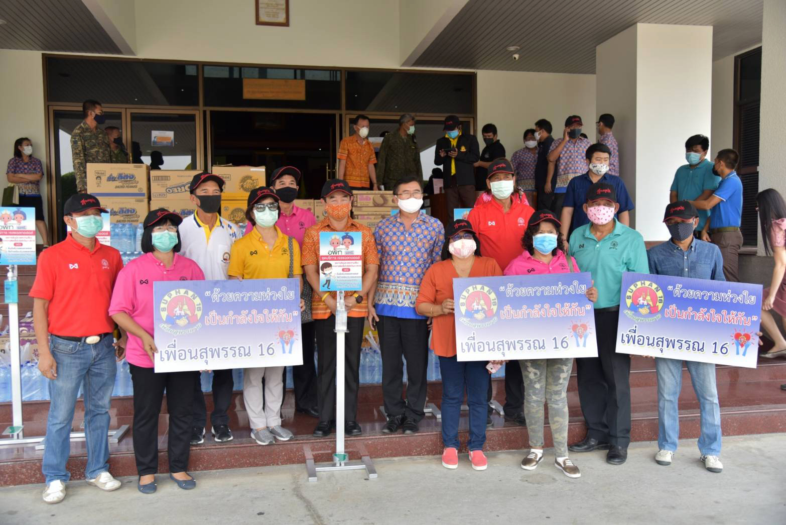 โดยมีนายนิมิต วันไชยธนวงศ์ ผู้ว่าราชการจังหวัดสุพรรณบุรี เพื่อนำไปมอบให้กับเจ้าหน้าที่ที่ปฏิบัติงานจุดตรวจคัดกรองโรคติดเชื้อไวรัสโค 19 ตามจุดต่างๆในพื้นที่จังหวัดสุพรรณบุรี และมีนายสมจินต์ ชาญกระบี่ ผู้จัดการ อพท.7 อำเภออู่ทอง จังหวัดสุพรรณบุรี และคณะมาตรศรีกรุ๊ป ได้นำเครื่องอุปกรณ์ พร้อมเจลน้ำยาล้างมือ มามอบให้กับจังหวัดสุพรรณบุรี เพื่อนำไปใช้ ป้องกันโรคไวรัสโคโรนา หรือ โควิต 19 อีกด้วย