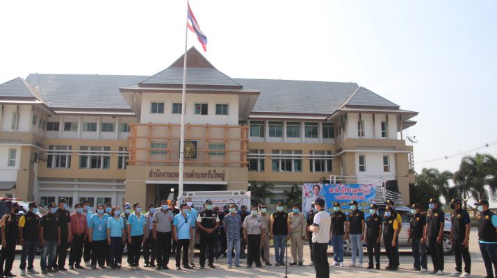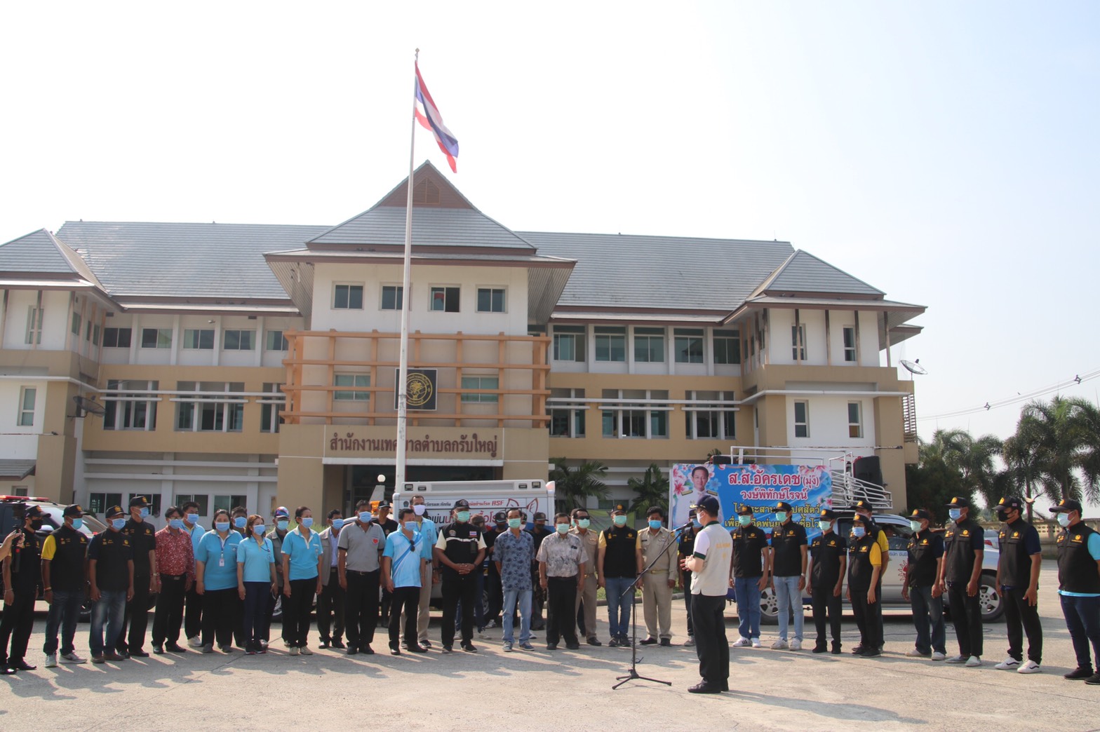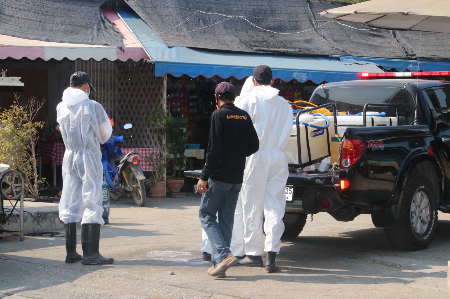 อำเภอบ้านโป่ง ผู้แทนราษฎรจ.ราชบุรี เขต 4 อำเภอบ้านโป่งรวมพลังกับเทศบาลตำบลกรับใหญ่และผู้ใหญ่บ้านพ่นยาฆ่าเชื้อไวรัส COVID-19 ที่ตลาดห้วยกระบอก