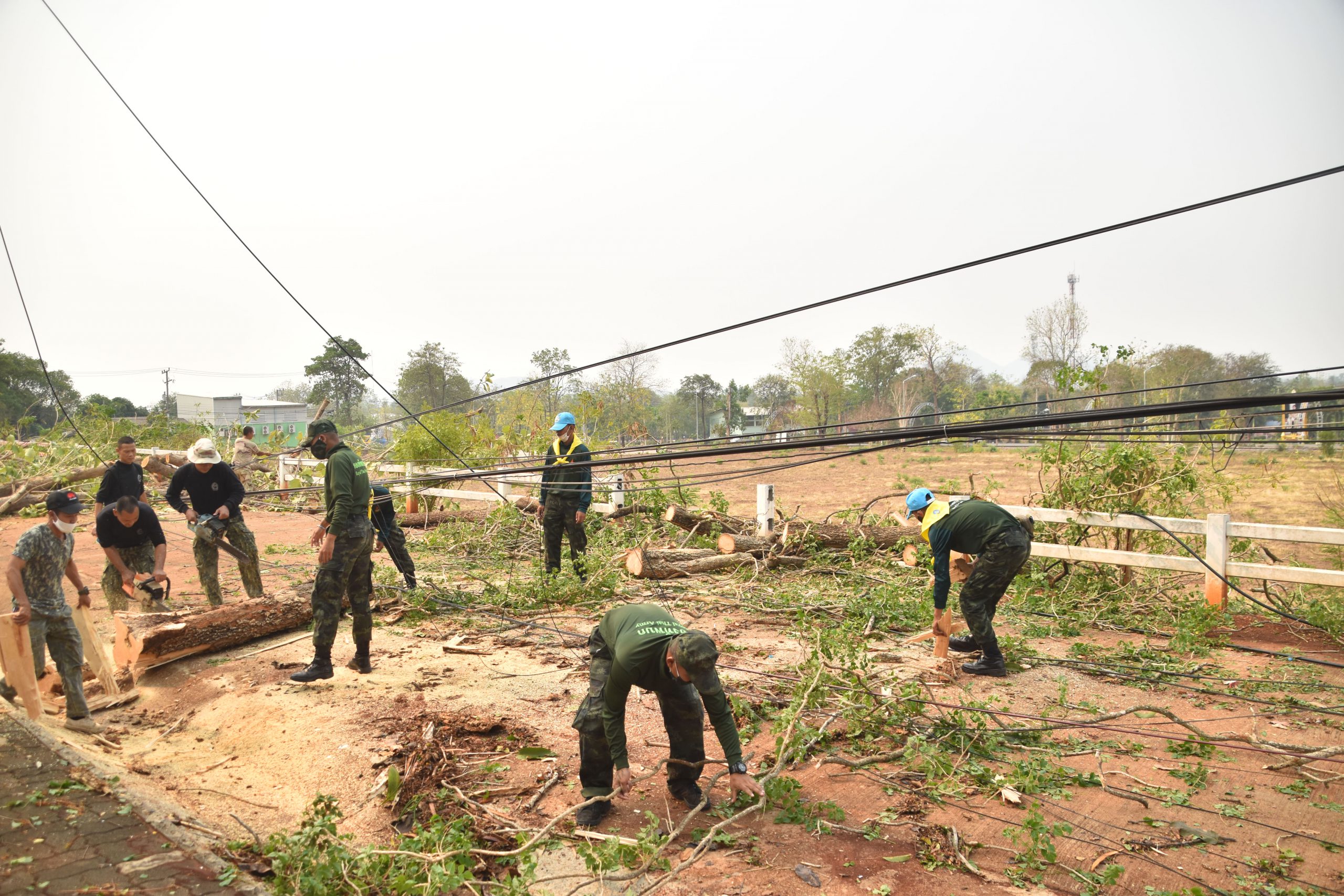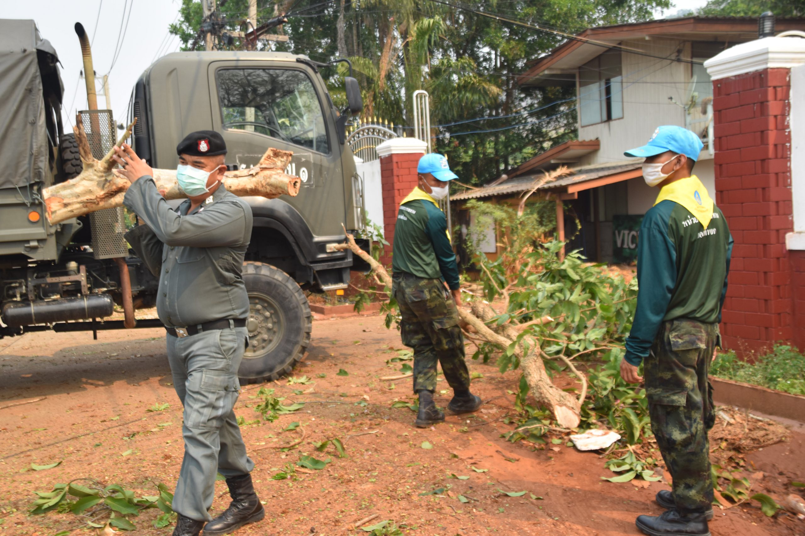 ต่อมา พลเอกฐกัด หลอดศิริ ผู้บัญชาการกองพลทหารราบที่ 9 ได้รับแจ้งจาก นายอำเภอไทรโยคว่ามีเหตุลมพัดบ้านเรือนประชาชนเสียหาย จึงได้สังการให้พ.ท.นพโรจน์ ชัยอัมราพัฒน์ ผู้บังคับการกองพันทหารราบที่ 1 กรมทหารราบที่ 29 ในฐานะผู้อำนวยการศูนย์บรรเทาสาธารณภัย กรมทหารราบที่ 29 พัน.1 จัดกำลังพล และจิตอาสาจำนวน 30 นาย เข้าเข้าช่วยเหลือในเบื้องต้น พร้อมทั้งมอบถุงยังชีพให้กับผู้ประสบวาตภัยในครั้งนี้ด้วย พ.ท.นพโรจน์ ชัยอัมราพัฒน์ กล่าวว่าในฐานะหน่วยงานรับผิดชอบโดยตรง ให้เร่งดำเนินการช่วยเหลือประชาชนที่ได้รับความเดือดร้อนในครั้งนี้ ต่อไป
