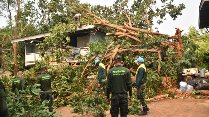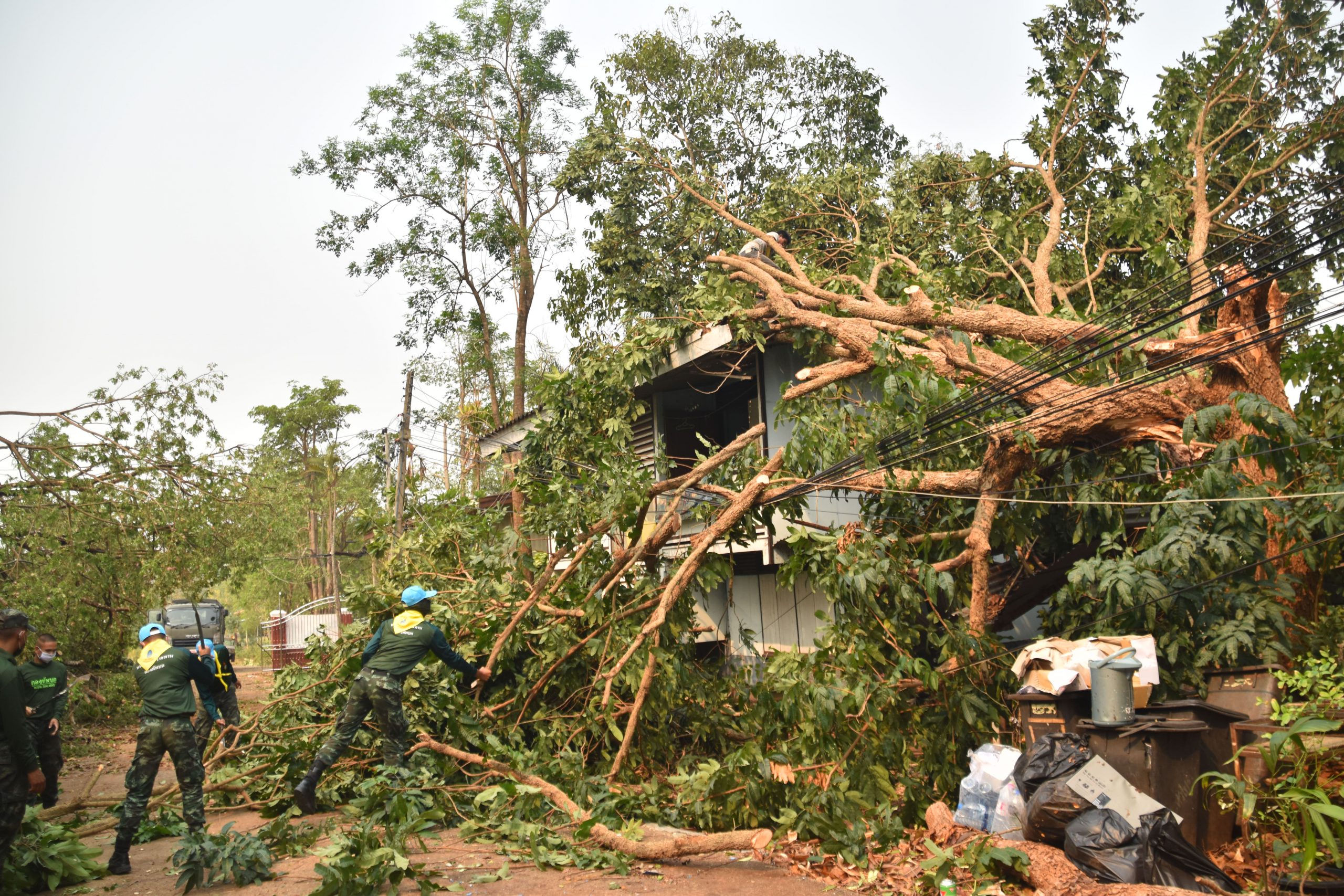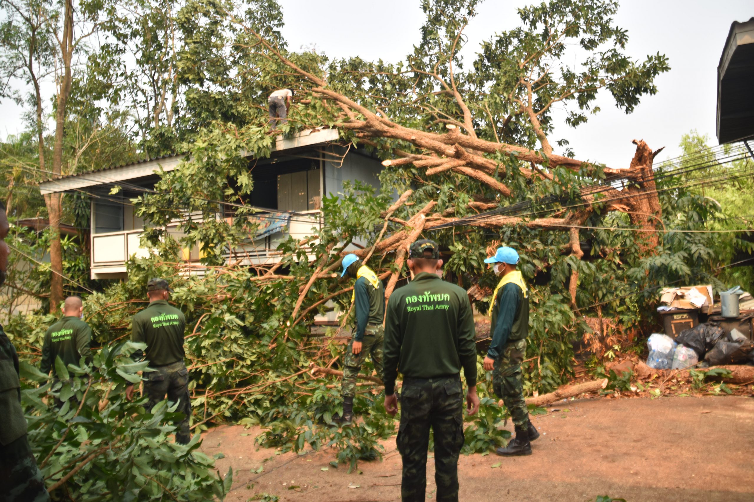กาญจนบุรี พายุฤดูร้อน พัดบ้านเรือนประชาชน บ้านพักนายอำเภอ โรงเรียนเสียหายเป็นจำนวนมาก ทหารเร่งช่วย