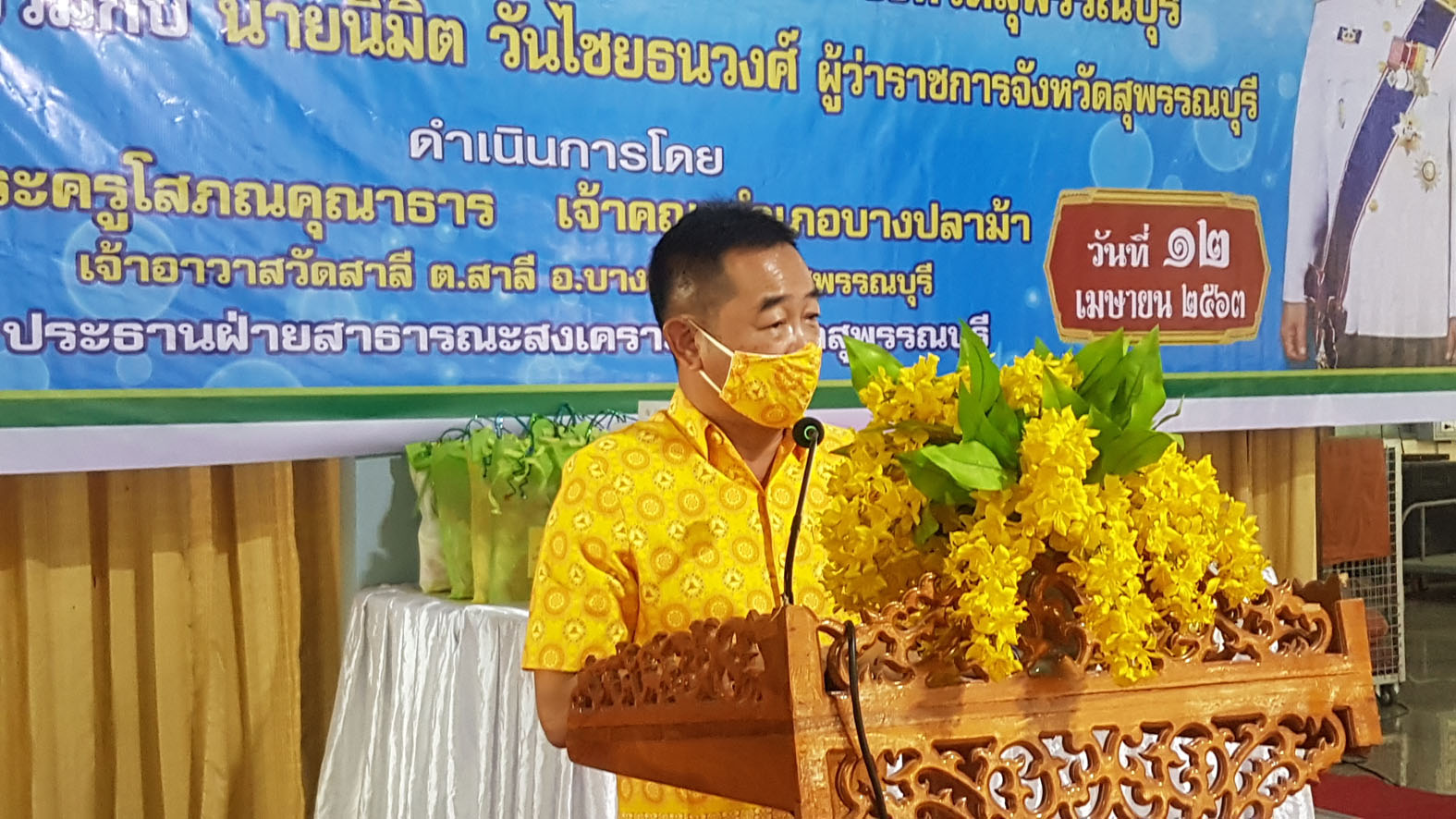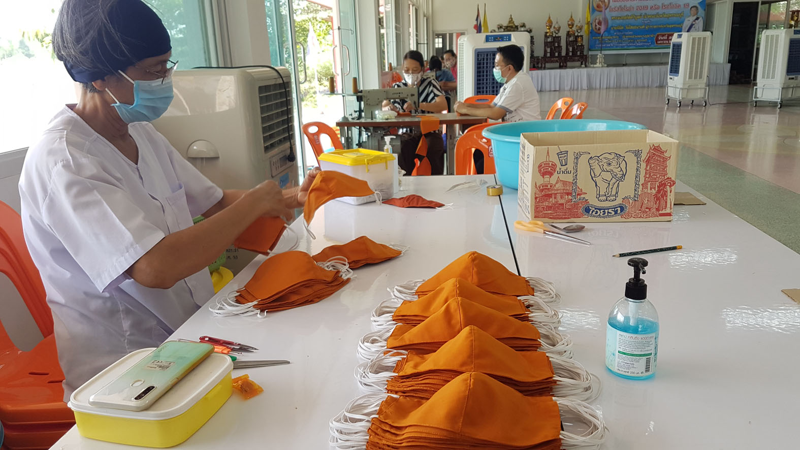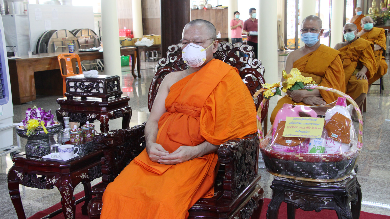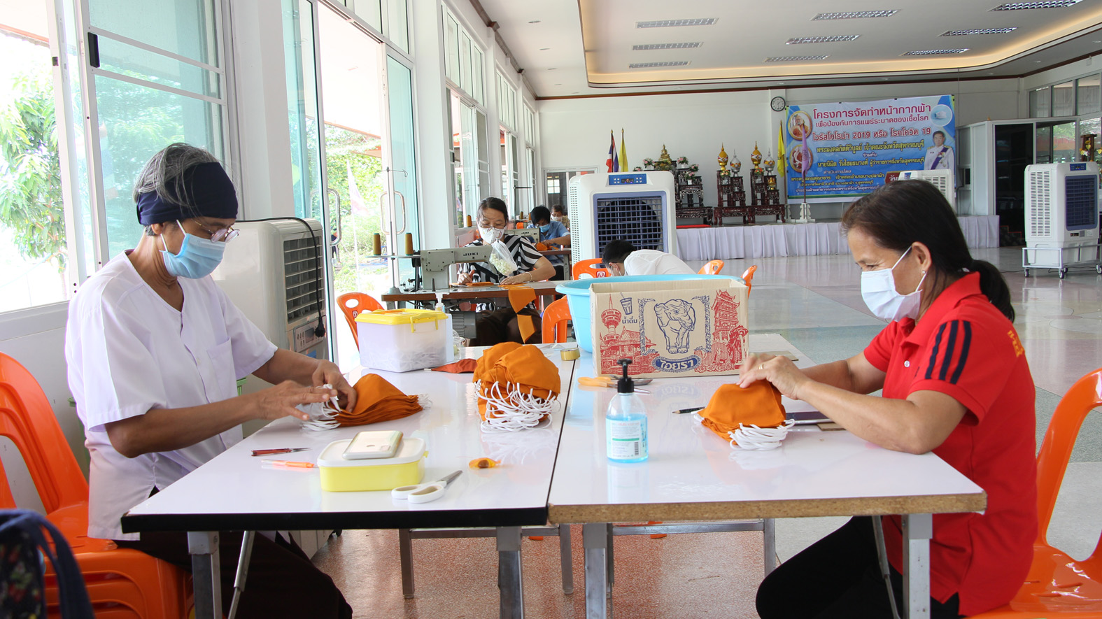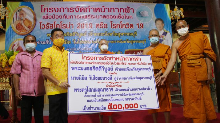 สุพรรณบุรี วัดสาลีแจกหน้ากากผ้าให้พระสงฆ์ชาวบ้านป้องกันไวรัสโควิด19