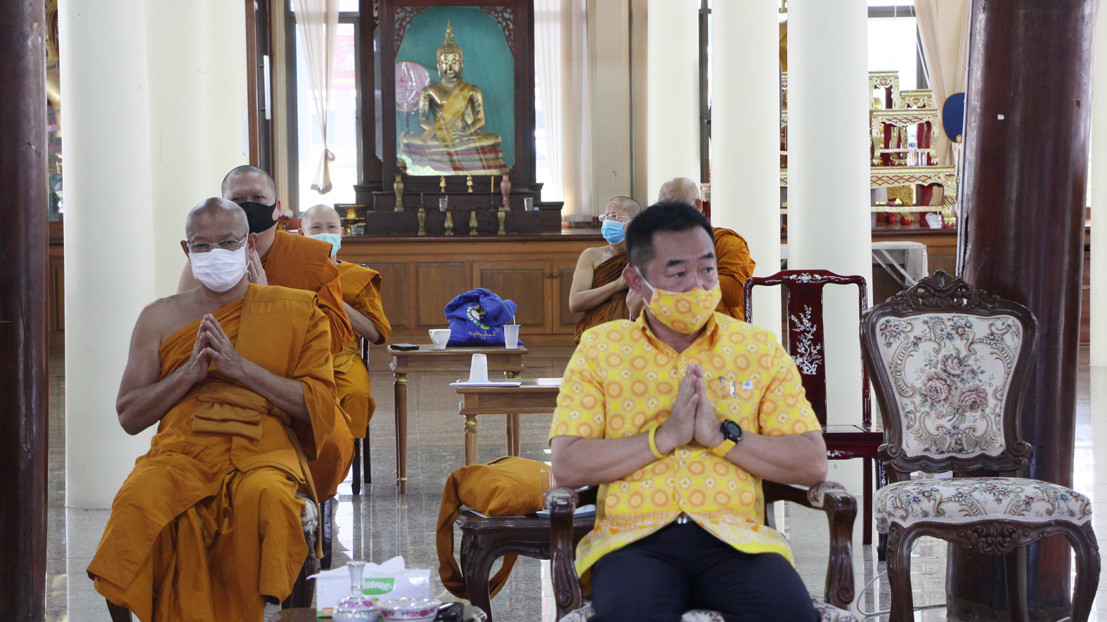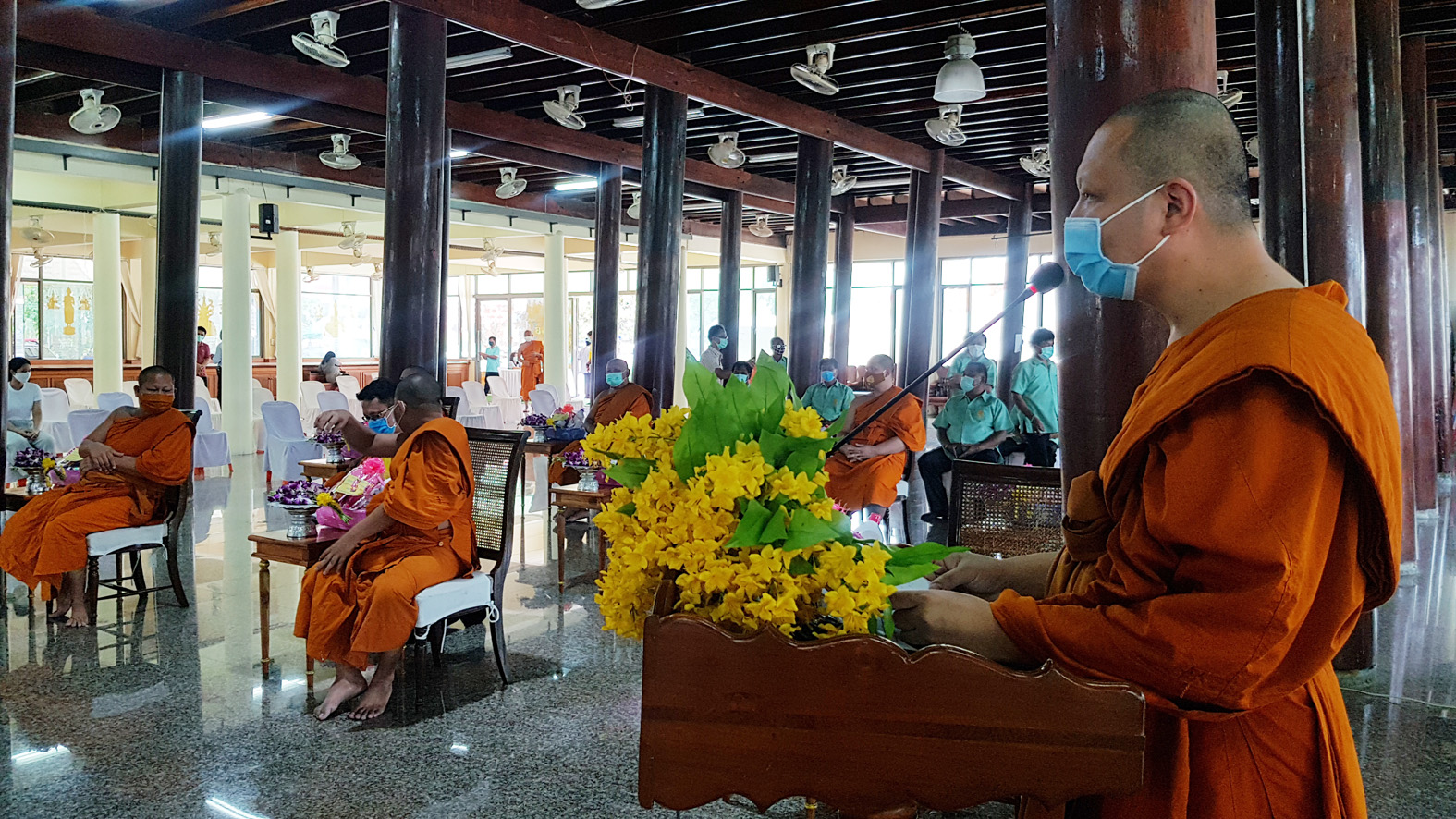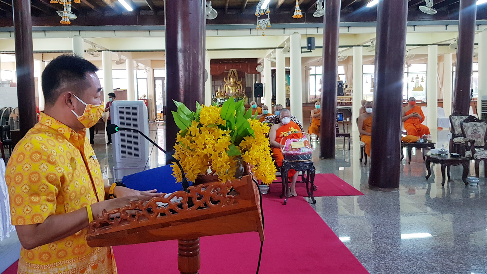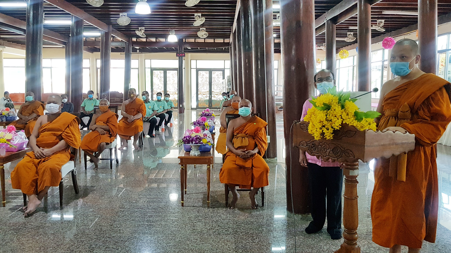 สุพรรณบุรี วัดสาลีแจกหน้ากากผ้าให้พระสงฆ์ชาวบ้านป้องกันไวรัสโควิด19