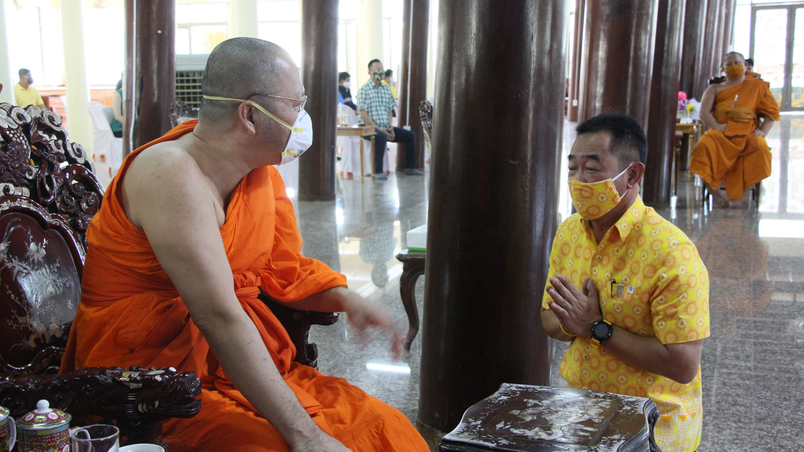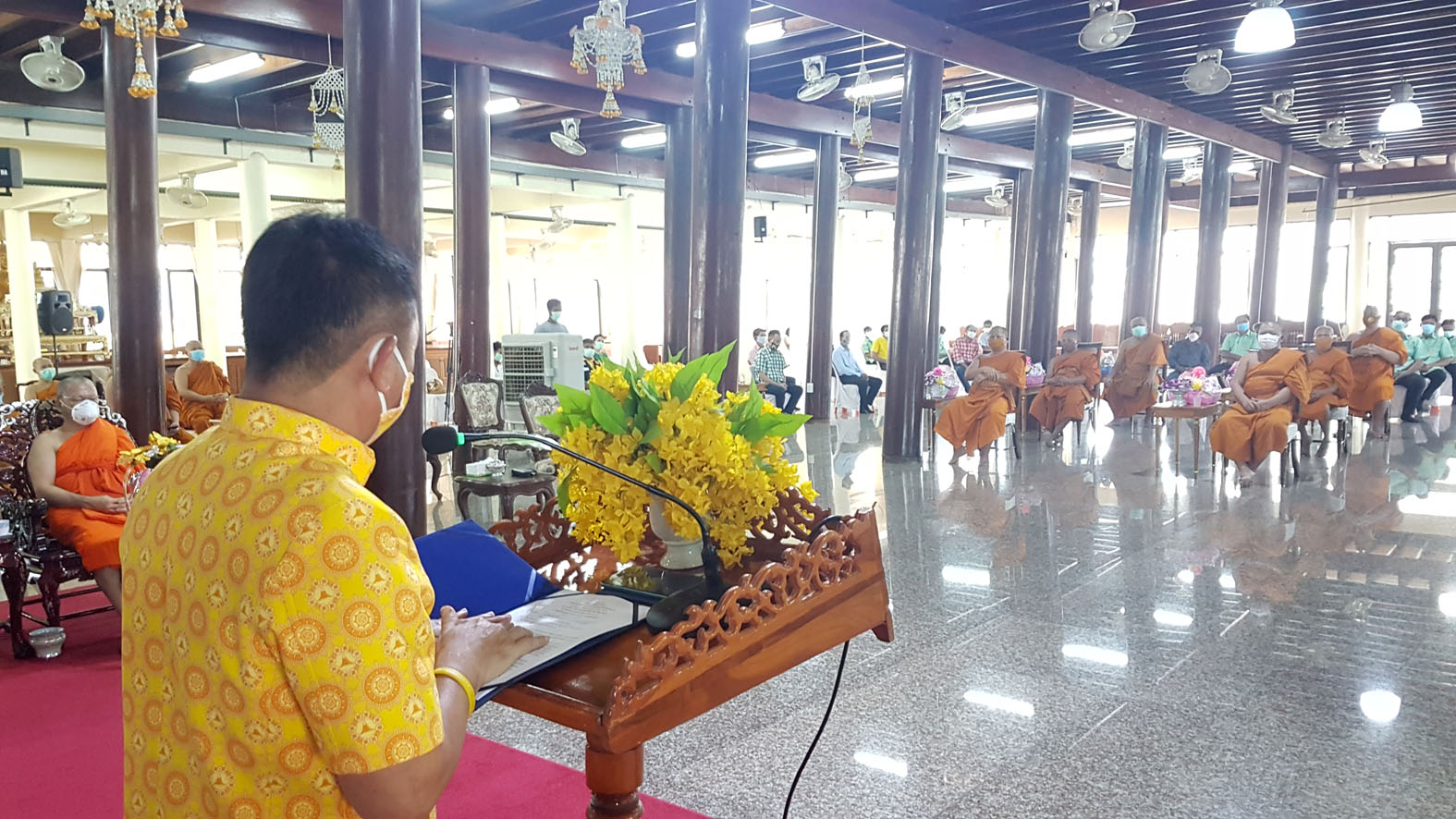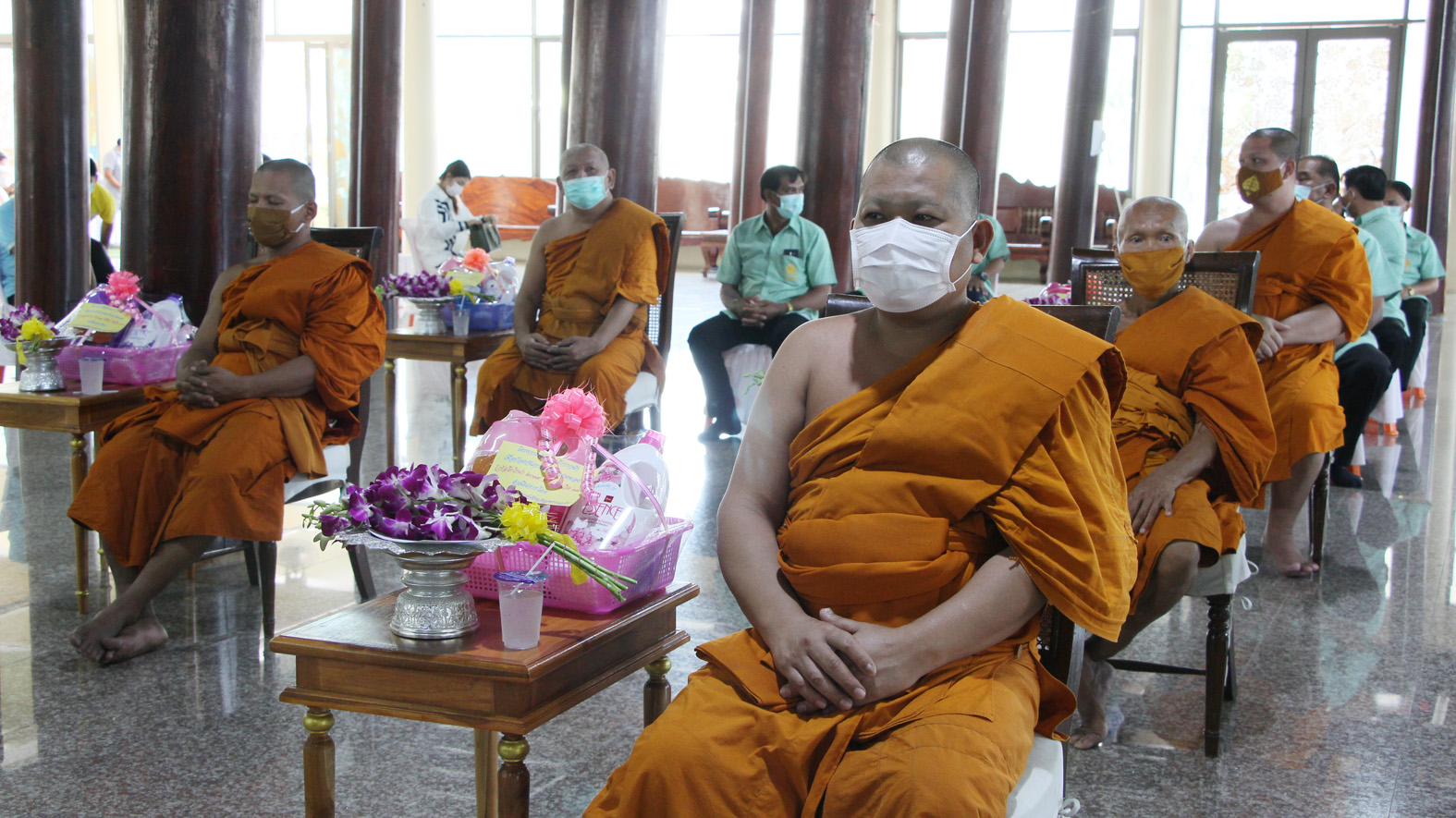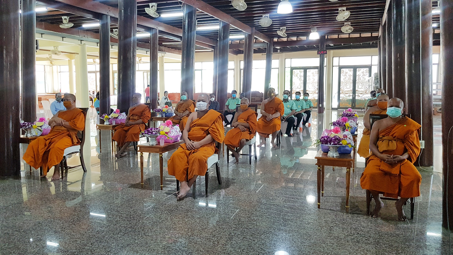 สุพรรณบุรี วัดสาลีแจกหน้ากากผ้าให้พระสงฆ์ชาวบ้านป้องกันไวรัสโควิด19
