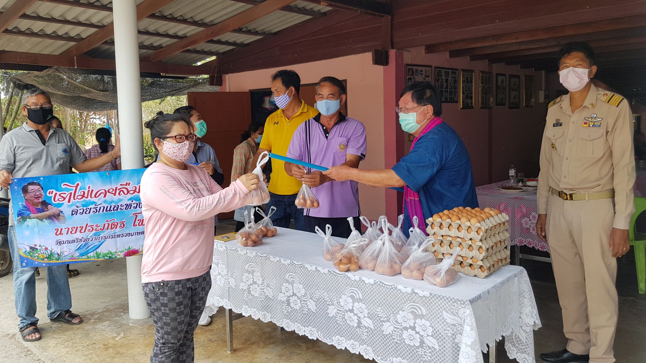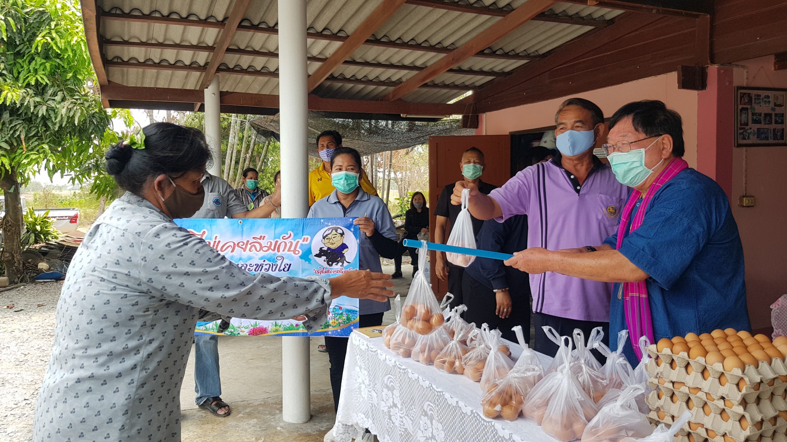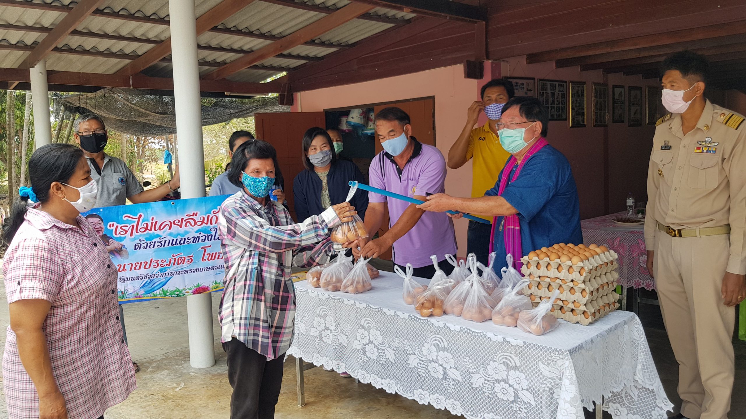 สุพรรณบุรี ชาวบ้านแห่รับแจกไข่สู้ภัยโควิด 19