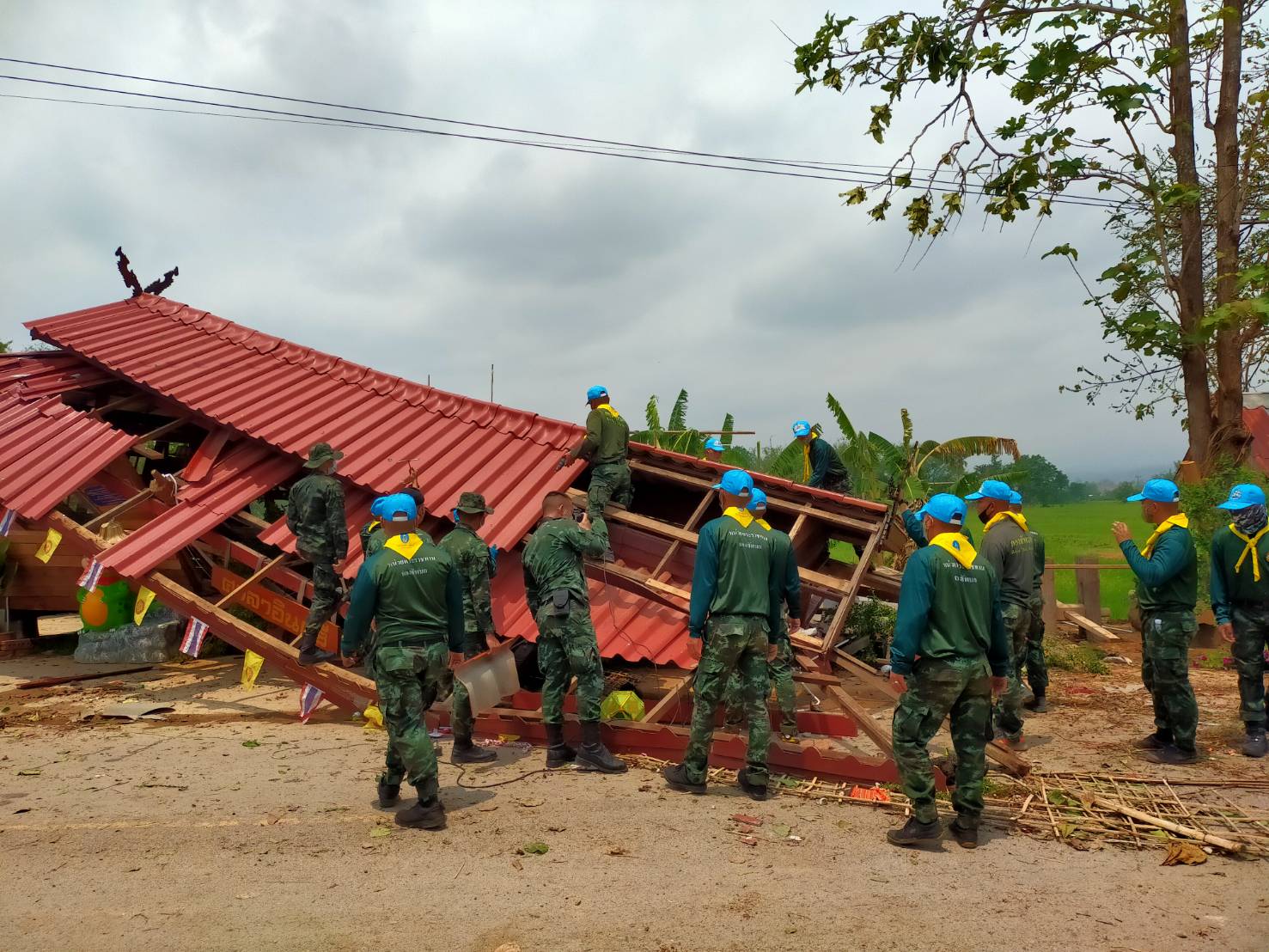 พายุฤดูร้อนถล่มเชียงรายเสียหาย 9 อำเภอ ผจว.รุดเยี่ยมขวัญกำลังใจ ฝ่านทหารส่งกองร้อยช่วยเหลือประชาชน ออกซ่อมแซมบ้านเรือน