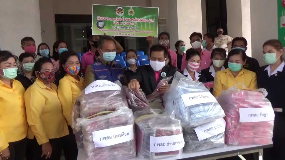 ที่ศาลากลางจังหวัดตรัง หน่วยงานภาครัฐและภาคเอกชน เดินทางมามอบเจลล้างมือ หน้ากากอนามัย เพื่อนำไปแจกจ่ายให้กับประชาชนและเจ้าหน้าที่ เนื่องจากหน้ากากอนามัยและเจลล้างมือยังไม่เพียงพอต่อความต้องของประชาชน ในขณะที่ยอดตัวเลขผู้ป่วยนั้นขณะนี้ยังไม่มีผู้ติดโควิด-19 เพิ่มขึ้น ยังอยู่ที่ 7 ราย ใน 7 รายนี้กลับบ้านไป 5 รายแล้ว ก็เหลืออีก 2 ราย