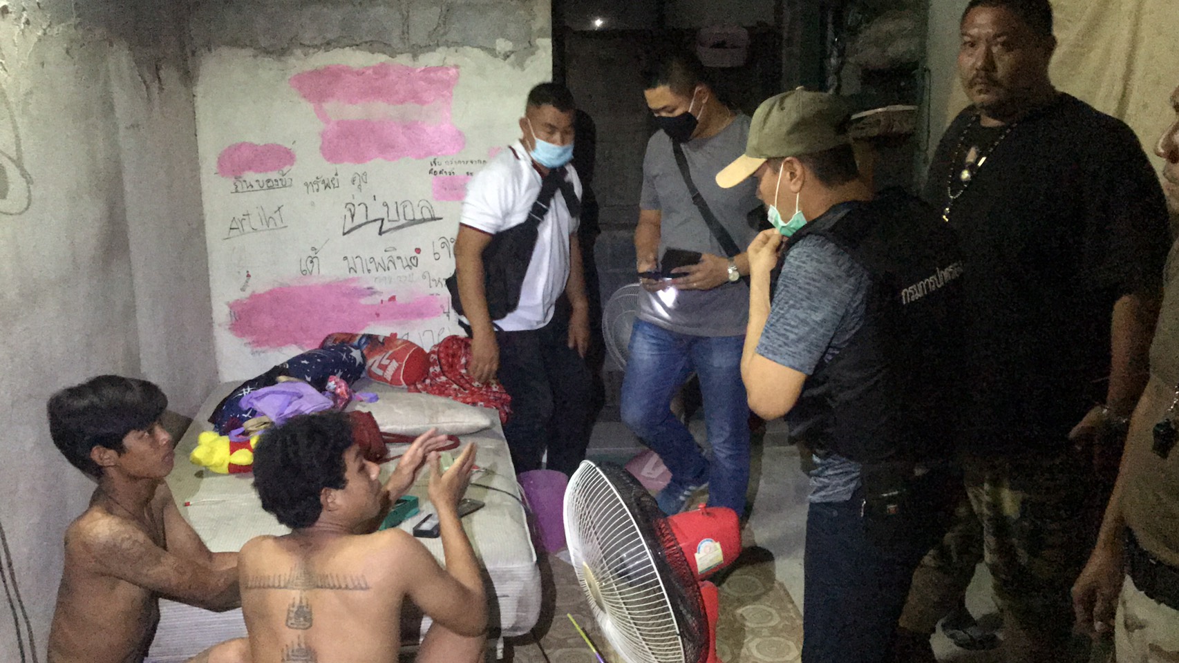 โดยบ้านหลังดังกล่าวเป็นบ้านปูนชั้นเดียวแบ่งเป็น 5 ห้อง จากการตรวจสอบภายในห้องพักห้องที่3 พบนายประสาร นันทสูรย์ อายุ 37 ปี บ้านเลขที่ 179/4 หมู่ 3 ต.สวนใหญ่ อ.เมืองนนทบุรี กำลังนอนดูทีวีอยู่ในห้อง เจ้าหน้าที่จึงเเสดงตัวเข้าตรวจค้น จากการตรวจค้นพบอาวุธปืนไทยประดิษฐ์ขนาด .380 จำนวน 1 กระบอก กระสุนปืนขนาด .380 จำนวน 10 นัด ซุกซ่อนอยู่ในถุงผ้าสีขาว วางอยู่ที่ปลายเตียง นอกจากนี้ยังพบปืนยาวอัดแก๊ส ความยาวประมาณ 20 ซม.จำนวน 1 กระบอก และอุปกรณ์ในการเสพยาไอซ์อีกจำนวนหนึ่ง จึงยึดไว้เป็นของกลาง หลังจากนั้นได้ทำการตรวจค้นห้องพักเลขที่1 โดยมีนายนุตชา ยี่ภู่ อายุ 18 ปี บ้านเลขที่ 170/21 หมู่ที่ 5 ต.เสาธงหิน อ.บางใหญ่ จ.นนทบุรี และนายวรวุฒิ (สงวนนามสกุล) อายุ 17 ปี บ้านเลขที่ 37/4 หมู่ที่ 4 ต.บางเเม่นาง อ.บางใหญ่ จ.นนทบุรี กำลังนั่งเสพยาอยู่ในห้องดังกล่าว จากการตรวจค้นพบกัญชาอัดแท่งบรรจุอยู่ในถุงพลาสติกใสจำนวน 6 ซอง น้ำหนัก 15.83 กรัม ยาไอซ์บรรจุอยู่ในถุงซิปน้ำหนัก 0.13 กรัม ซุกซ่อนอยู่ในตู้ไม้ชั้นบน จึงยึดไว้เป็นของกลาง อีกทั้งยังพบรถ จยย.ต้องสงสัย ยี่ห้อยามาฮ่า รุ่นPCX สีขาว ทะเบียน ขงล 132 ศรีสะเกษ ซึ่งเป็นของนายประสาร จึงยึดไว้ตรวจสอบ