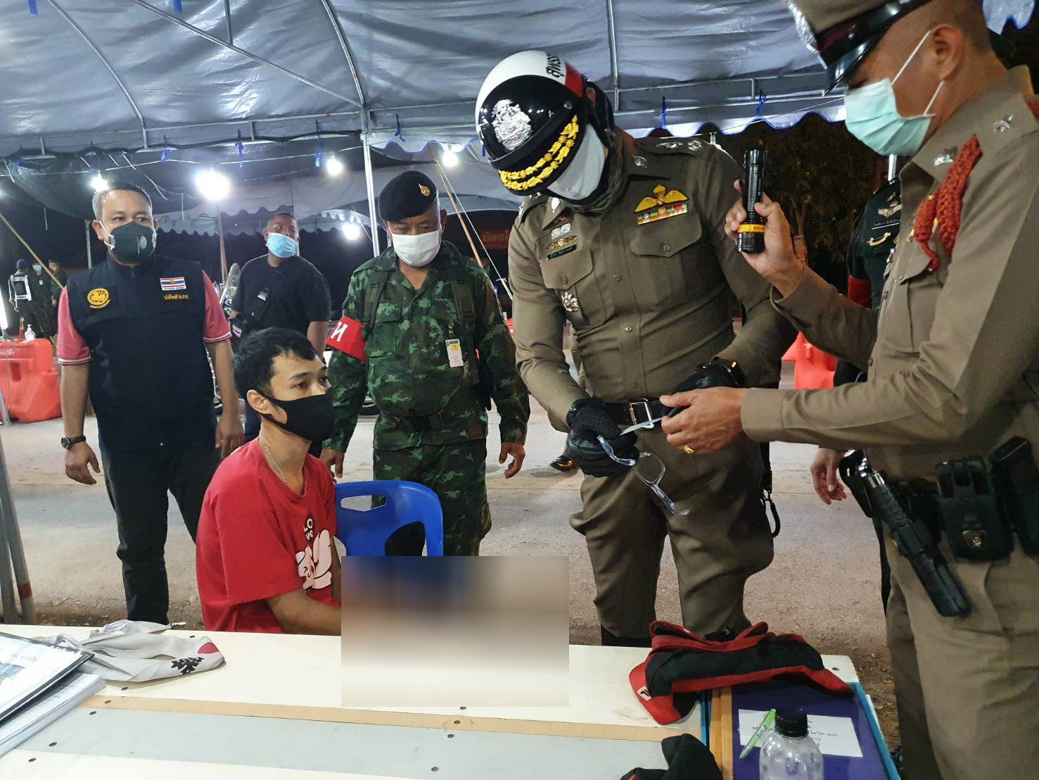 ทางด้าน พล.ต.ต.นิธิธร จินตกานนท์ ผู้บังคับการตำรวจภูธรจังหวัดสุพรรณบุรี ว่าเมื่อเวลาประมาณ 23.45 น.วันที่ 14 เมษายน ที่ผ่านมาขณะที่ตนได้นำกำลังออกตรวจความเรียบร้อยด่านตรวจตามนโยบายของ ผู้บัญชาการตำรวจแห่งชาติและนโยบายของผู้บัญชาการตำรวจภูธรภาค 7 ได้รับรายงานว่าที่ด่านตรวจเส้นทางโพธิ์พระยา-ท่าเรือ ต.ดอนมะสังข์ ซึ่งเจ้าหน้าที่ฝ่ายปกครอง ทหารตำรวจ กำนันผู้ใหญ่บ้าน เจ้าหน้าที่สาธารณสุข ร่วมกันปฏิบัติหน้าที่อยู่พบรถยนต์เก๋งตองสงสัยยี่ห้อฮอนด้าสีน้ำเงินขับมา จอดดับไฟหน้าห่างด่านตรวจประมาณ 200 เมตร จึงเข้าร่วมตรวจสอบพบเจ้าหน้าที่กำลังสอบถามคนขับซึ่งเป็นชายทราบชื่อต่อมาคือนายชลวิทย์ คงอ่อน อายุ 30 ปีบ้านอยู่ ต.ยี่ล้น อ.วิเศษชัยชาญ จ.อ่างทอง เมื่อเห็นเจ้าหน้าที่คนขับได้แสดงอาอาการมีพิรุธเจ้าหน้าที่จึงให้ขับรถเข้ามาที่ด่านตรวจเพื่อทำการตรวจค้น