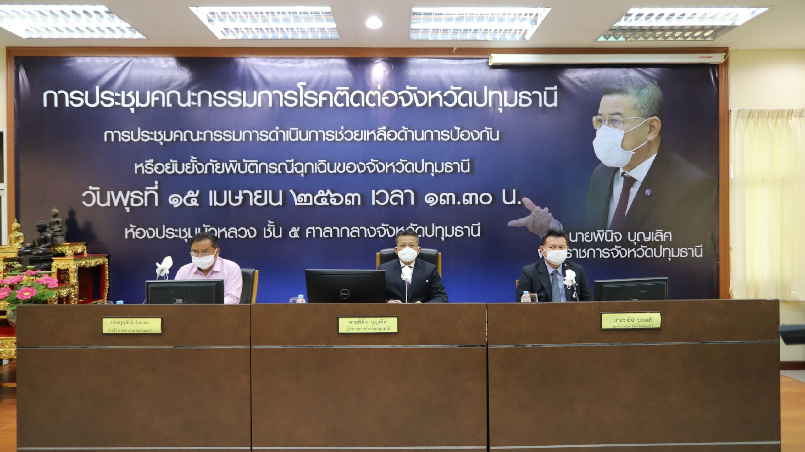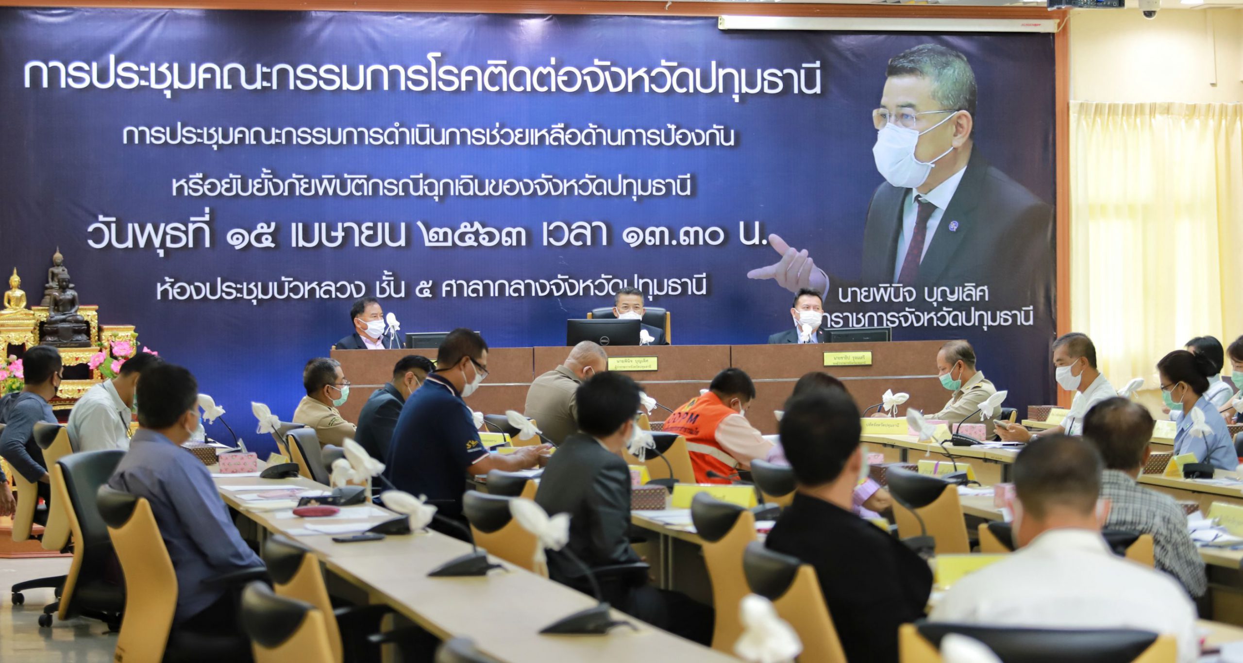 เมื่อเวลา 13.30 น.วันที่ 15 เม.ย.2563 ที่ ห้องประชุมบัวหลวง ศาลากลางจังหวัดปทุมธานี ดร.พินิจ บุญเลิศ ผู้ว่าราชการจังหวัดปทุมธานี เป็นประธานการประชุมคณะกรรมการโรคติดต่อจังหวัดปทุมธานี ครั้งที่ 7/2563 และประชุมคณะกรรมการดำเนินการให้ความช่วยเหลือด้านการป้องกันหรือยับยั้งภัยพิบัติกรณีฉุกเฉินของ จังหวัดปทุมธานี กรณีภัยจากโรคระบาดจากเชื้อไวรัสโคโรนา 2019 (COVID -19) ร่วมกับคณะกรรมการโรคติดต่อจังหวัดปทุมธานี ครั้งที่ 2/2563
