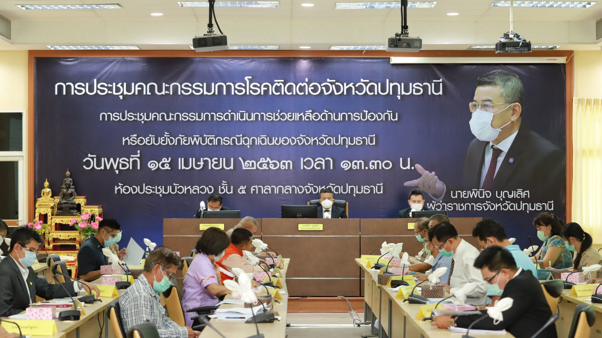 โดยมี นายชาธิป รุจนเสรี รองผู้ว่าราชการจังหวัดปทุมธานี นายจรูญศักดิ์ สิงหเดช รองผู้ว่าราชการจังหวัดปทุมธานี พล.ต.ต.ชยุต มารยาทตร์ ผู้บังคับการตำรวจภูธรจังหวัดปทุมธานี นายสิทธิชัย สวัสดิ์แสน ปลัดจังหวัดปทุมธานี นายแพทย์สุรินทร์ สืบซึ้ง นายแพทย์สาธารณสุขจังหวัดปทุมธานี นายสาคร อำภิน รองนายกองค์การบริหารส่วนจังหวัดปทุมธานี นายธีรวุฒิ กลิ่นกุสุม นายกเทศมนตรีนครรังสิตคณะกรรมการโรคติดต่อจังหวัดปทุมธานีเข้าร่วมประชุม