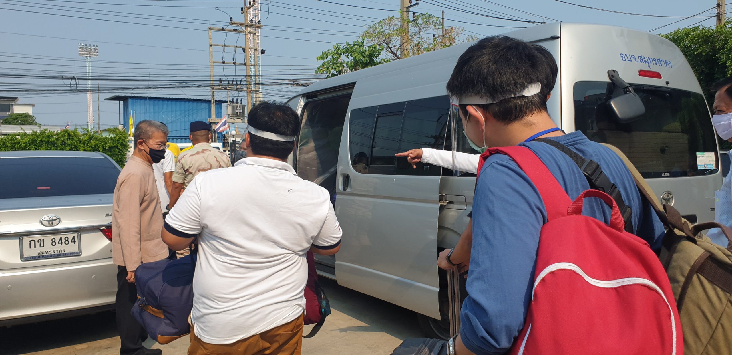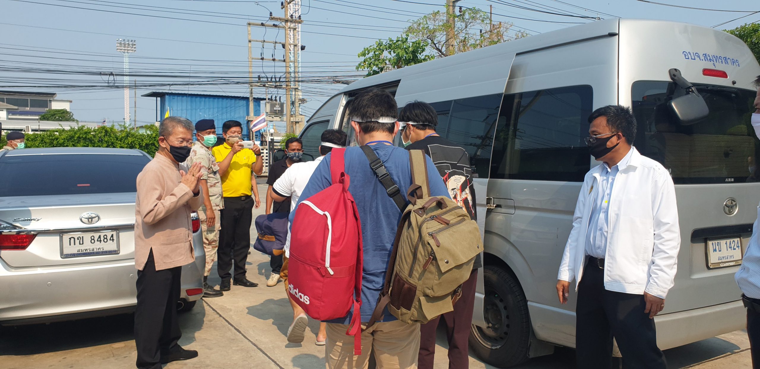 ซึ่งผู้ว่าราชการจังหวัดสมุทรสาคร นอกจากจะกล่าวแสดงความยินดีกับทุกคนแล้ว ยังได้มอบหน้ากากผ้าพร้อมกับเจลแอลกฮอล์ เป็นขวัญกำลังใจให้กับทุกคน ก่อนที่จะให้รถตู้พาทุกคนไปส่งถึงบ้านถึงครอบครัวที่รออยู่