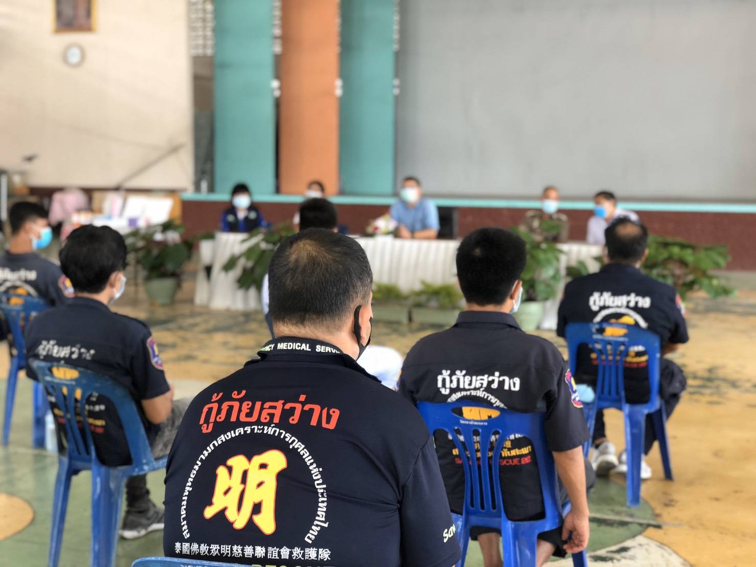 พร้อมมอบหนังสือรับรอง สิ่งของ และขอบคุณเจ้าหน้าที่อาสามูลนิธิสว่างรุ่งเรืองธรรมสถานทับสะแก และเจ้าหน้าที่โรงพยาบาลทับสะแก จำนวน 17 ราย ที่ได้ผ่านการกักตัวเองเพื่อเฝ้าสังเกตอาการจากกรณีที่ได้เข้าให้ความช่วยเหลือกรณีที่มีผู้เจ็บป่วยแล้วเสียชีวิตบนรถไฟเมื่อวันที่ 30 มีนาคม 2563 ที่ผ่านมา