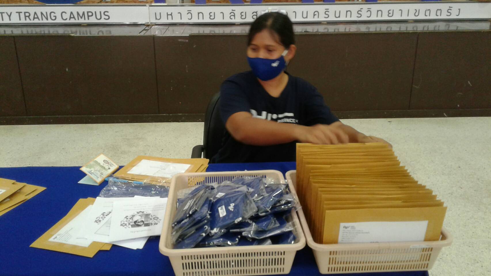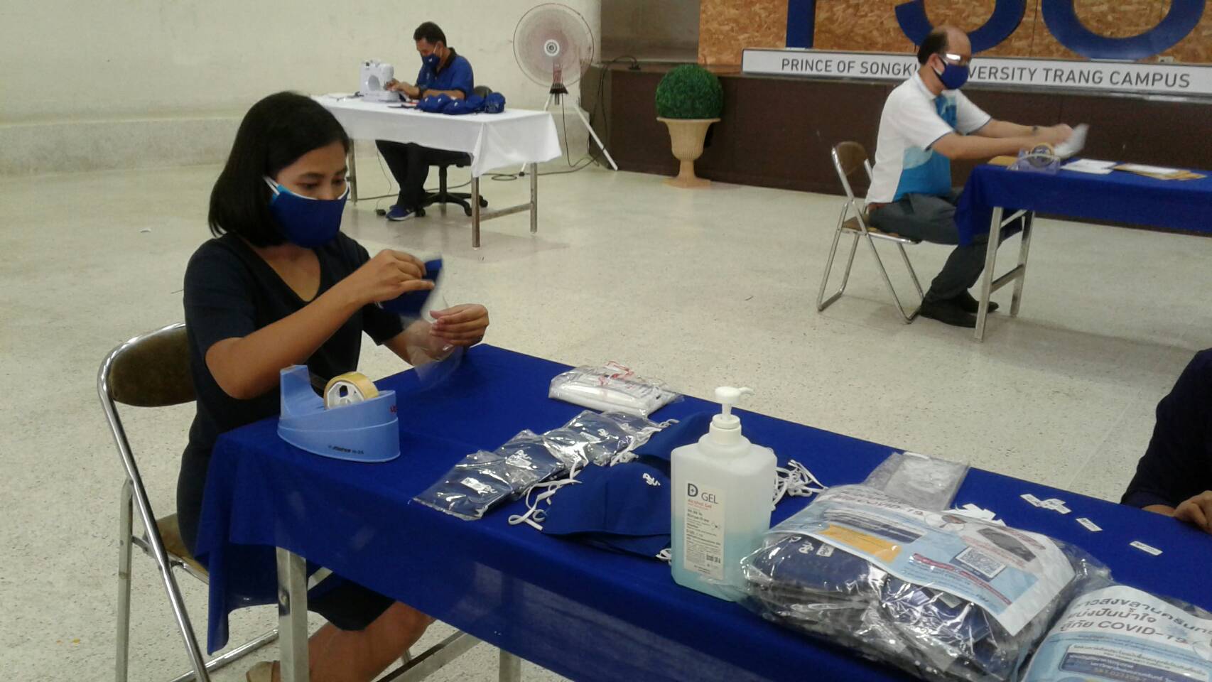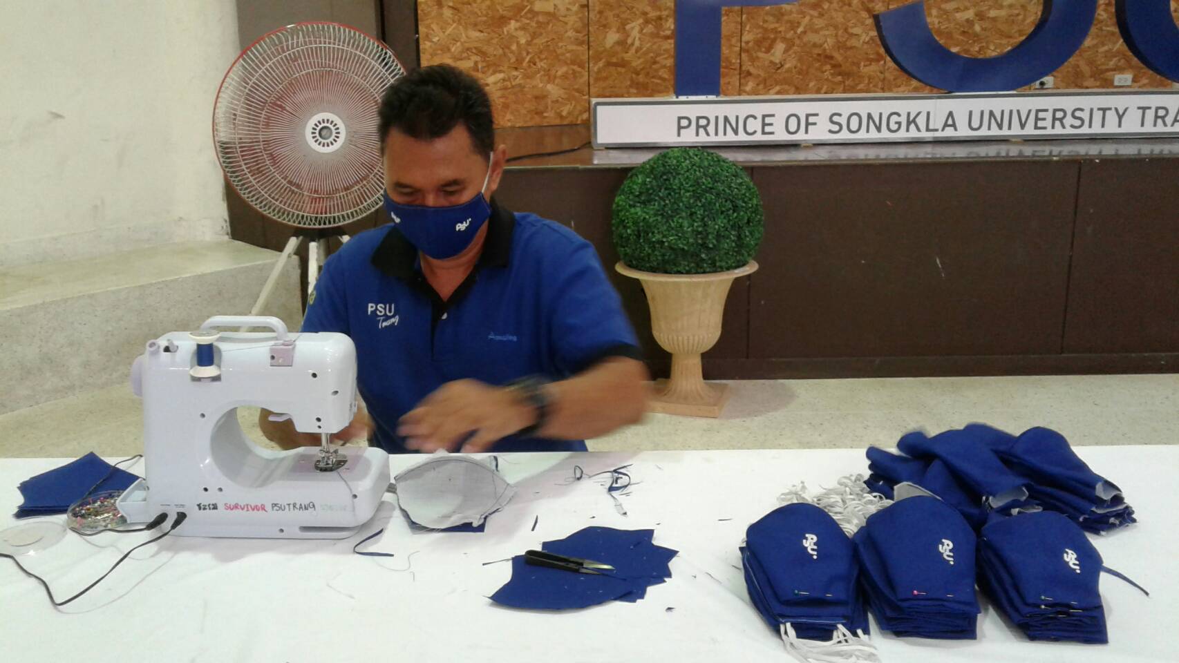 ที่มหาวิทยาลัยสงขลานครินทร์ วิทยาเขตตรัง อ.เมือง จ.ตรัง เหล่าคณะอาจารย์และบุคลากรของมหาวิทยาลัยระดมกำลังกันช่วยผลิตหน้ากากผ้าอนามัยและเฟสชิว สำหรับบุคลากรทางการแพทย์และประชาชน ซึ่งทาง มอ.ตรังจัดโครงการ PSU.Trang Anti-COVID-19 ระดมทุนรับบริจาคเงินในการนำมาผลิตหน้ากากอนามัยและเฟสชิว ส่งตามหน่วยงานต่าง ๆ ที่ยังขาดแคลนตามความประสงค์ของผู้บริจาคเงินที่แจ้งความจำนงมา ทุกการบริจาค 100 บาท สมนาคุณหน้ากากผ้าตราสัญลักษณ์ PSU จำนวน 1 ชิ้น ซึ่งตั้งแต่เริ่มโครงการได้ทำการผลิตและส่งมอบหน้ากากอนามัยไปแล้วกว่า 1,485 ชิ้น พร้อม เฟสชิว 150 ชิ้น ตามพื้นที่ต่าง ๆ ทั่วประเทศ