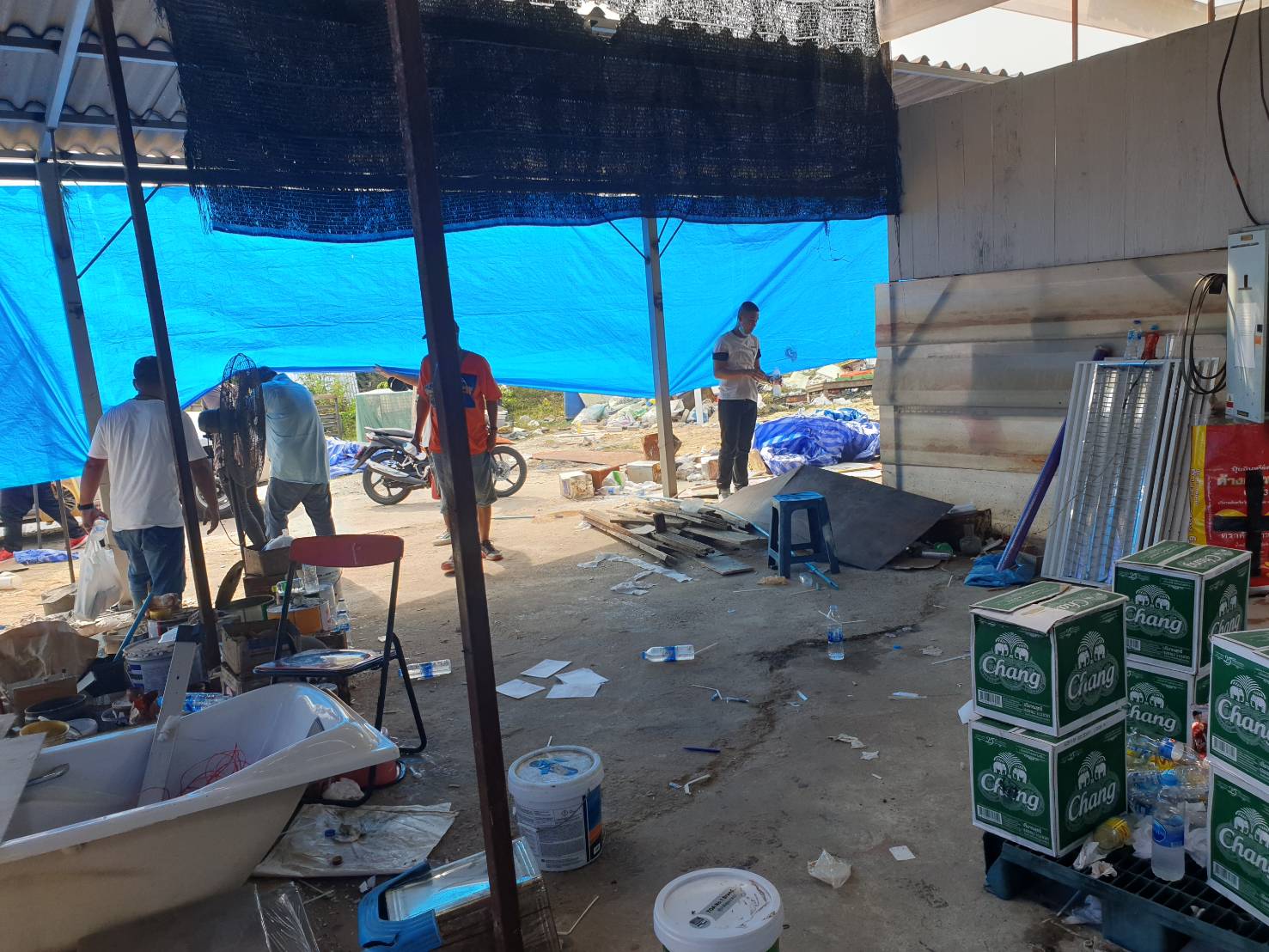 สำหรับการเข้าจับกุมผู้ลักลอบเล่นการพนัน (กำถั่ว) ทั้งหมดนั้น สืบเนื่องจากก่อนเกิดเหตุ เจ้าหน้าที่ตำรวจชุดสืบสวนได้รับแจ้งจากสายลับว่า บริเวณภายในโกงดังรับซื้อของเก่า มีการลักลอบเล่นการพนันกัน ทางเจ้าหน้าที่ตำรวจชุดสืบสวน สภ.กระทุ่มแบน จึงได้รายงานให้ผู้บังคับบัญชาทราบแล้ววางแผนเข้าจับกุม โดยพบว่ามีนักพนันจำนวนมากทั้งยืนและนั่งจับกลุ่มกันอยู่ภายในโกดังที่เกิดเหตุ ลักษณะชุมนุมมั่วสุมอันเป็นการฝ่าฝืนข้อกำหนดตามประกาศสถานการณ์ฉุกเฉิน เจ้าหน้าที่จึงได้เข้าไปแสดงตน ทำให้นักพนันจำนวนหลายคนที่กำลังลักลอบเล่นการพนัน(กำถั่ว) อยู่ พยายามวิ่งหลบหนี แต่ก็ถูกเจ้าตำรวจไล่ตามจับกุมตัวไว้ได้ทั้งหมดรวม 27 คน พร้อมของกลางหลายรายการ