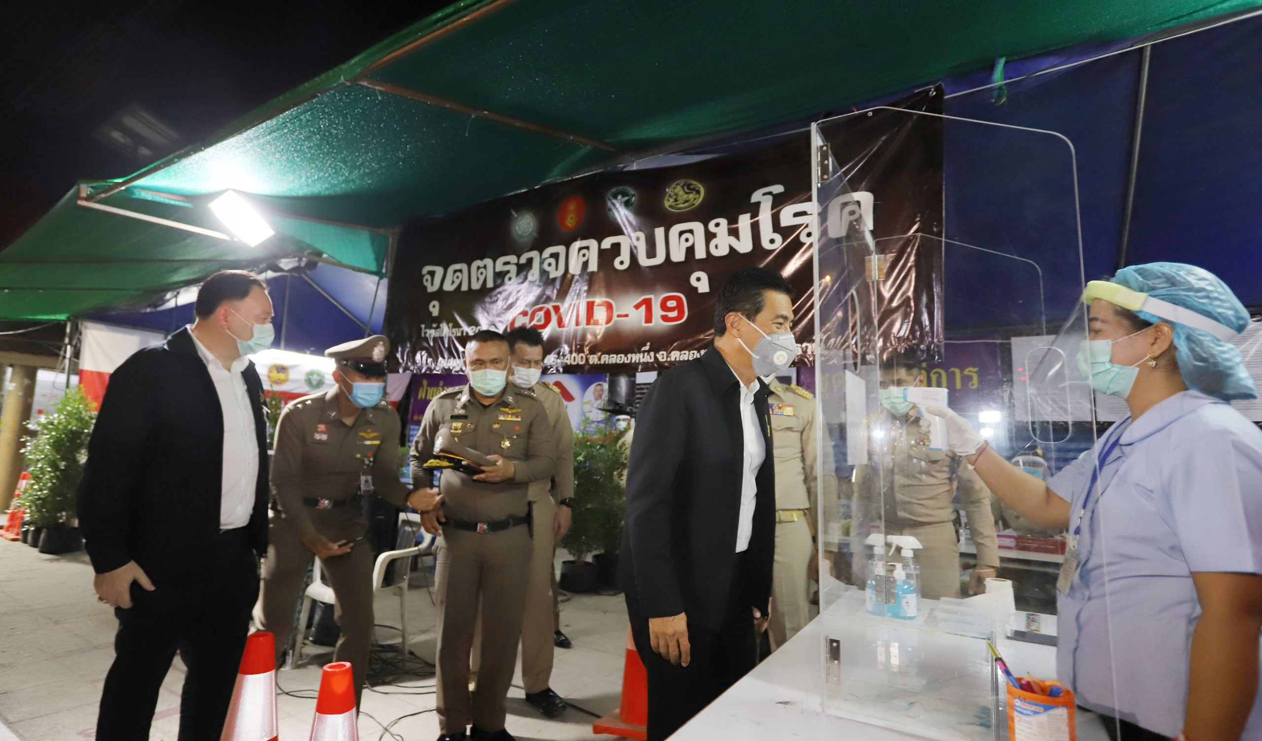 เทวัญลงพื้นที่ตรวจเยี่ยมด่านเคอร์ฟิวนวนคร คลองหลวง ชื่นชมยกเป็นด่านตัวอย่างสกัดโควิด-19