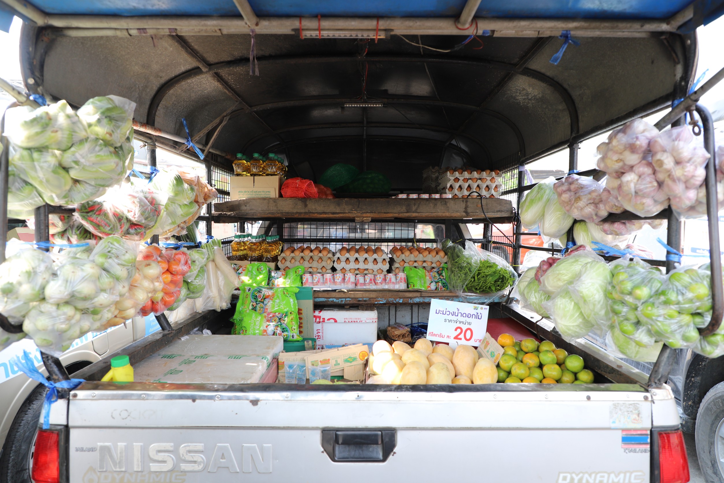 สำหรับการปล่อยรถคาราวาน “รถเร่ธงฟ้า ฝ่าภัยโควิค-19” รถที่จะนำสินค้าอุปโภคบริโภคสำคัญๆ เช่น ไข่ไก่เบอร์ 3 บะหมี่กึ่งสำเร็จรูป น้ำมันปาล์ม เจลล้างมือ ปลากระป๋อง ข้าวหอมไทย และผลไม้ ไปขายให้แก่ประชาชนที่จุดใกล้บ้านเพื่ออำนวยความสะดวกและบรรเทาปัญหาความเดือดร้อนของพี่น้องประชาชน เกษตรกรไปด้วยพร้อมกัน โดยรถเร่ขายกับข้าวและผลไม้ ที่เข้าร่วมโครงการกับกระทรวงพาณิชย์ในวันนี้มีจำนวน 350 คัน ซึ่งมั่นใจว่าจะเป็นแนวทางที่เสริมกับช่องทางการซื้อขายปกติได้เป็นอย่างดี