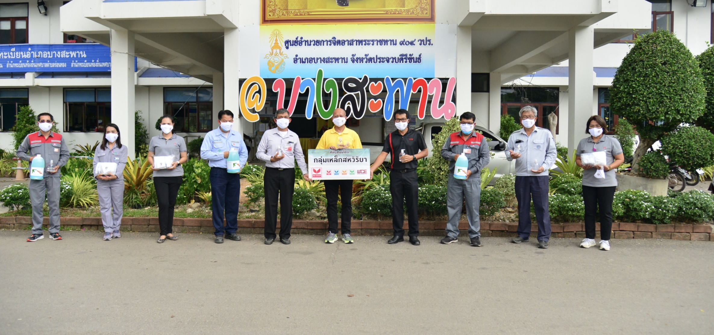 กลุ่มเหล็กสหวิริยา ร่วมฝ่าวิกฤติ COVID-19 สนับสนุนแอลกอฮอล์เจล-หน้ากากผ้า ให้อำเภอบางสะพาน