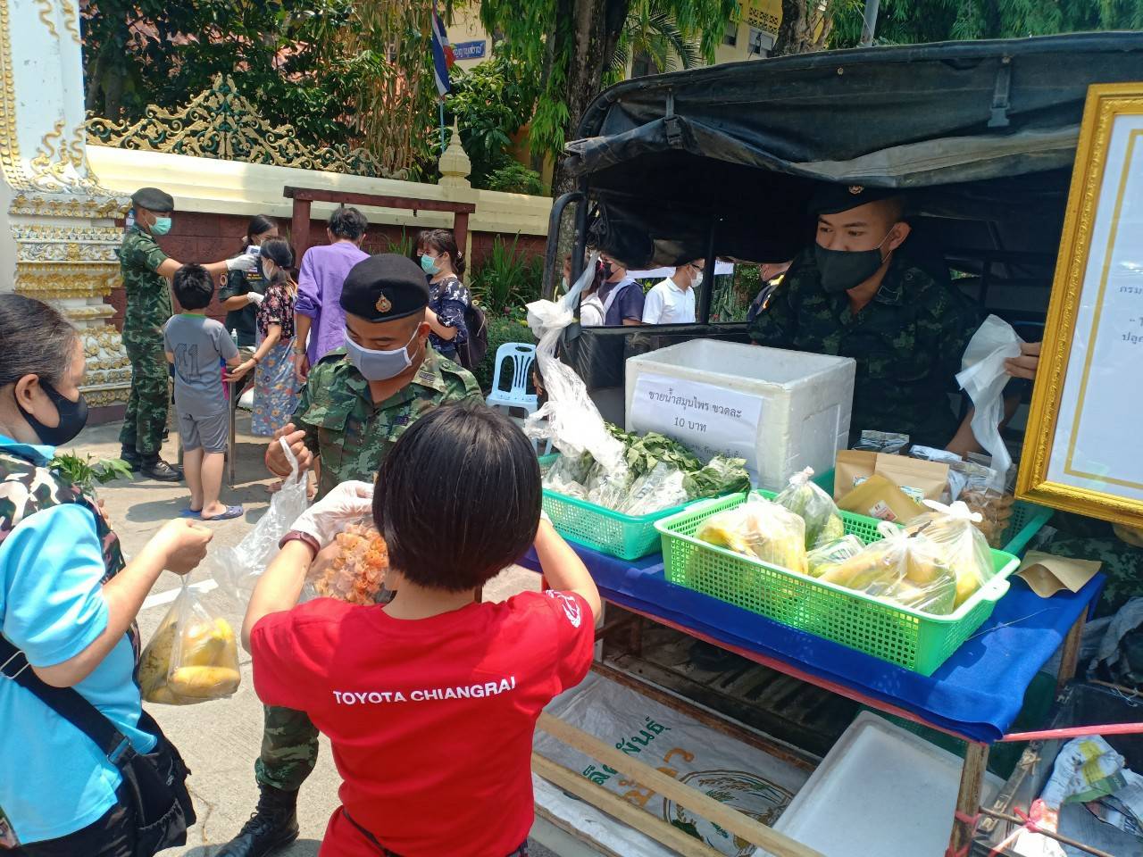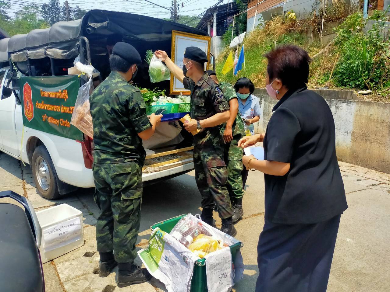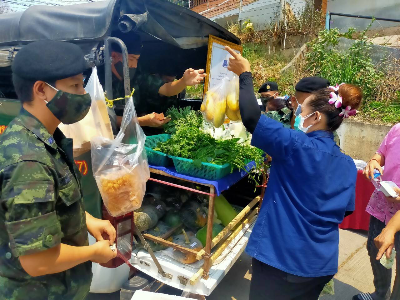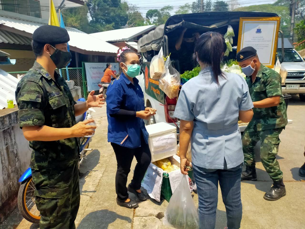 ให้กับประชาชนจังหวัดเชียงราย เพื่อช่วยเหลือผู้ได้รับผลกระทบจากสถานการณ์การแพร่ระบาดของโรคติดเชื้อไวรัส covid-19 บริเวณชุมชนต่างๆ ในเขตเทศบาลนครเชียงราย จว.เชียงราย และชุมชนรอบค่าย ให้ได้รับประทานผักสดที่ปลอดภัย ผลการจำหน่ายประชาชนให้ความสนใจและขอบคุณที่นำมาจำหน่ายถึงหน้าบ้านในราคาถูกเป็นการลดภาระค่าใช้จ่ายในครัวเรือนเป็นอย่างดี พร้อมทั้งแจกใบปลิวประชาสัมพันธ์โครงการฯให้ประชาชนได้เข้าถึงและติดต่อซื้อผักกับโครงการฯได้ตลอด โดยมี พ.อ.กิตติพล ไพรหิรัญ รอง ผบ.มทบ.37/ผบ.ศบภ.มทบ.37 ร่วมกิจกรรมการดำเนินการขายผักให้กับประชาชนในพื้นที่ โดยได้รับความสนใจจากประชาชนเป็นจำนวนมาก