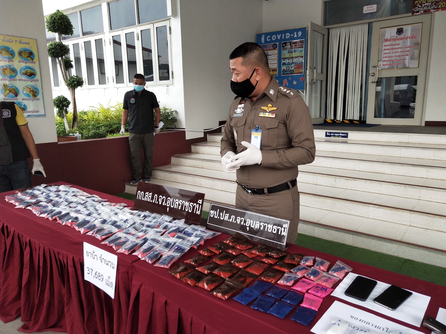 ตำราจ อุบลฯ แถลงข่าวจับกุมยาบ้า 37,689 เม็ดและไอซ์