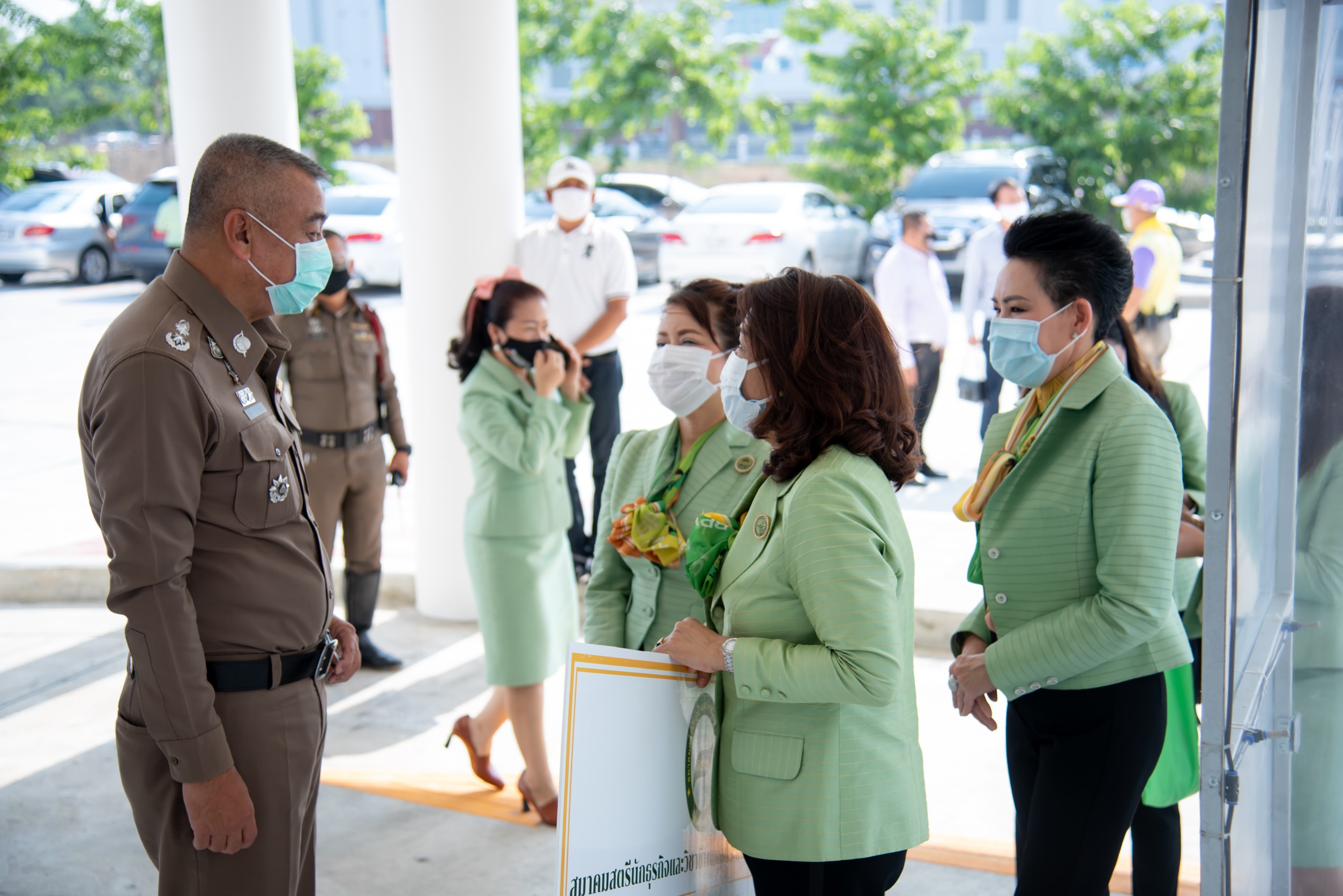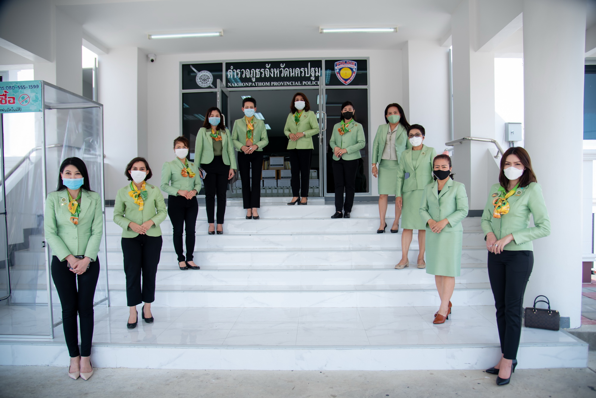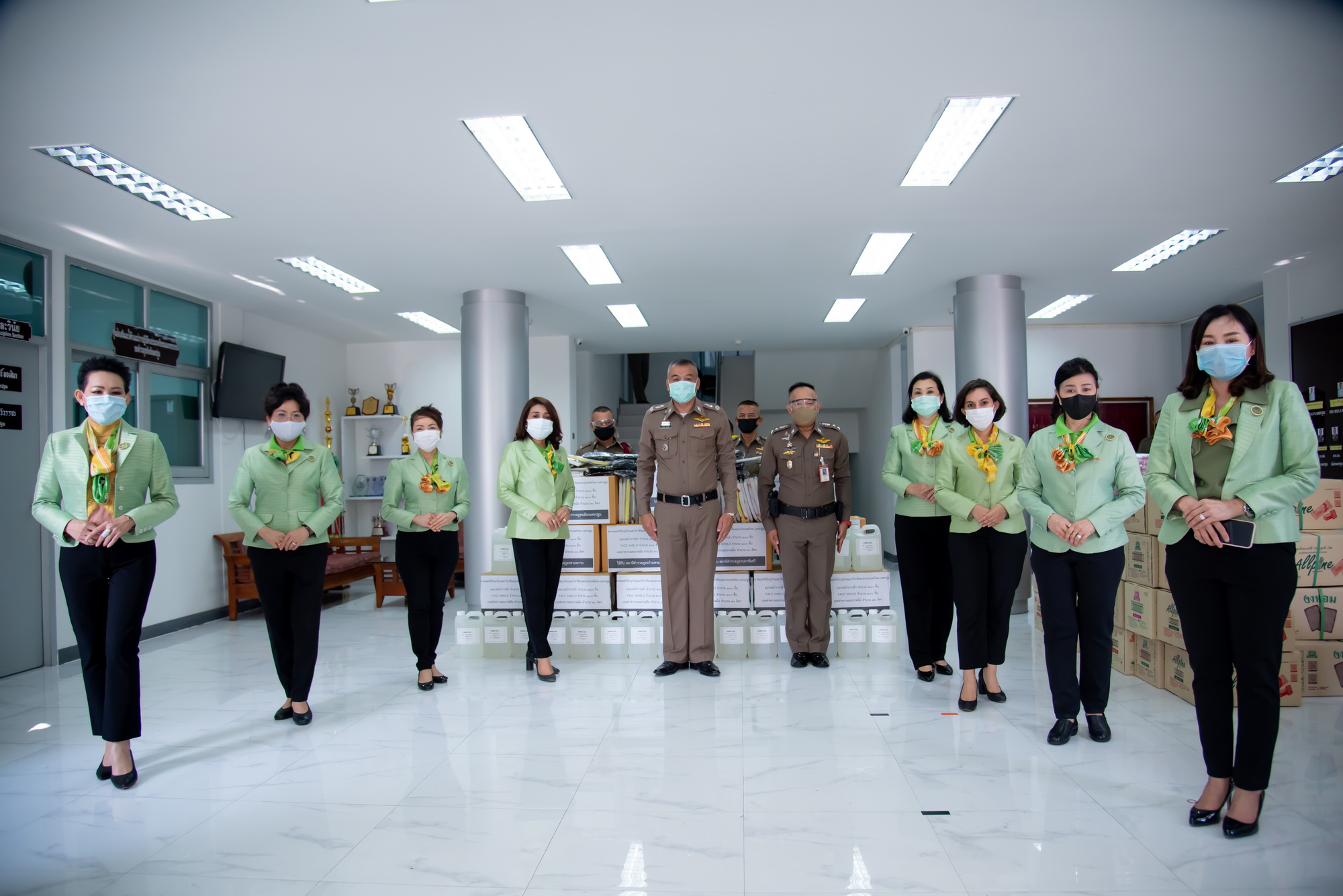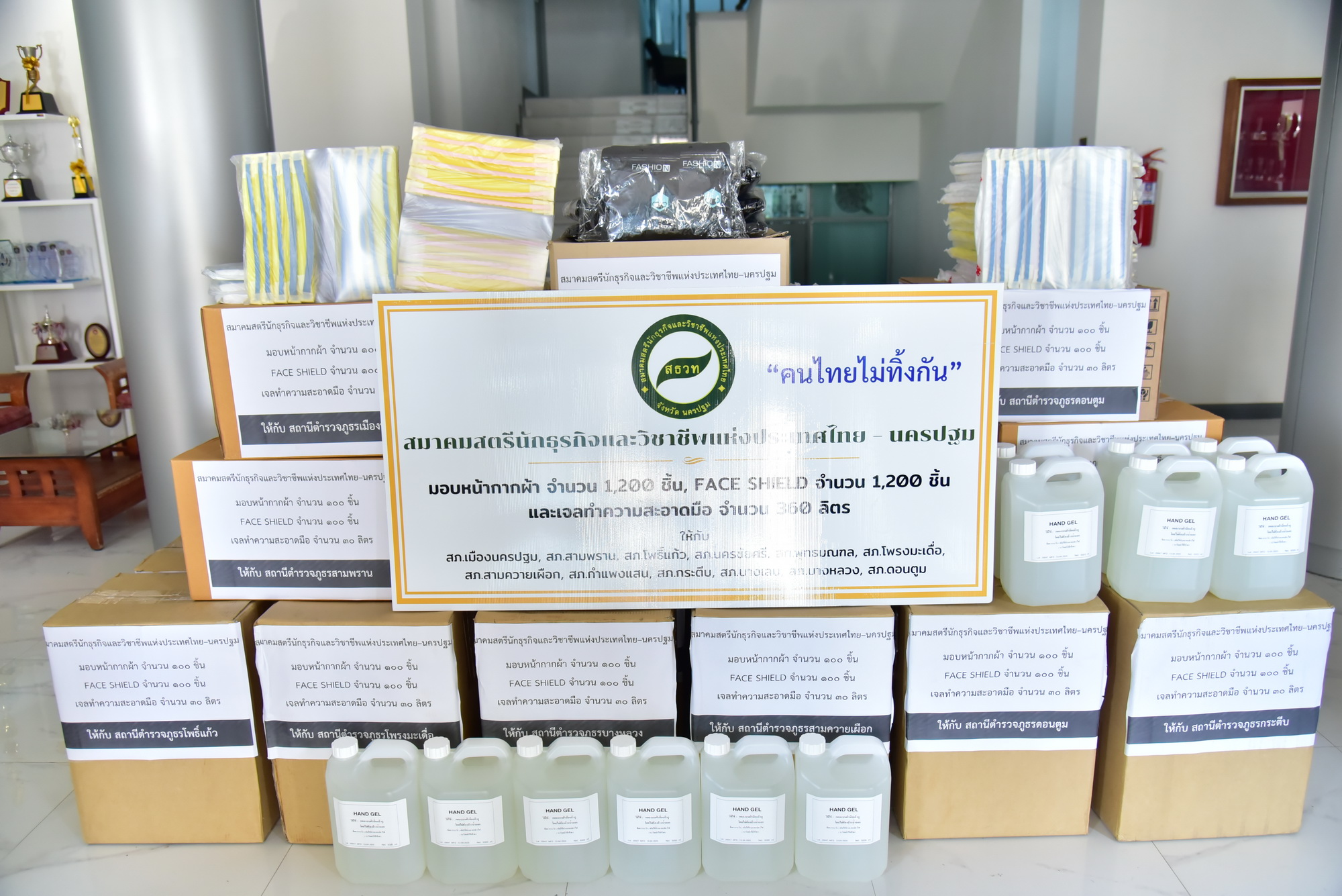 สมาคมสตรีนักธุรกิจและวิชาชีพแห่งประเทศไทย-นครปฐม มอบสิ่งของเจลแอลกฮอล์ หน้ากากผ้า เฟสชิลด์ให้กับข้าราชการตำรวจ เพื่อใช้ในการปฏิบัติหน้าที่การให้บริการประชาชนในช่วงสถานการณ์โควิด-19