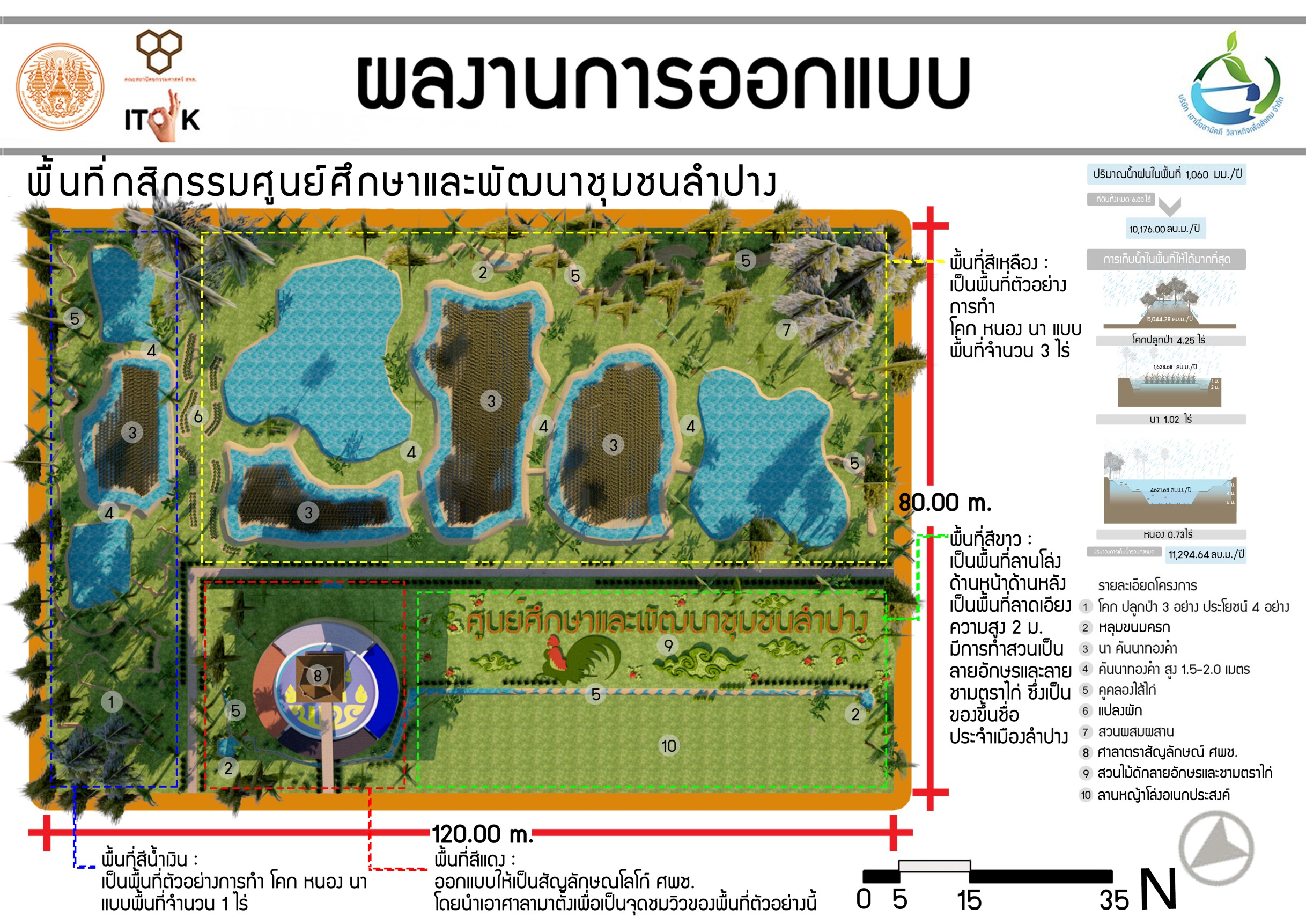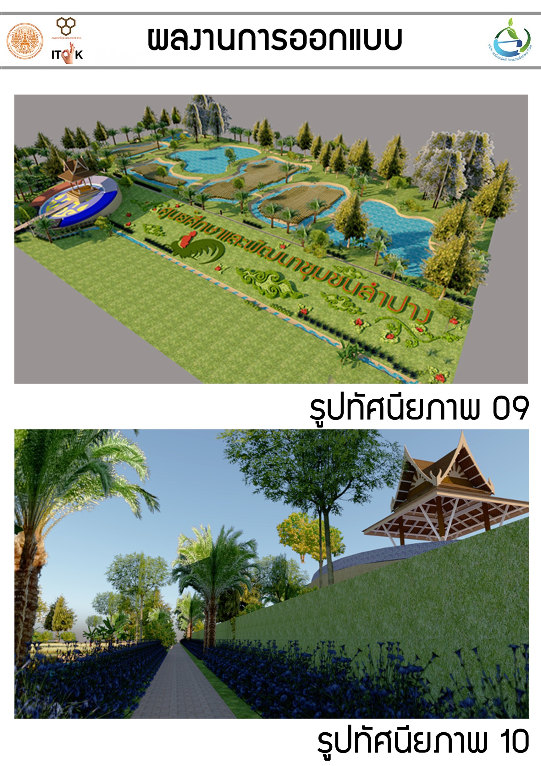 ด้าน ผศ.พิเชฐ โสวิทยสกุล ที่ปรึกษาอธิบดีกรมการพัฒนาชุมชน ผู้ซึ่งมีความเชี่ยวชาญด้านสถาปนิก และช่วยในการออกแบบพื้นที่ กล่าวว่า กรมการพัฒนาชุมชนจะลุกขึ้นมาเป็นที่พึ่งของคนทั้งประเทศจะต้องทำได้อย่างไร คำตอบคือต้องทำด้วยหลักปรัชญาของเศรษฐกิจพอเพียง คือต้องร่วมมือร่วมใจกันขับเคลื่อนหลักปรัชญาของเศรษฐกิจพอเพียงสู่ความยั่งยืนโลก ซึ่งกรมฯ มีพันธกิจหลัก คือการพัฒนาคน ซึ่งได้มีการดำเนินการร่วมกับกรมการพัฒนาชุมชนจัดฝึกอบรมเชิงปฏิบัติการ หลักสูตรการพัฒนากสิกรรมสู่ระบบเศรษฐกิจพอเพียงและการอบรมการออกแบบเชิงภูมิสังคมเพื่อการพึ่งตนเองและรองรับภัยพิบัติ โดยใช้ชุดความรู้ทฤษฎีใหม่ ผสมกับนวัตกรรมเทคโนโลยีในปัจจุบัน ทำให้ได้ผู้นำและเครือข่ายที่พร้อมจะนำผลสำเร็จไปขยายต่อ สร้างพลังในการขับเคลื่อน แบบเชื่อมโยงกัน จนสามารถพึ่งพาตนเองได้ ยึดหลักเกษตรทฤษฎีใหม่ สร้างความมั่นคงในเรื่องอาหาร น้ำ และพลังงาน อาทิ 1 ไร่ ช่วยลดรายจ่าย, 3 ไร่ พึ่งพาตนเองได้ และ 5 ไร่ ช่วยสร้างรายได้ เป็นต้น โดยเป้าหมาย คือ มีศูนย์เรียนรู้ต้นแบบบริหารจัดการน้ำ ช่วยแก้ปัญหาน้ำท่วม ภัยแล้ง และจะทำให้สามารถปลูกป่าและเก็บน้ำได้มาก