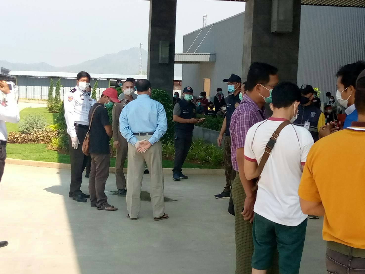 เมื่อเวลา 14.00 น. วันที่ 17 เม.ย.63 ที่อาคารหน้าประตูทางเข้า เอ็มไพร์ คาสิโน ใกล้ ชายแดนบ้านทิคี่ จังหวัดทวาย ประเทศเมียนมา ชายแดนตรงข้าม ด่านผ่านแดนถาวรบ้านพุน้ำร้อน หมู่ 9 ตำบลบ้านเก่า อำเภอเมือง จังหวัดกาญจนบุรี ชุดประสานงานร่วมไทย-พม่า ที่เกี่ยวข้องกับการเปิดด่านผ่านแดนบ้านพุน้ำร้อน เพื่อรับตัวคนไทย 389 กว่าคนที่ยื่นหนังสือผ่านสถานฑูตไทยประจำเมียนมา เพื่อขอกลับเข้าราชอาณาจักรไทย ผ่านช่องทางผ่านแดนบ้านพุน้ำร้อน โดยเบื้องต้นพบว่ามีเจ้าหน้าที่ไทยและเมียนมา ที่เกี่ยวข้องทั้ง คณะแพทย์พยาบาล เจ้าหน้าที่ปกครอง ตม. และกลุ่มผู้ประสานงานภาคเอกชน รวมถึงผู้ประกอบการโรงแรมที่จะใช้เป็นสถานที่กักตัวผู้กลับเข้าประเทศ ร่วมดำเนินการตามขั้นตอนการรับผู้ผ่านแดน โดยเบื้องต้นทราบว่าจะมีการให้บริการผู้ต้องการข้ามแดนวันละ 100 คน โดยทุกคนต้องผ่านการตรวจวัดไข้ และขั้นการเตรียมเอกสารผ่านพิธีการตรวจคนเข้าเมือง