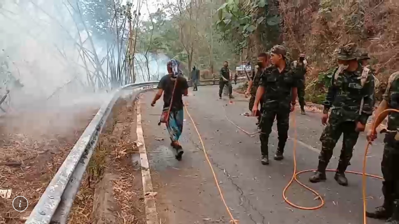 นาย ชาญพินิจ พันธ์ยี่ปา อายุ 42 บ้านเลขที่ 235ผู้ใหญ่บ้าน บ้านฟ้าสวย หมู่ 10 บ้านนาเลาตำบลเชียงดาว อำเภอเชียงดาว จังหวัดเชียงใหม่ นำชาวบ้านจิตอาสาในชุมชนบ้านฟ้าสวย ออกทำการดับไฟป่าและสร้างแนวกันไฟป่า แทบทุกวันที่มีไฟไหม้ป่า 24 ชั่วโมง ในวันนี้ดูว่าจะไม่มีการเผาป่า แต่พอเวลาช่วงสายๆเข้ามีไฟป่าเผาไหม้ลุกลามอย่างรวดเร็วจนถึงเวลา 16.00นทางขึ้นดอยหลวงเชียงดาวพ่อหลวง อาซี่อ พันธ์ยี่ป่า คนสู้ไฟพร้อมเจ้าหน้าที่ไฟป่าเชียงดาว ทหารหน่วยเฉพาะกิจกรมทหาร ที่4 กองกำลังผาเมือง และหน่วยอนุรักษ์พันธ์สัตว์ รถน้ำ อาสาสมัครรักษาดินแดนอำเภอชียงดาวพร้อมรถรรทุกน้ำต่างช่วยกันวางแนวกันไฟที่ลุกลามมาจากลำห้วยขึันมาใก้ลถนนใหญ่บริเวณศาสเจ้าพ่อหลวงคำแดงหลายไร่ ทั้งอากาศที่ร้อนผ้าวและกลุ่มควันที่พวยพุ่งแสบหูแสบตา ยอมรับว่าพ่อหลวงใหม่มันห้าวจริงๆ ทางนาย ชัชวาลย์ พุทธโธ นาย อำเภอ เชียงดาว