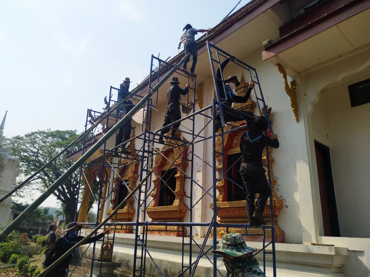 โดยนำเอาทหารพรานพร้อมเครื่องมือเช้าซ่อมบ้านประชาชน จำนวน5 หลัง และอาคารเอนกประสงค์จำนวน 1 หลัง และได้เข้าทำการซ่อมหลังคาโบสถ และวิหาร ของวัดชัยมงคลบ้านฮ่างต่ำ โดยได้เข้าช่วยเหลือตั้งแต่วันที่ 15,17 ,18,19 เมษายน 2563 เพื่อให้ชาวบ้านได้อยู่บ้านที่ปลอดภัยและมีความสุข โดยทางองค์การบริหารส่วนตำบลแม่นาวางได้ให้การช่วยเหลือกระเบื้องหลังคาบ้านที่เสียหาย ซึ่งร้อยเอก ประกาศิต ปลอบโยน ผู้บังคับกองร้อยทหารพราน 3207 ฐานบาหลา ได้นำทหารเข้าช่วยในส่วนที่ชาวบ้าน วัด โดยทางพระครูชัยมังคลารักษ์ เจ้าคณะตำบลแม่นาวาง อำเภอแม่อาย จังหวัดเชียงใหม่เจ้าอาวาสวัดชัยมงคล มีความต้องการและร้องขอความช่วยเหลือมาจึงได้เข้าช่วยเหลือจนแล้วเสร็จ อย่างเป็นระเบียบเรียบร้อยเหมือช่างจริงๆทำการซ่อมแซม โดยทหารพรานในส่วนที่มาช่วยจะเป็นช่างที่เคยทำงานก่อสร้างบ้านเรือนมาก่อน