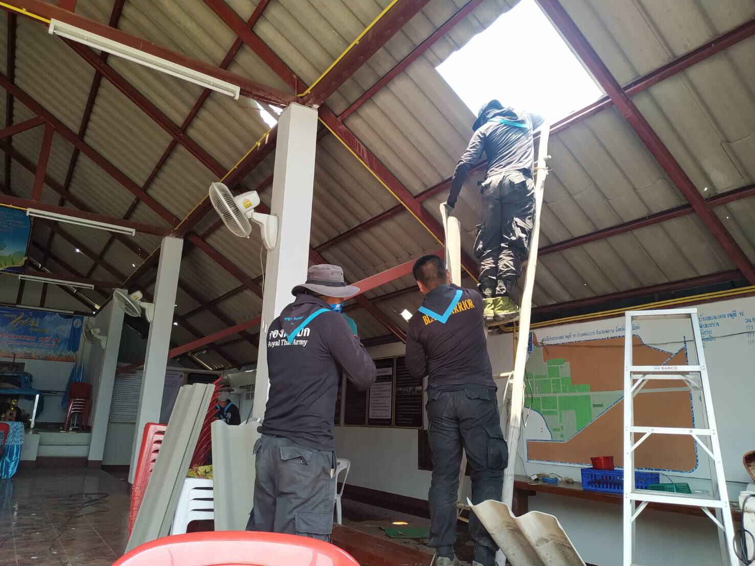 เชียงใหม่ ทหารพรานเข้าซ่อมบ้านอย่างด่วนเหยื่อพายุฤดูร้อนแม่อาย