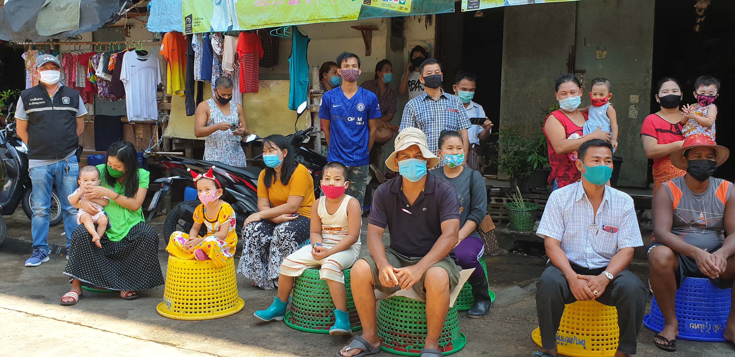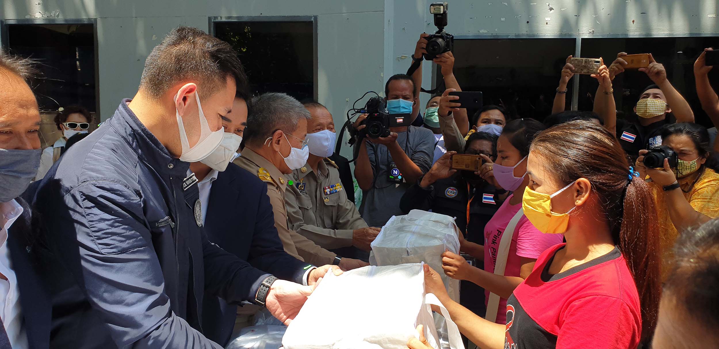 ต่อมาเวลาประมาณ 11.00 น. ดร.ดวงฤทธิ์ เบ็ญจาธิกุล ชัยรุ่งเรือง ผู้ช่วยรัฐมนตรีประจำกระทรวงแรงงานและคณะ ได้เดินทางมาตรวจเยี่ยมและพบปะกับพี่น้องแรงงานข้ามชาติที่มูลนิธิเครือข่ายส่งเสริมคุณภาพชีวิตแรงงาน (LPN) ต.บางหญ้าแพรก อ.เมืองสมุทรสาคร มีนายสมพงศ์ สระแก้ว ผู้อำนวยการมูลนิธิเครือข่ายส่งเสริมคุณภาพชีวิตแรงงาน นำตัวแทนแรงงานต่างด้าวที่ได้รับผลกระทบจากโควิด -19 ให้การต้อนรับ โดยเมื่อเสร็จสิ้นจากการรับฟังปัญหาที่เกิดกับแรงงานข้ามชาติในช่วงโควิด อันจะนำไปสู่การหาแนวทางแก้ไขในระดับรัฐบาลแล้ว ก็ได้มีการมอบถุงยังชีพ พร้อมด้วยน้ำดื่ม หน้ากากผ้า เจลแอลกฮอล์ และแผ่นพับให้ความรู้แก่ตัวแทนแรงงานต่างด้าวที่ได้รับผลกระทบจากสถานการณ์โควิด – 19